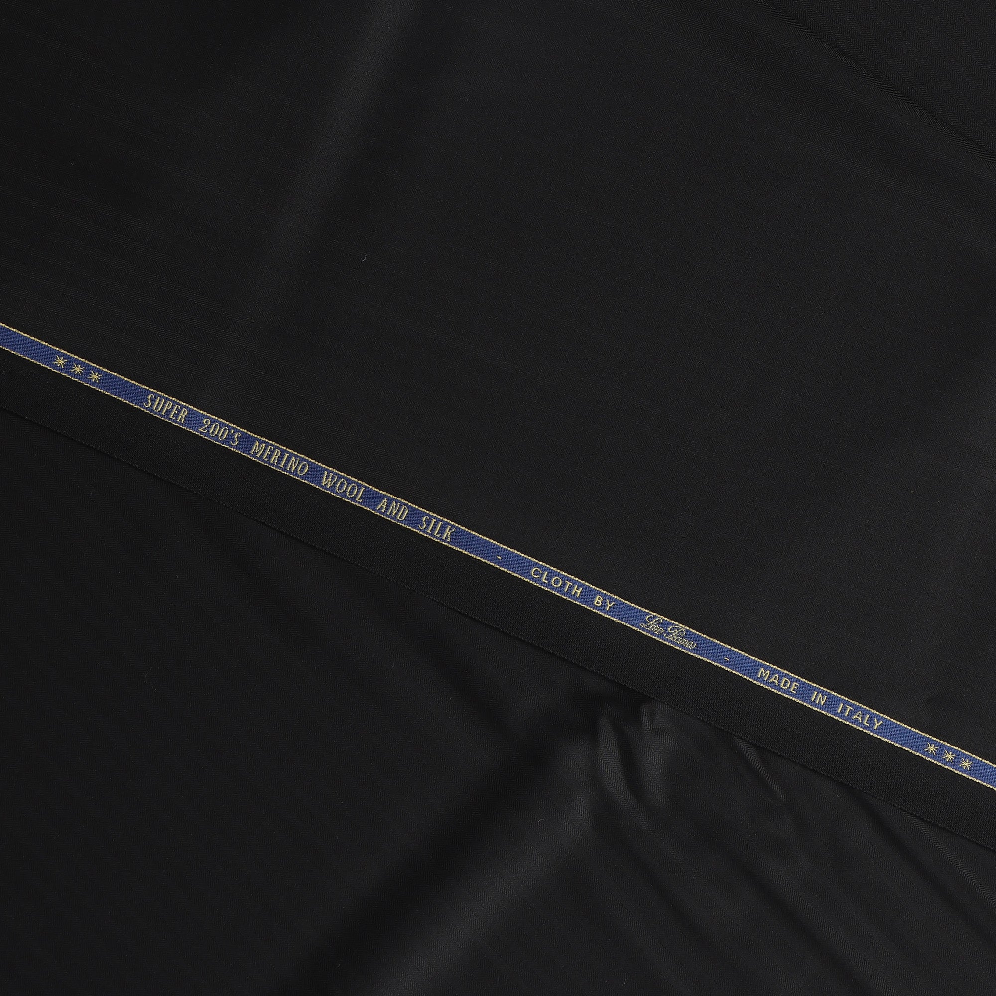 Jet Black Loro Piana Super 200’s Merino Wool & Silk Italian Suiting Fabric, Width 150 Cms, Length 3.75 Mtrs, Made in Italy-D26044