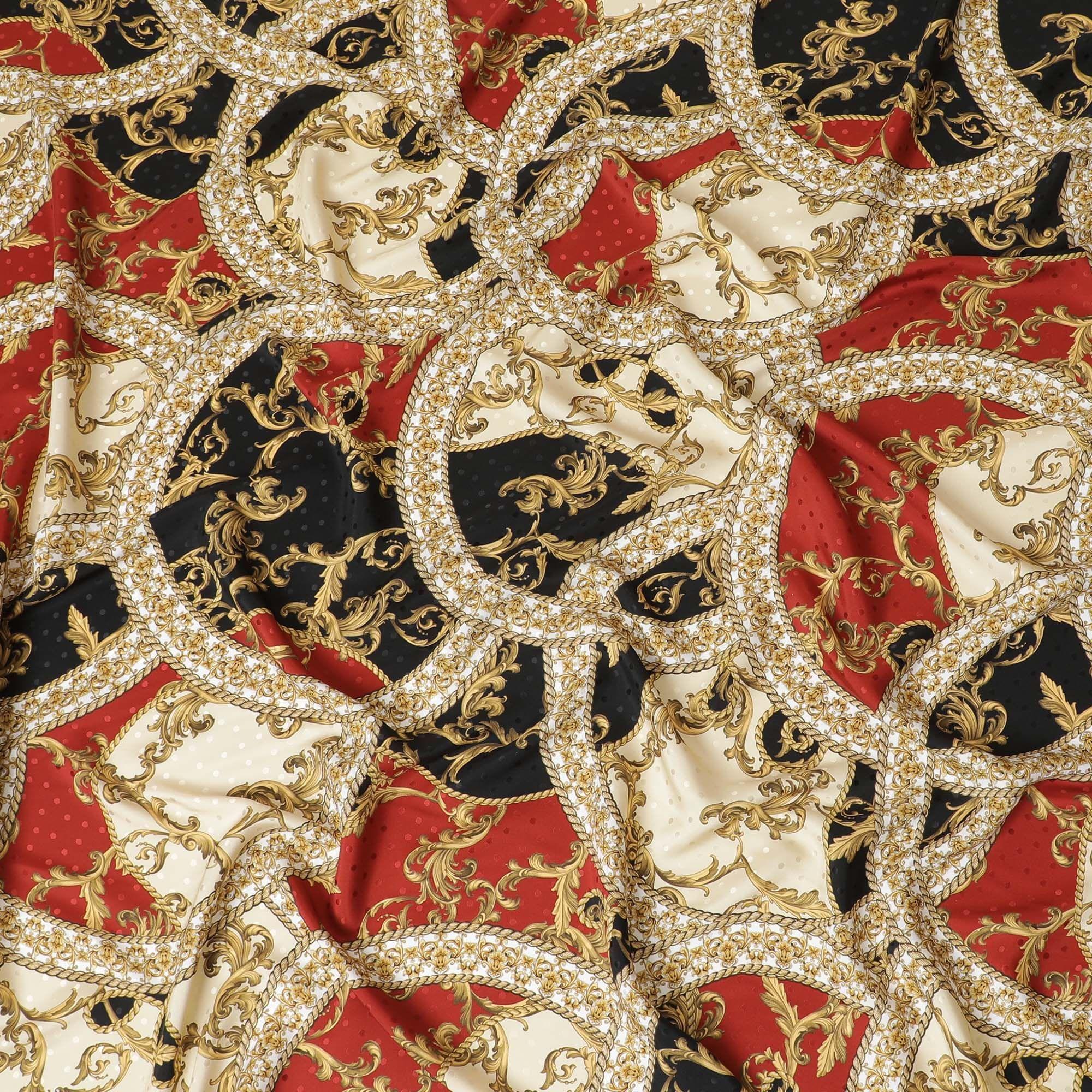 • ساتان من الحرير الخالص الإيطالي باللون البيج اللاتيه مع جاكار منقط بنفس اللون مع طباعة متعددة الألوان بتصميم الأزهار-D9726