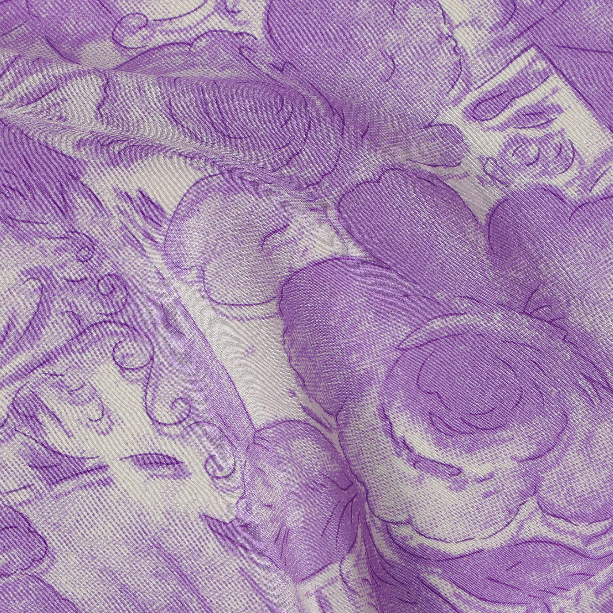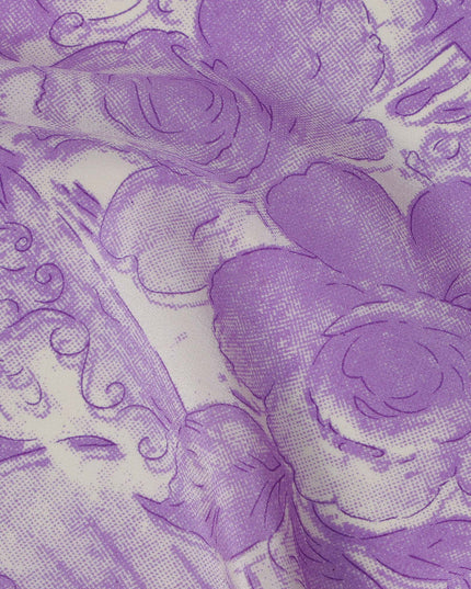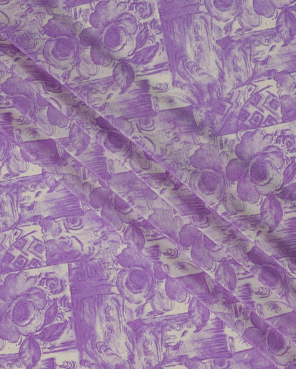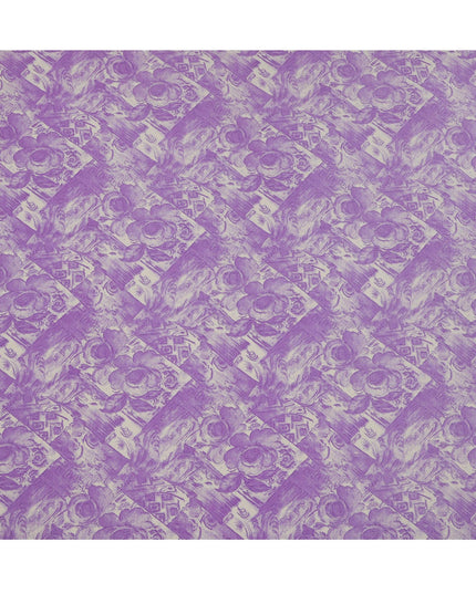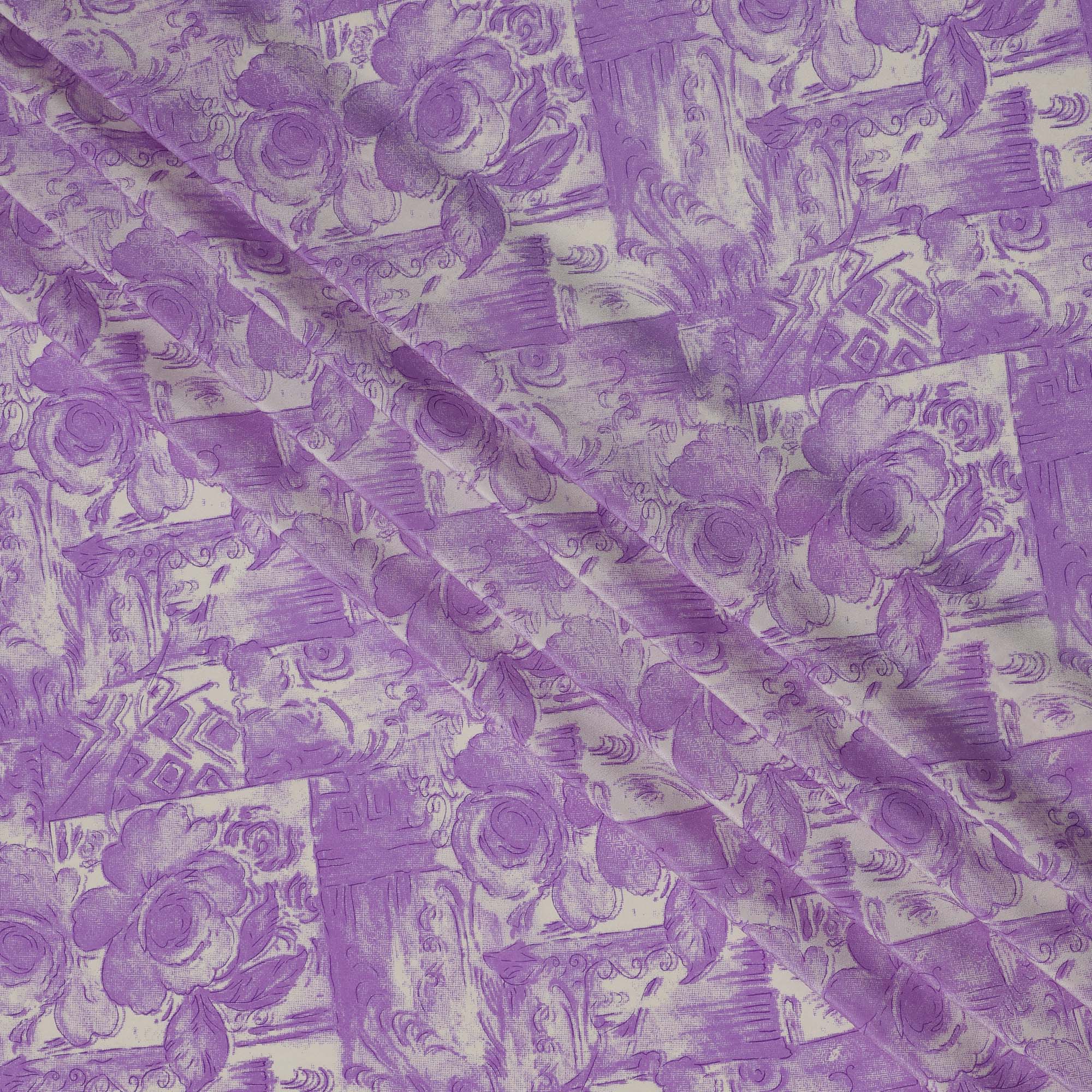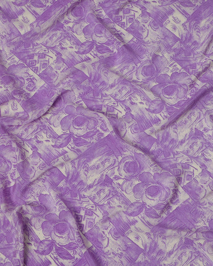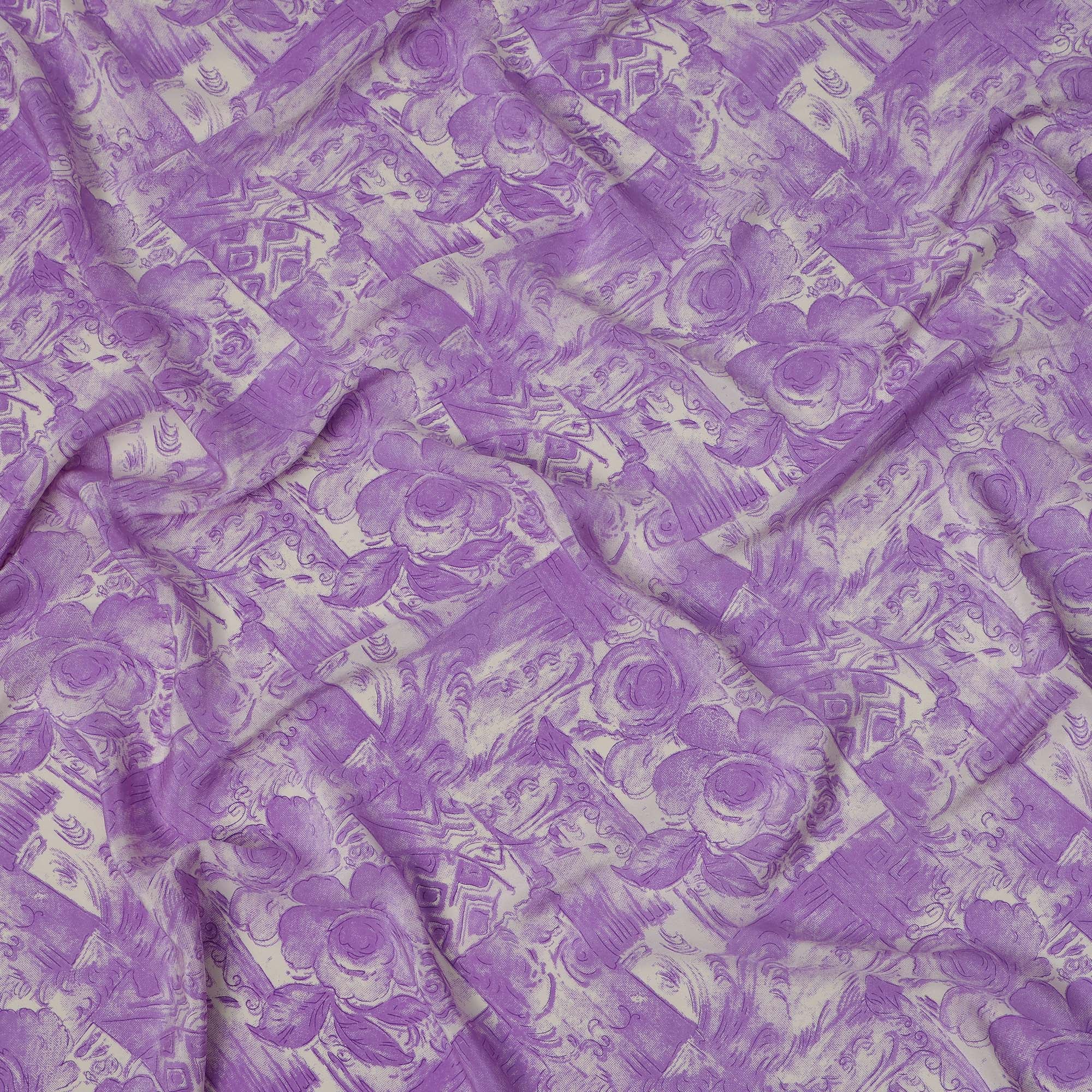 قماش كريب حريري خالص بطبعة زهور وهندسية تجريدية بلون الخزامى، عرض 110 سم، صنع في الهند - D23191