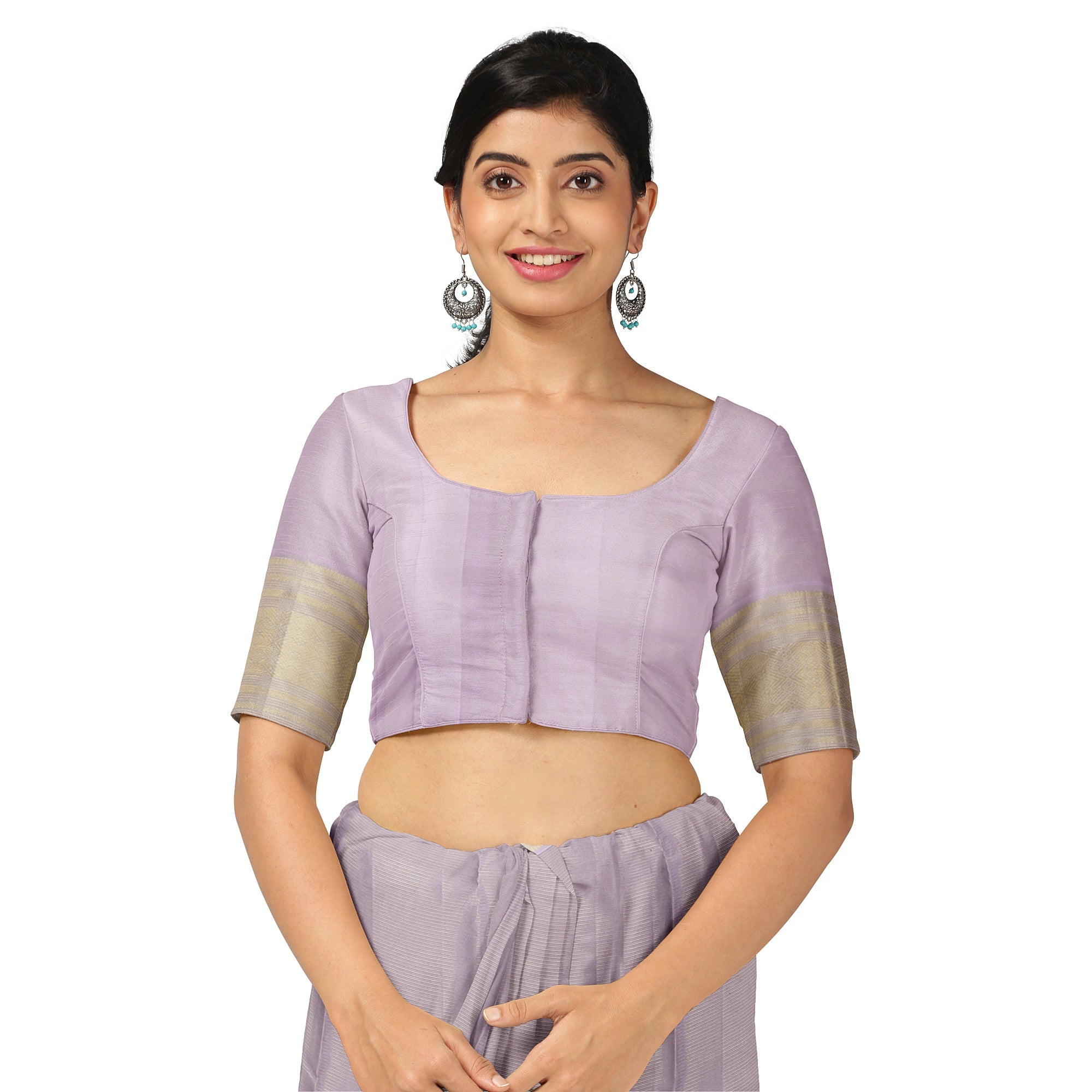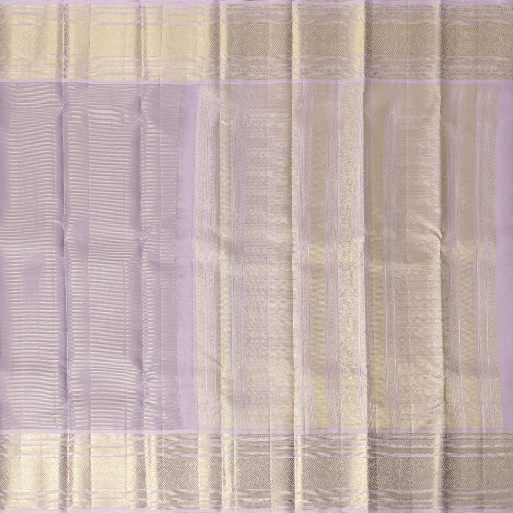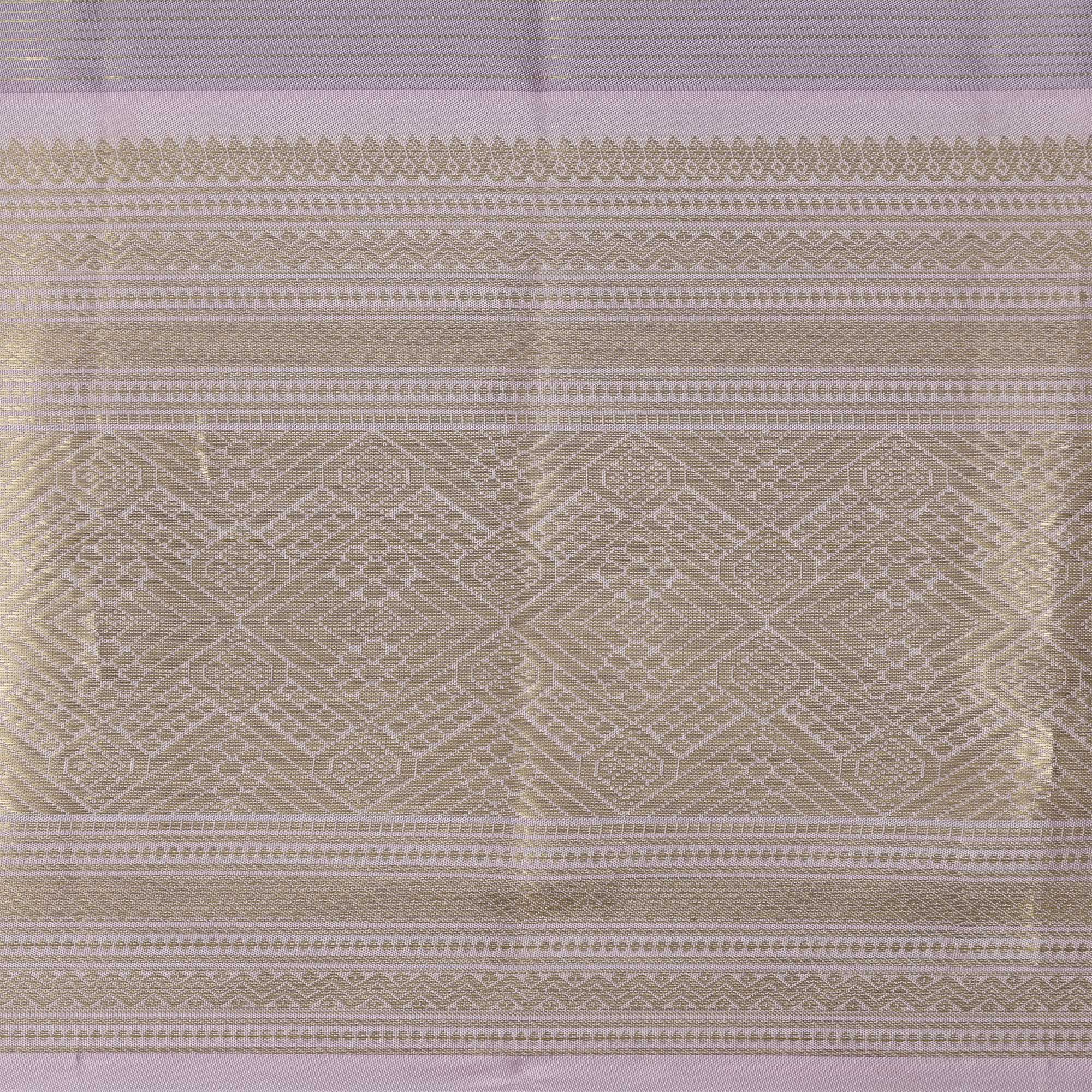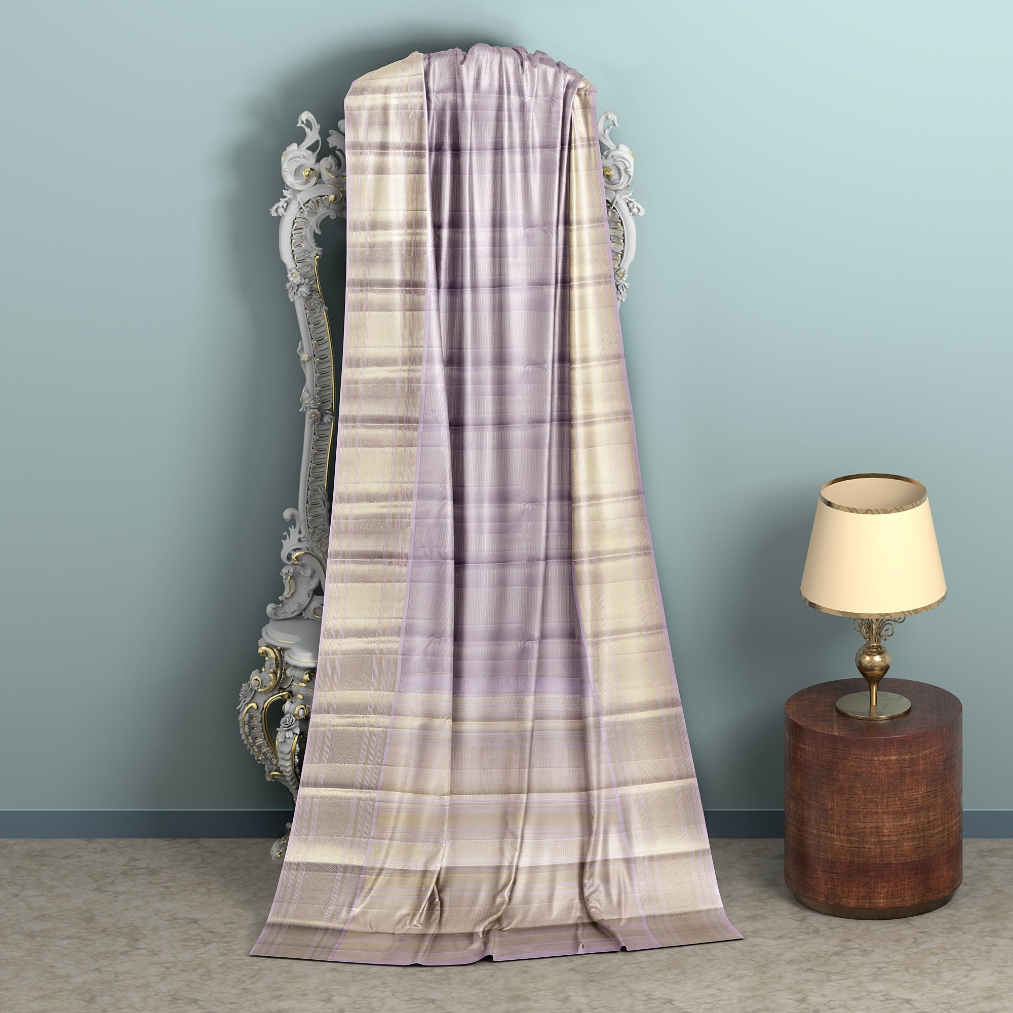 ساري كانجيفارام من الحرير الخالص، منقوش باللونين الخزامي والبيج، مع حافة زاري ذهبية رقيقة، بطول 5.5 متر مع بلوزة، منسوج يدويًا، الهند - D22750