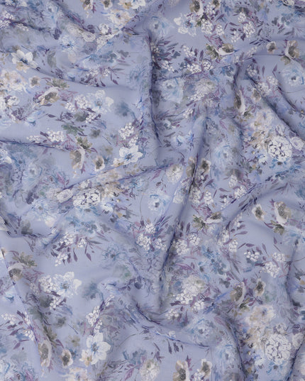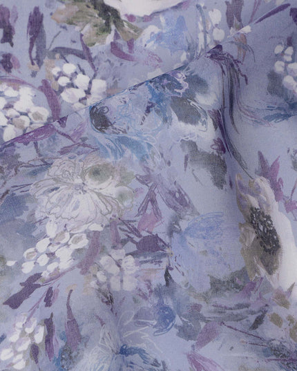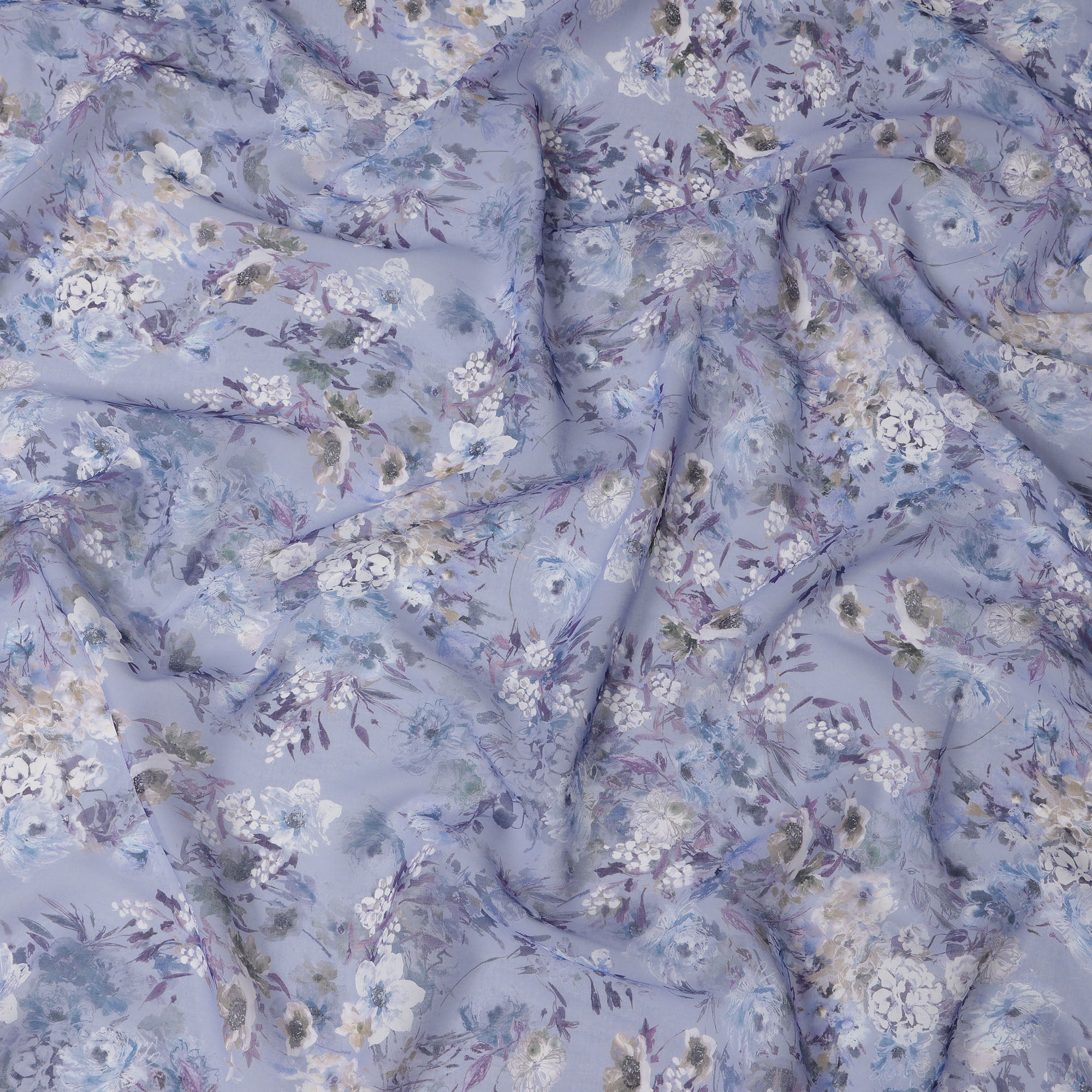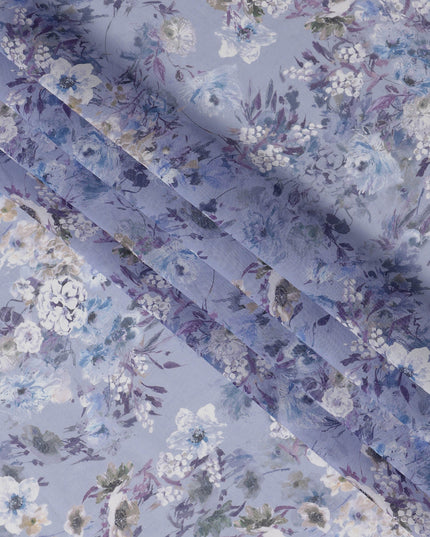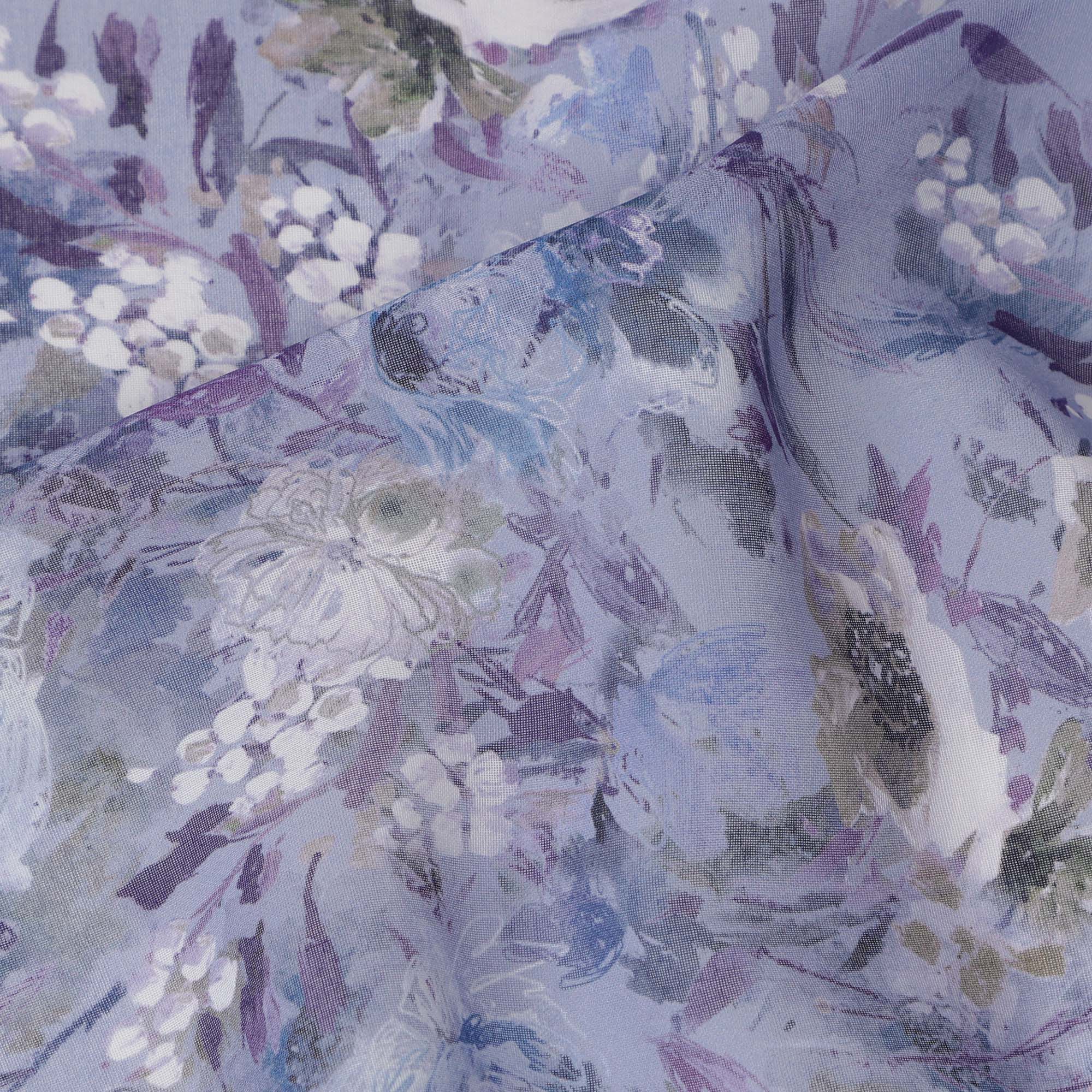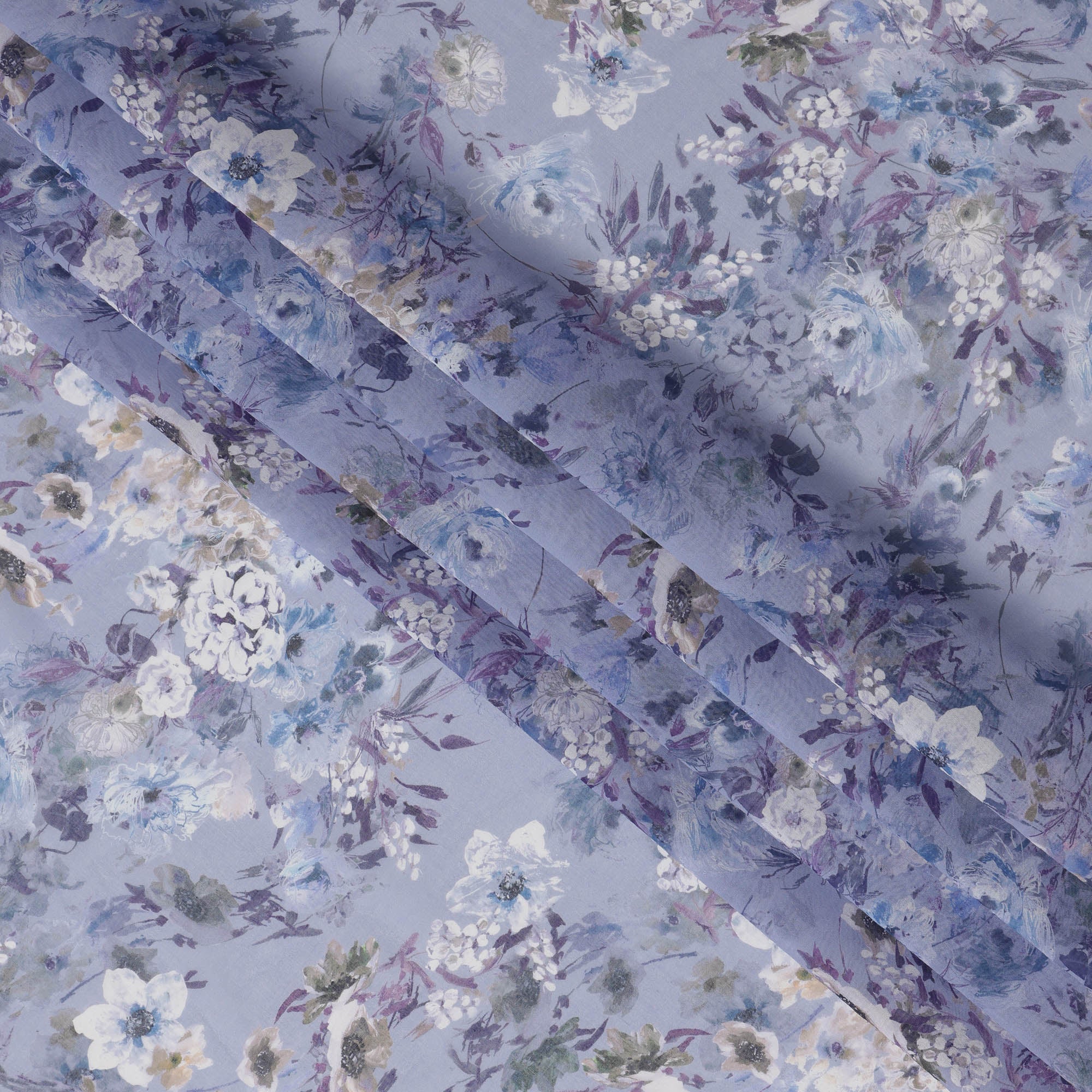 قماش قطني فوال بطبعة زهور تجريدية بلون أزرق لافندر، عرض 140 سم، الهند - D23050