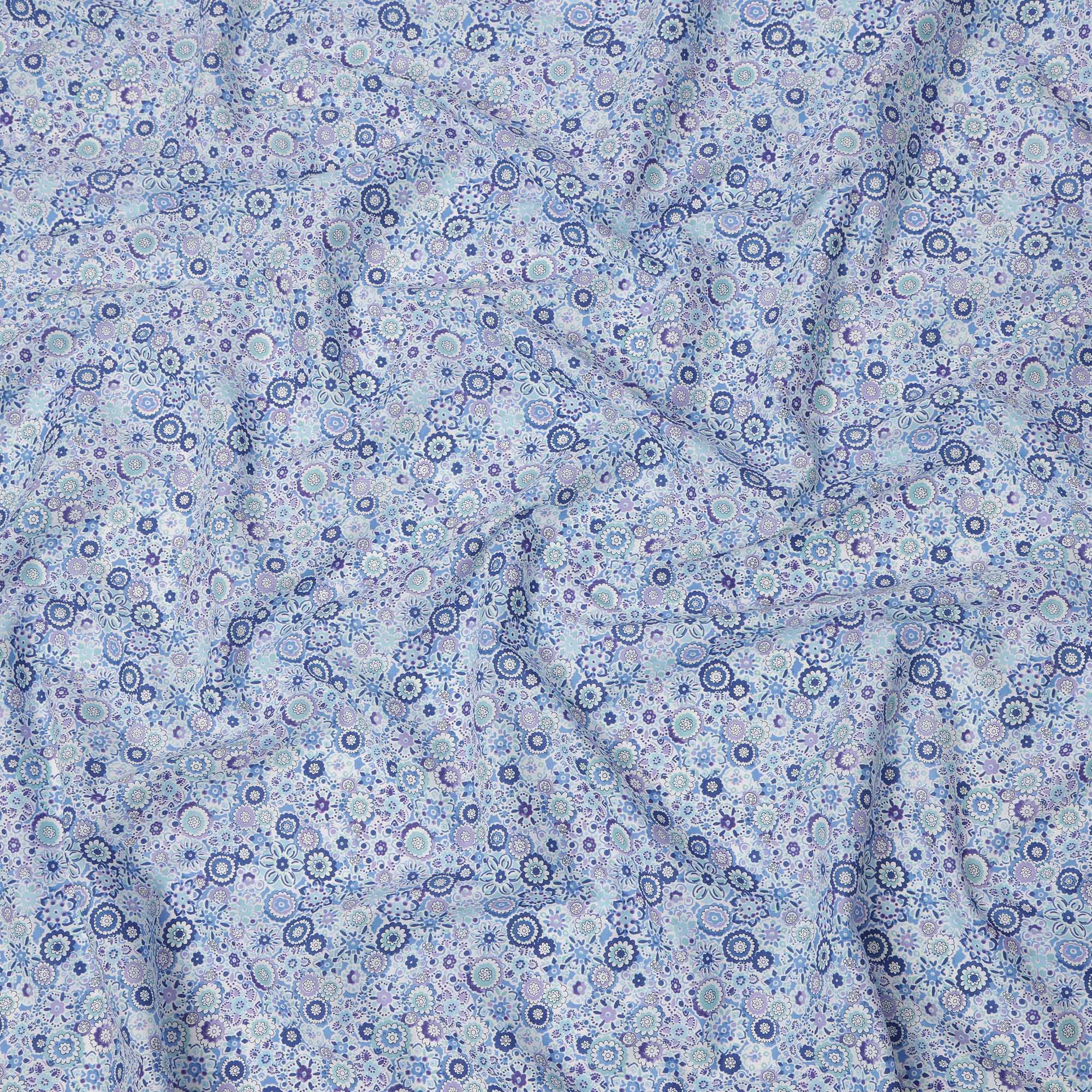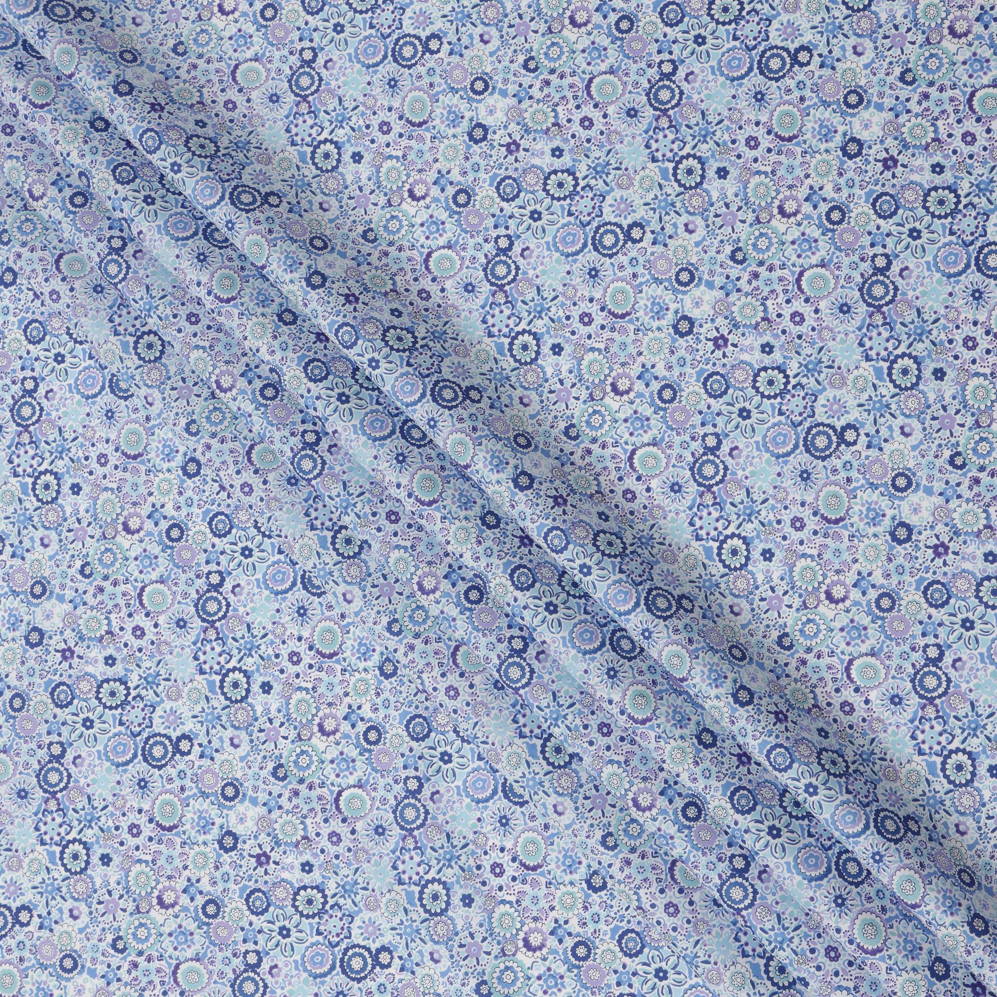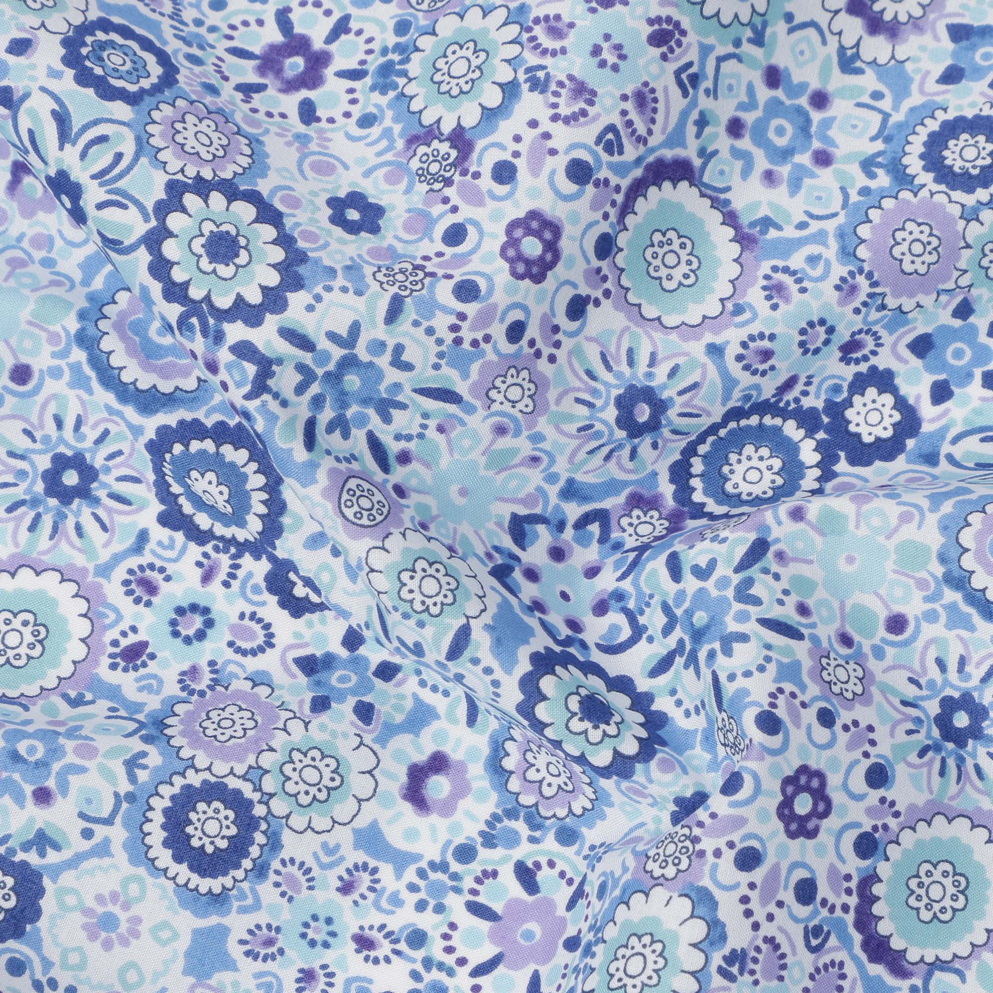 قماش قطني أزرق لافندر مع طبعة زهور متعددة الألوان، عرض 110 سم، صنع في اليابان - D24171
