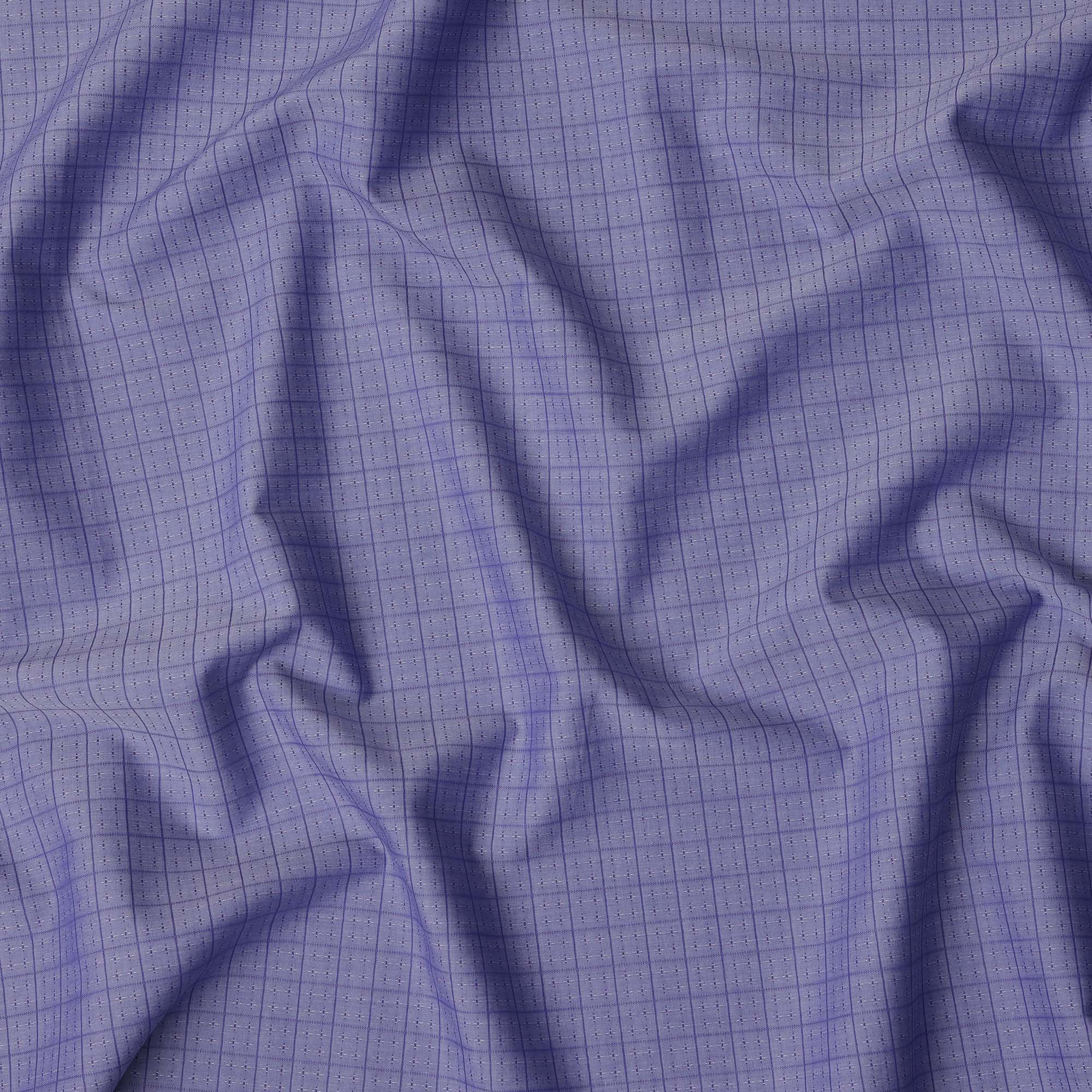 قماش قميص من مزيج القطن بتصميم مربعات شبكية رفيعة باللون الأزرق اللافندر، عرض 140 سم، صنع في اليابان - D22786