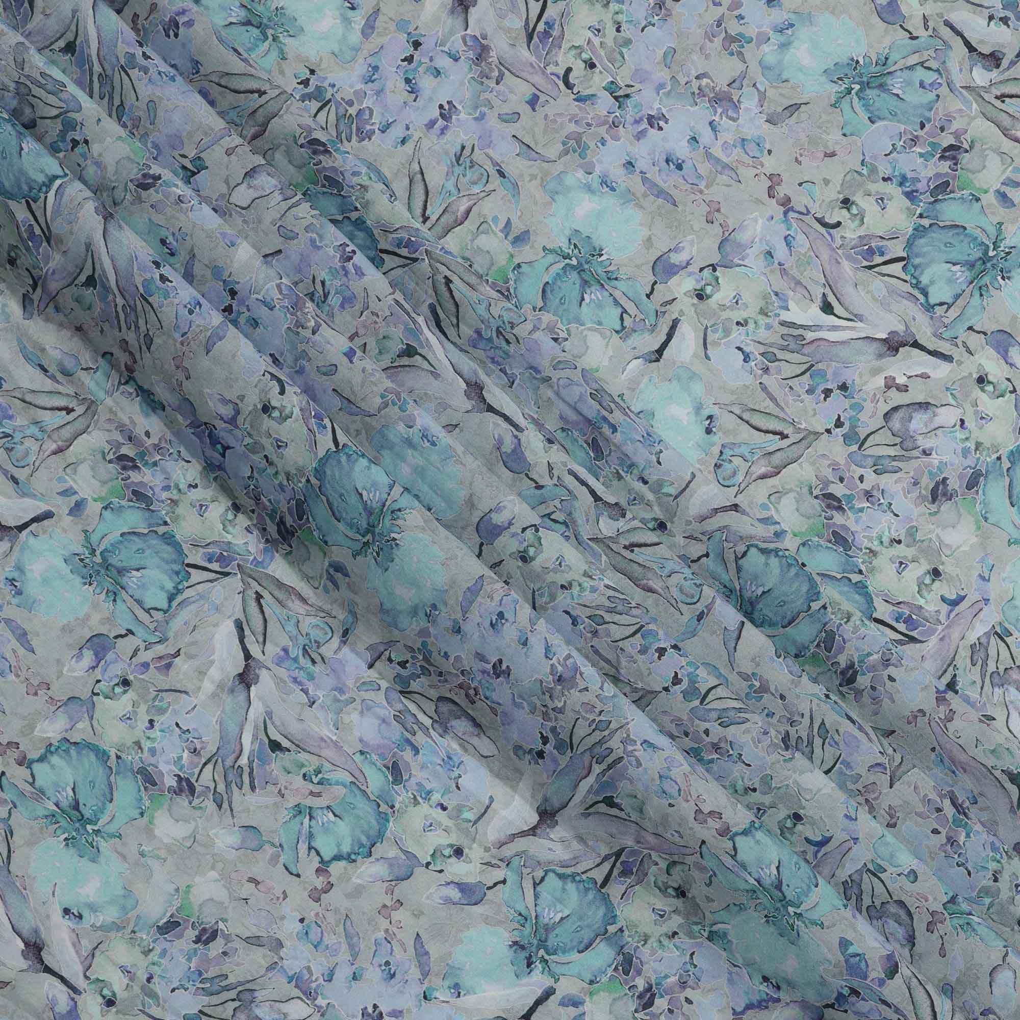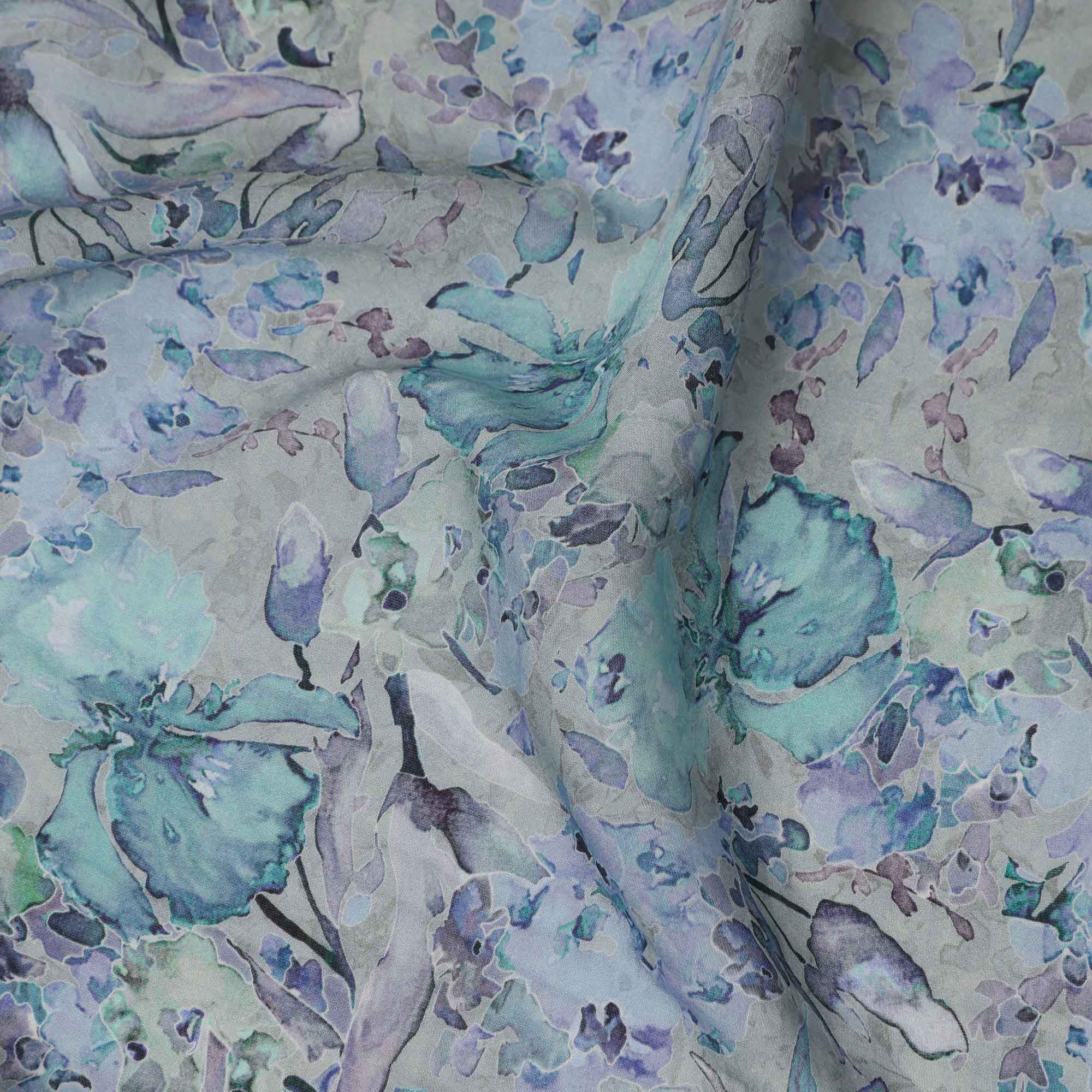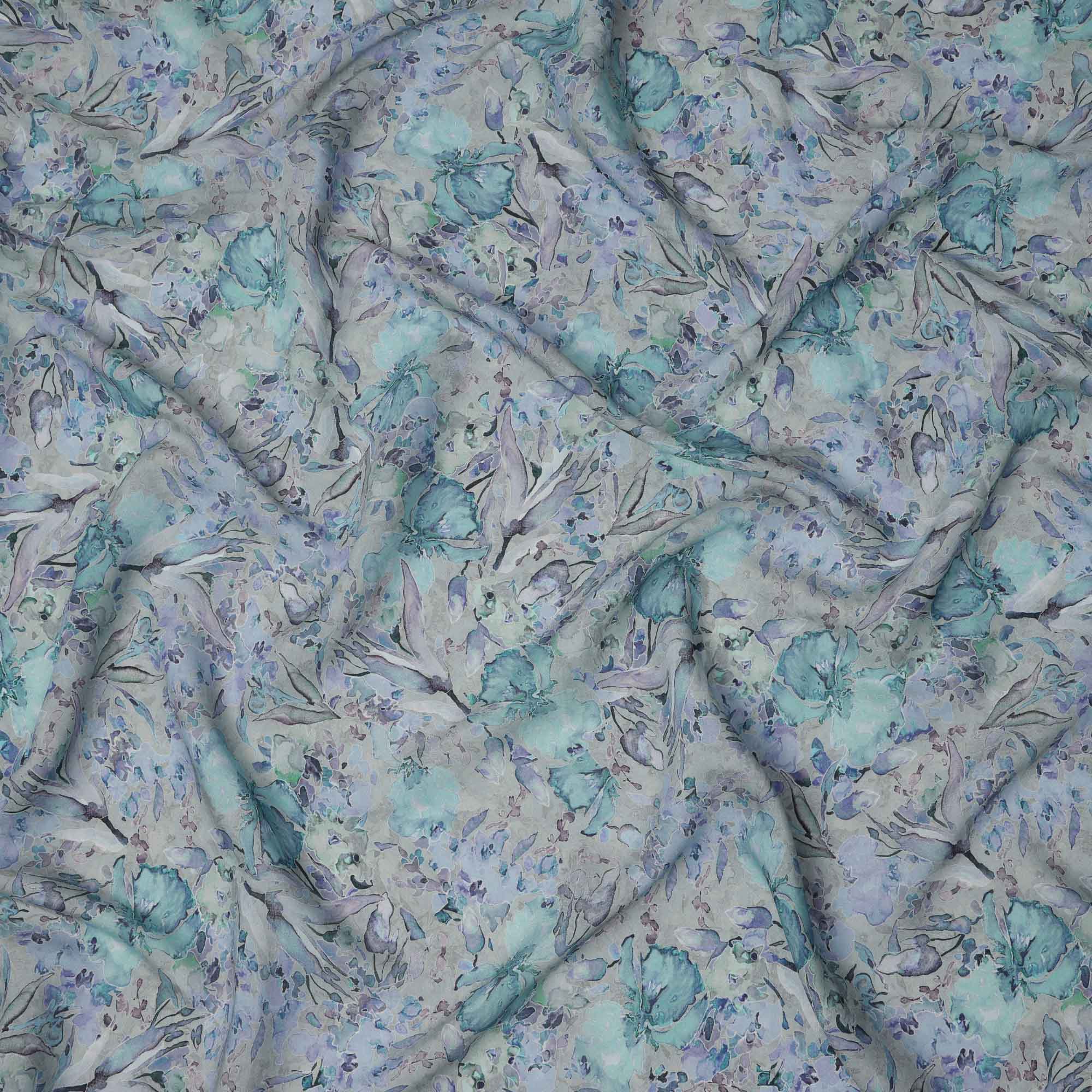 قماش كريب فيسكوز بطبعة رقمية بنقشة زهور زرقاء لافندر، 110 سم، الهند - D23468