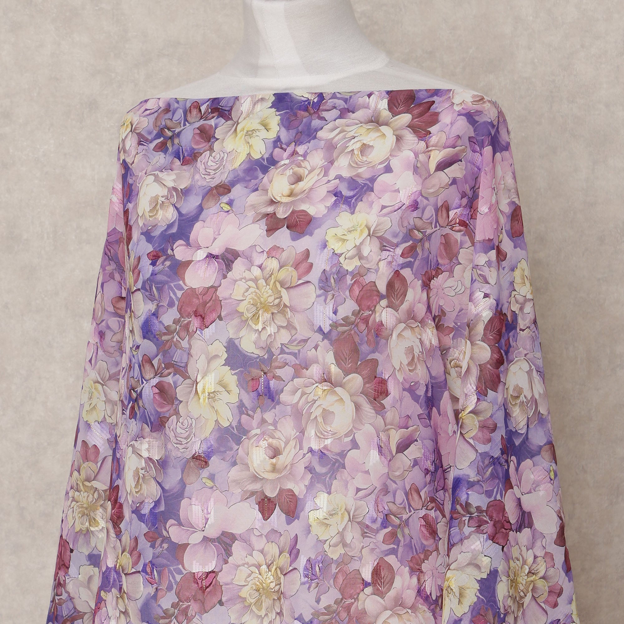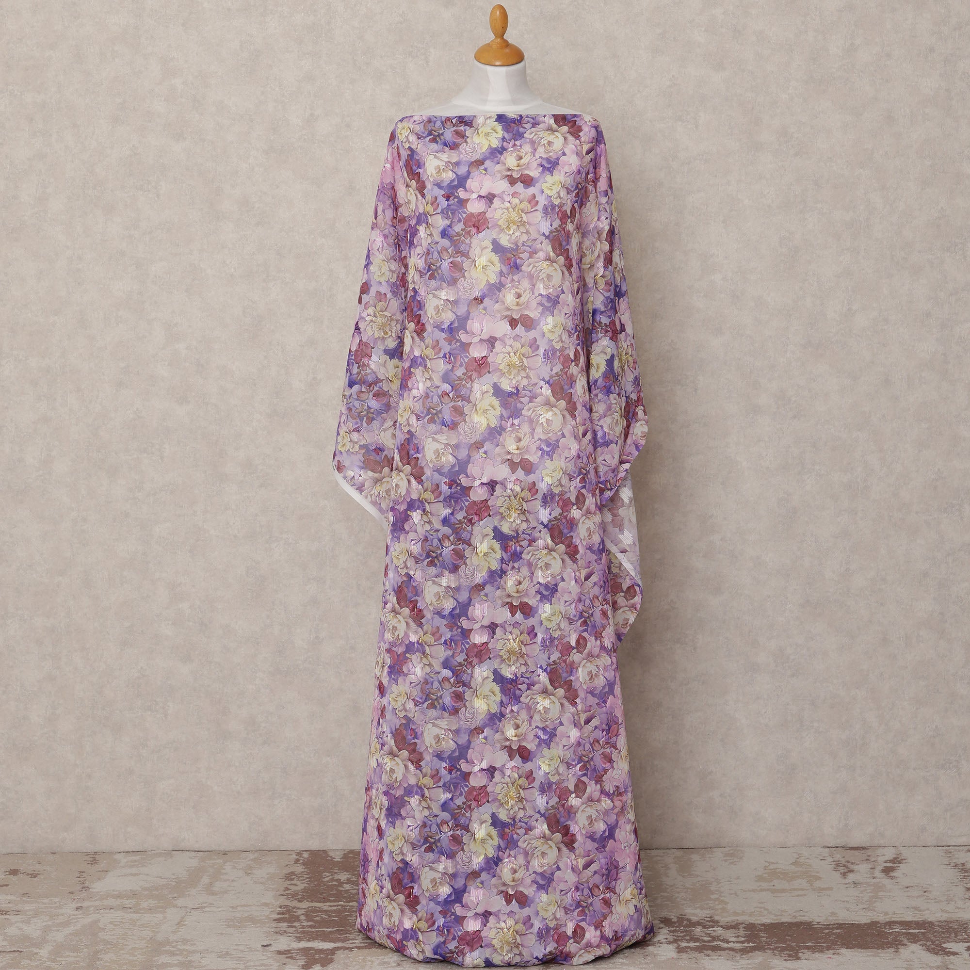 قماش ديراك تقليدي من القطن الصومالي، مزين بنقشة زهور بلون الخزامى والكريم، بطول 3.5 متر، وعرض 140 سم، صنع في الهند - D24710
