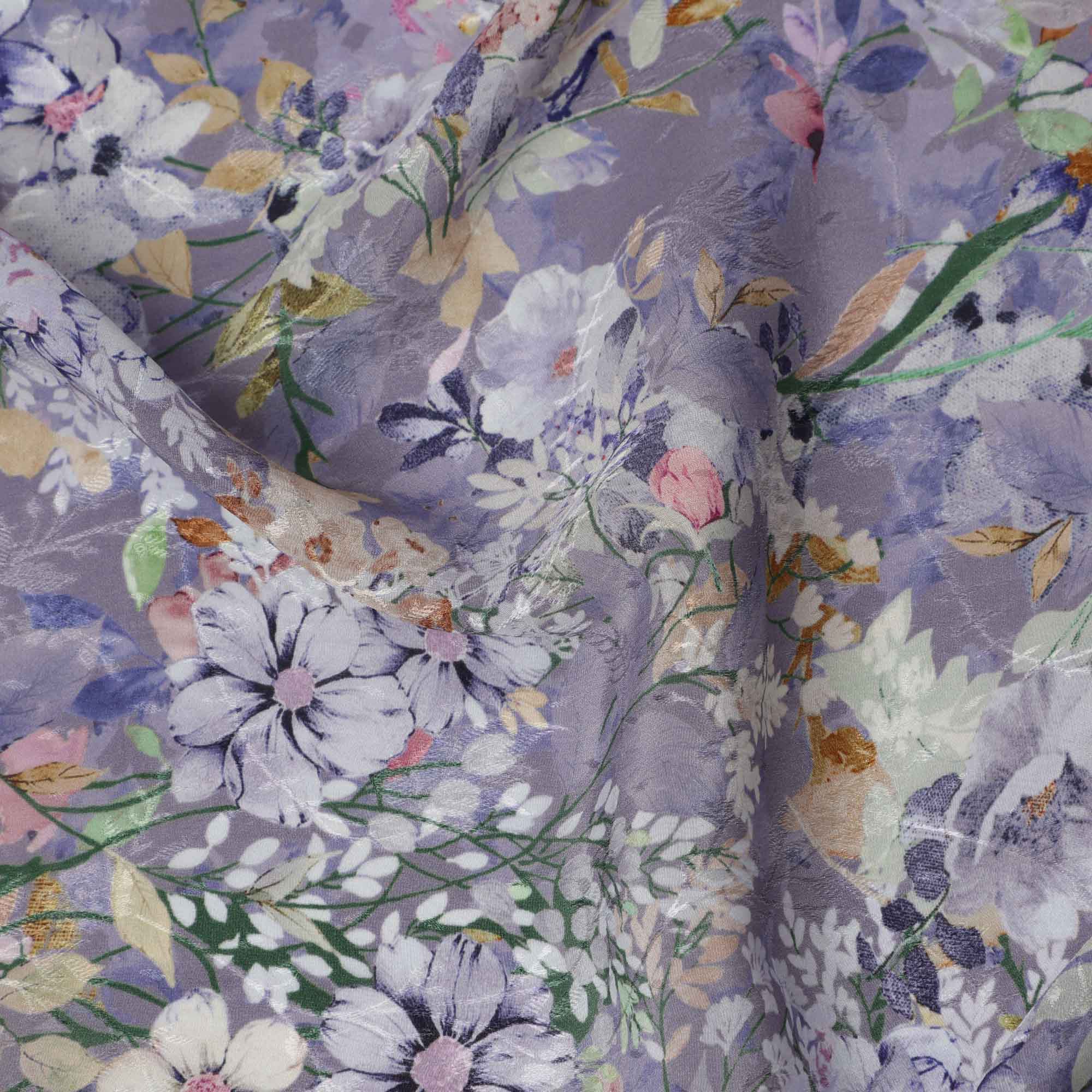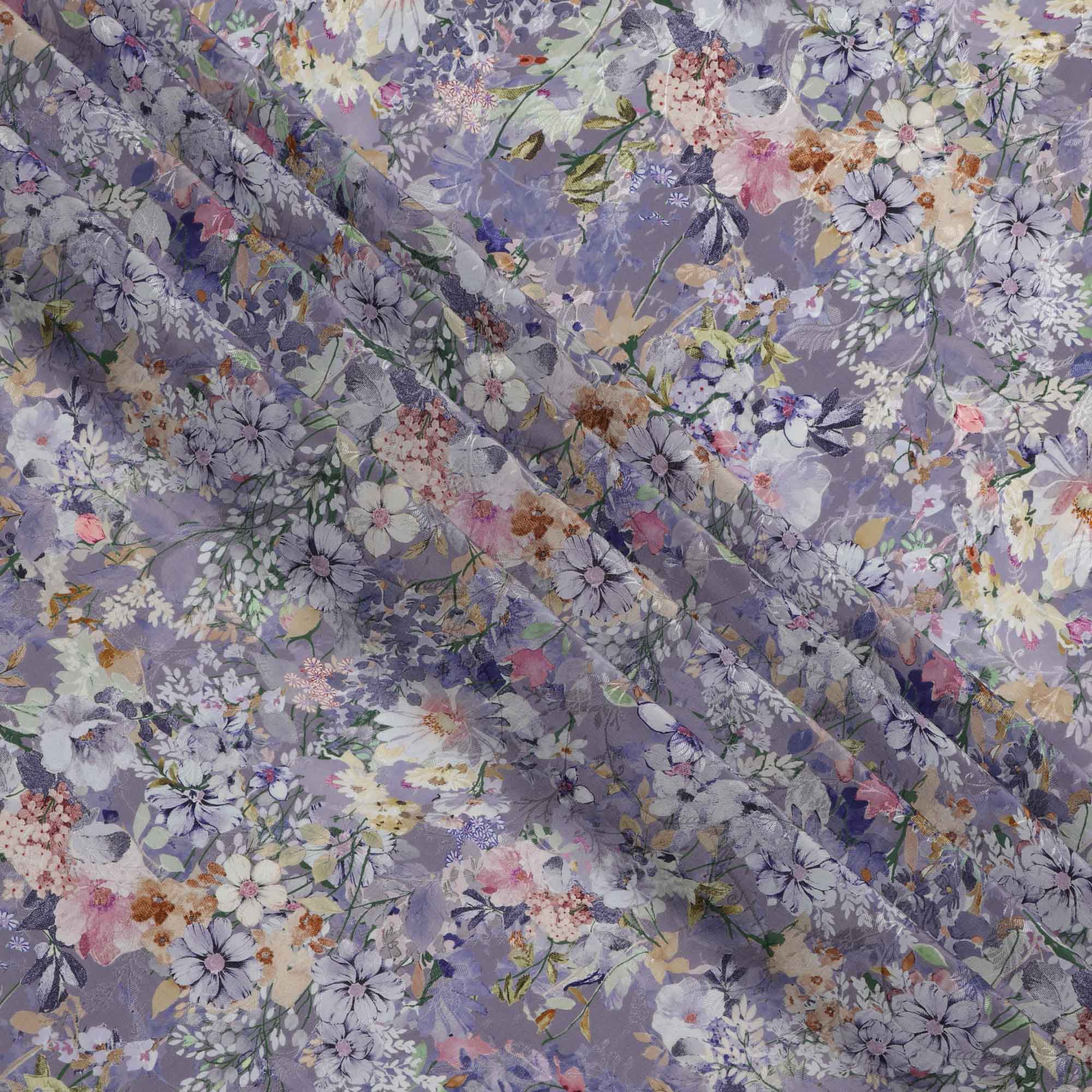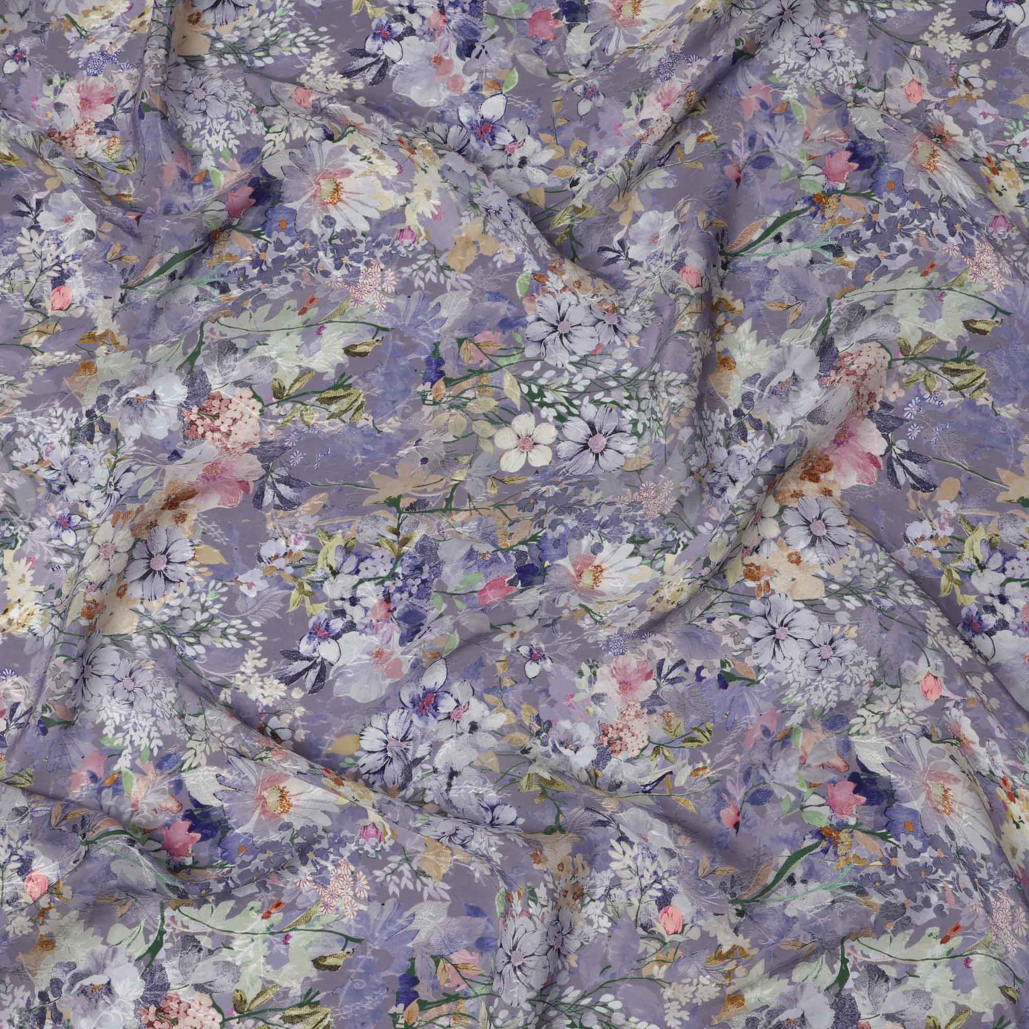 قماش كريب فيسكوز مطبوع عليه زهور لافندر، متعدد الألوان، تصميم حديقة نباتية مع لمسات باستيل، عرض 110 سم، صنع في الهند - D23440