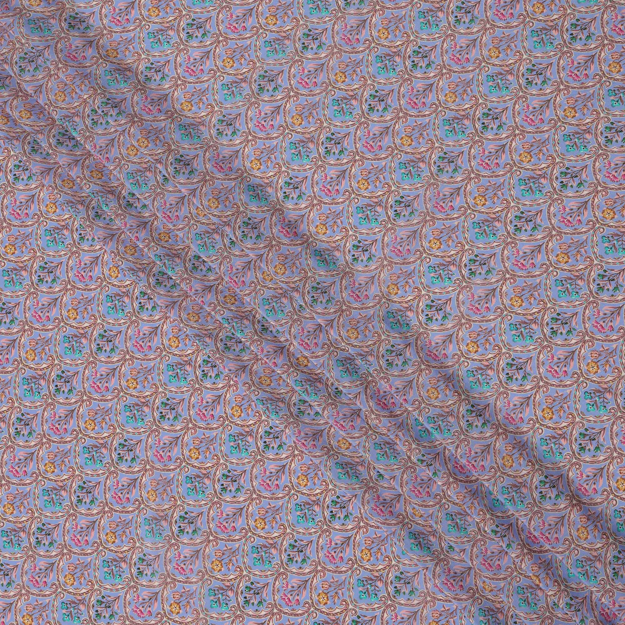 Lavender Geometric Floral Printed Premium Pure Silk Crepe Fabric with Intricate Ornamental Design, 110 cms Width, Made in India-D26318