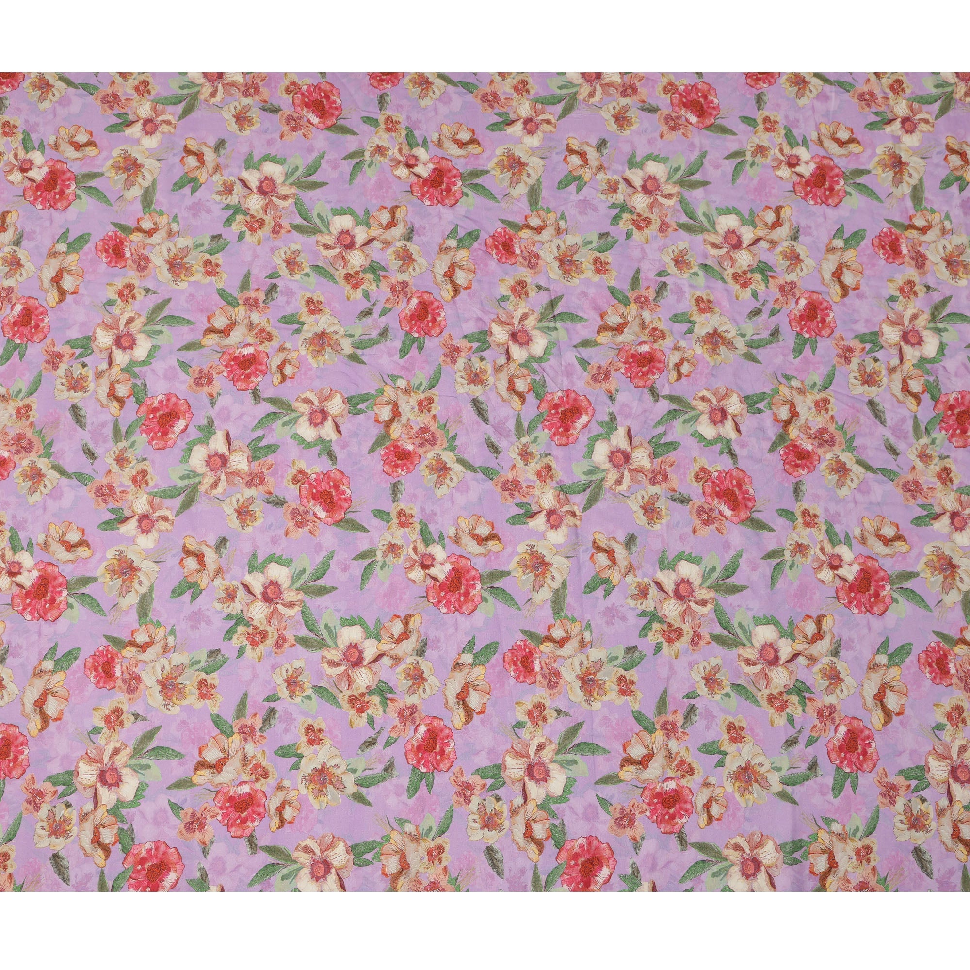 قماش كريب فيسكوز مطبوع عليه زهور باللونين الوردي والأحمر والكريمي مع لمسات من أوراق الشجر الخضراء، عرض 110 سم، صنع في الهند - D23404