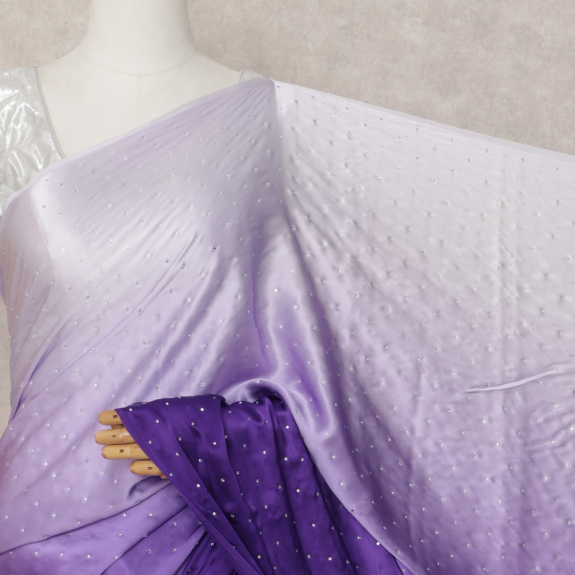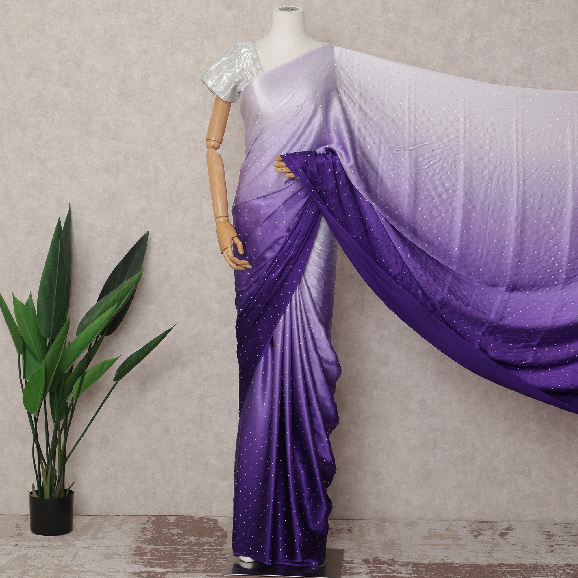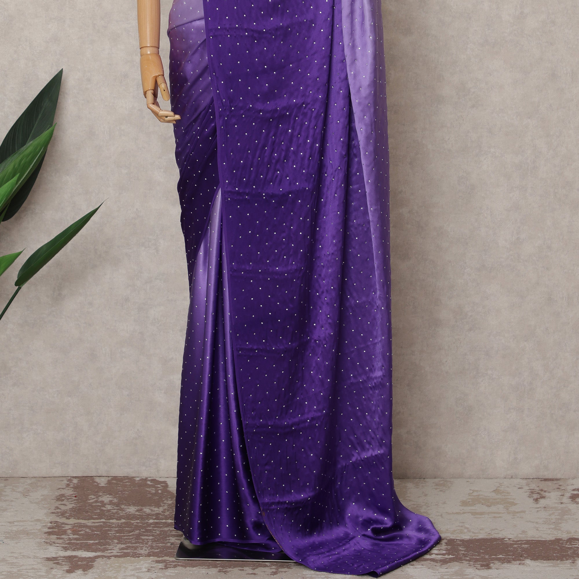 ساري حرير ساتان فاخر بألوان أرجوانية داكنة مع تطريز حجري، بطول 5.5 متر، وعرض 110 سم، صنع في كوريا الجنوبية - D24291