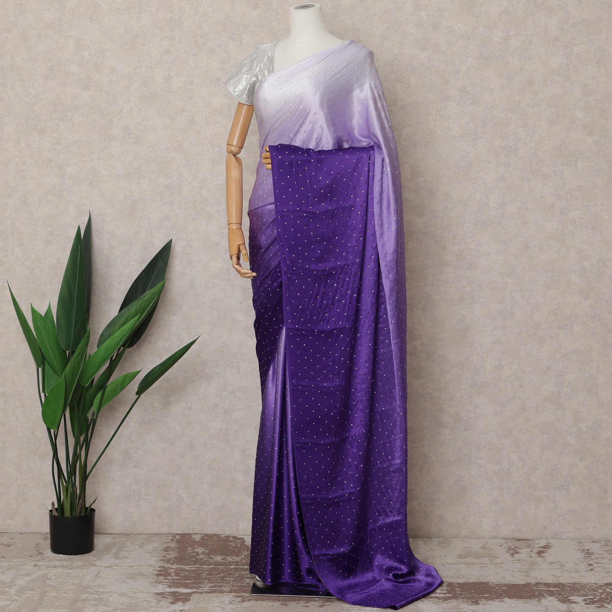 انغمسي في سحر ملكي مع هذا الساري من الخزامى إلى البنفسجي الداكن المصنوع من الساتان الحريري الفاخر، والذي يُظهر الدقة... اقرأ أكثر اقرأ أكثر