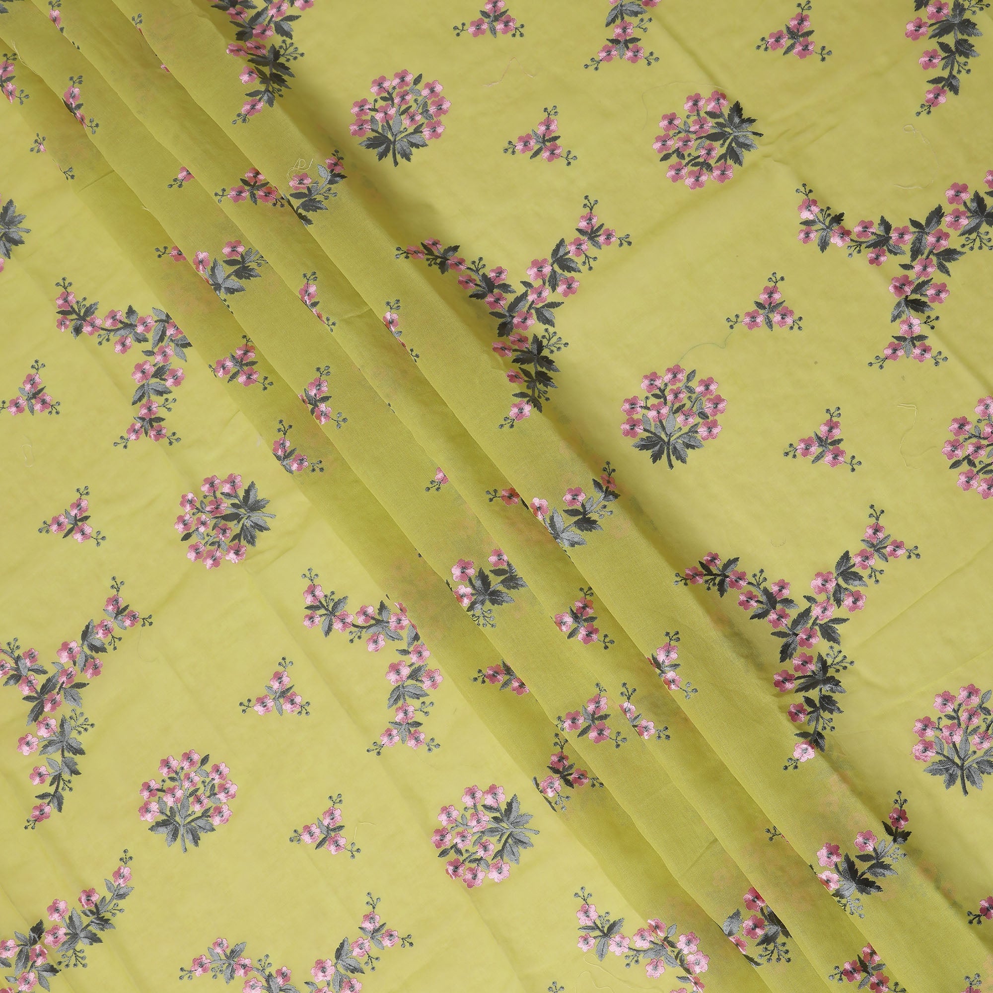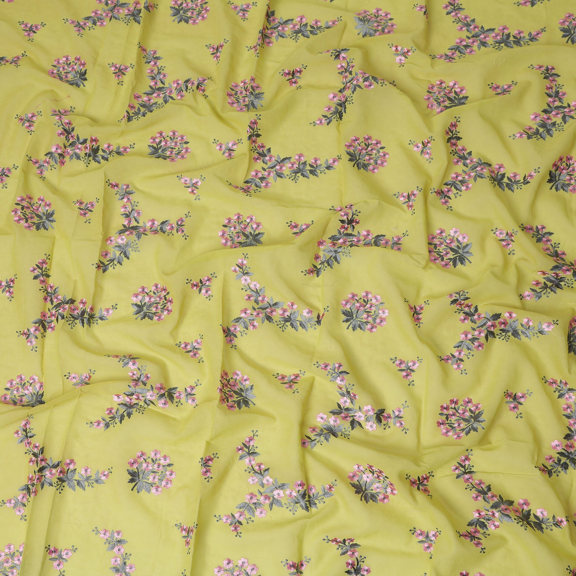 Lemon Yellow Traditional Sudanese Thobe Fabric Pure Cotton Voile 4.5 Meters Piece Width 140 Cms Soft Breathable Ethnic Wear Material with Delicate Floral Print Made in India-D27601