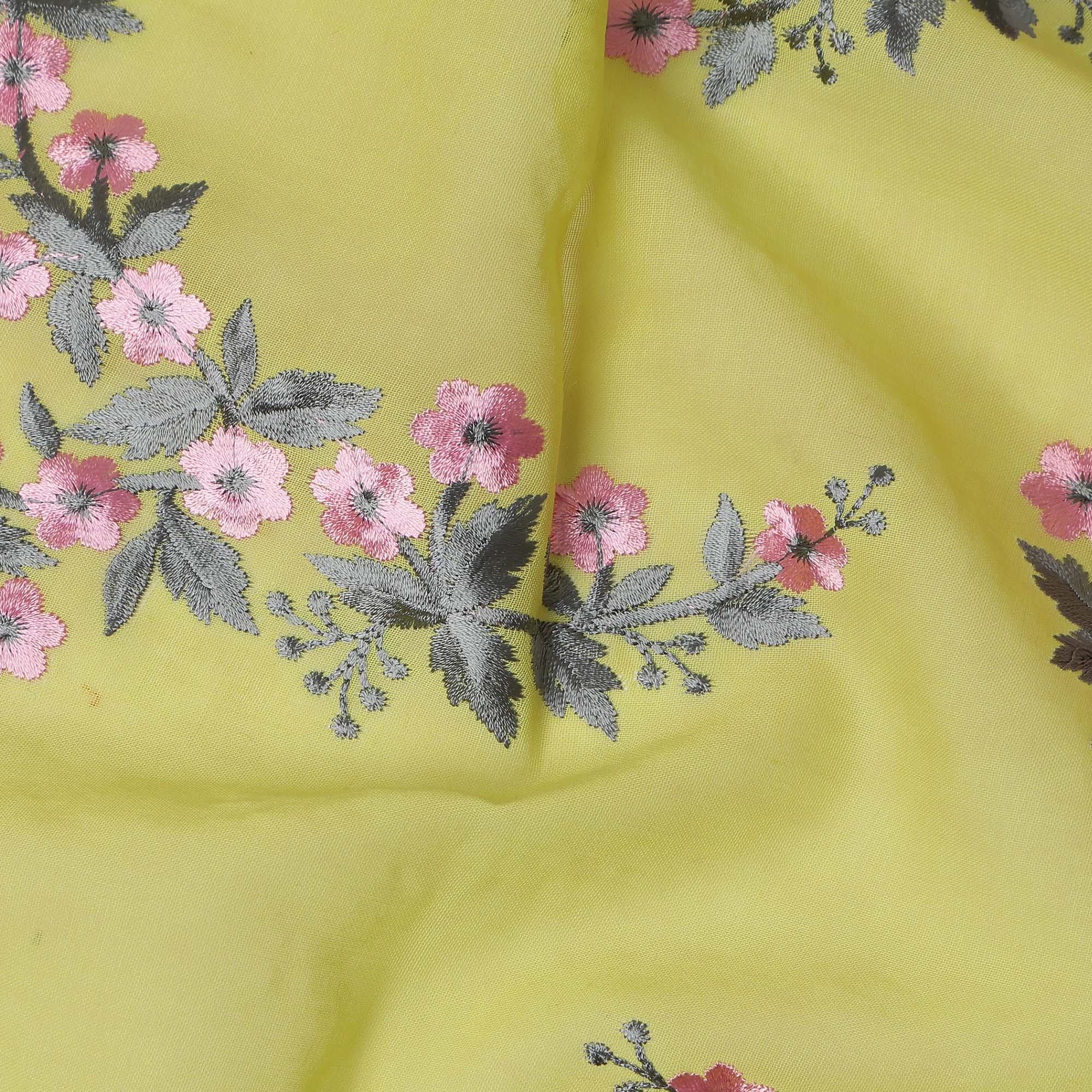 • أُوكَازيُون -20% Lemon Yellow Traditional Sudanese Thobe Fabric Pure Cotton Voile 4.5 Meters Piece Width 140 Cms Soft Breathable Ethnic Wear Material with Delicate Floral Print Made in India-D27601