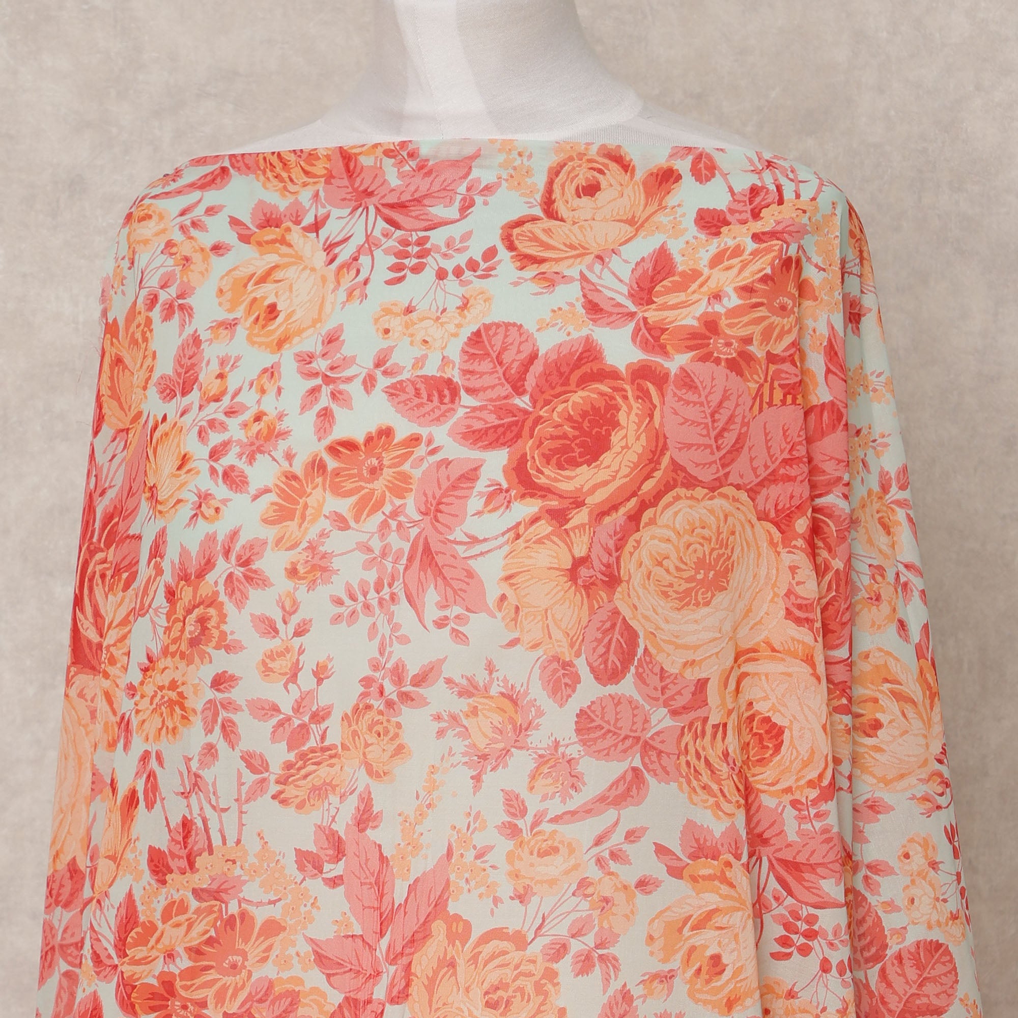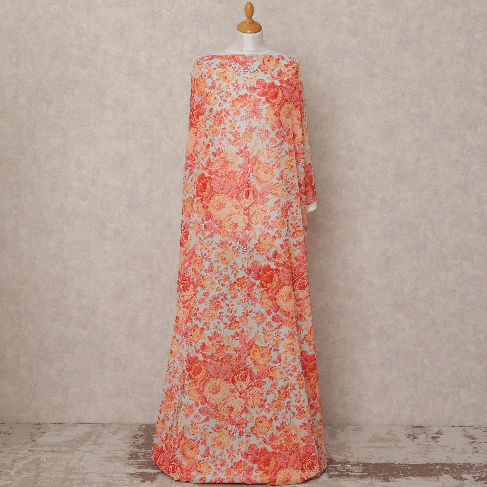 قماش ديراك تقليدي من القطن الصومالي، مزين بنقشة زهور باللونين الأزرق الفاتح والبرتقالي، بطول 3.5 متر، وعرض 140 سم، صنع في إيطاليا - D24728