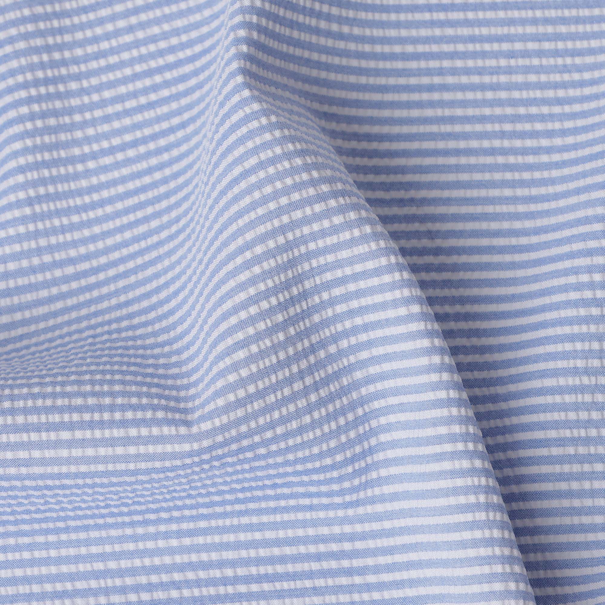 Light Blue & White Micro-Striped Cotton-Blended Shirting Fabric, Fine Horizontal Mini Stripe Design, 150 cms Width, Origin China-D26604