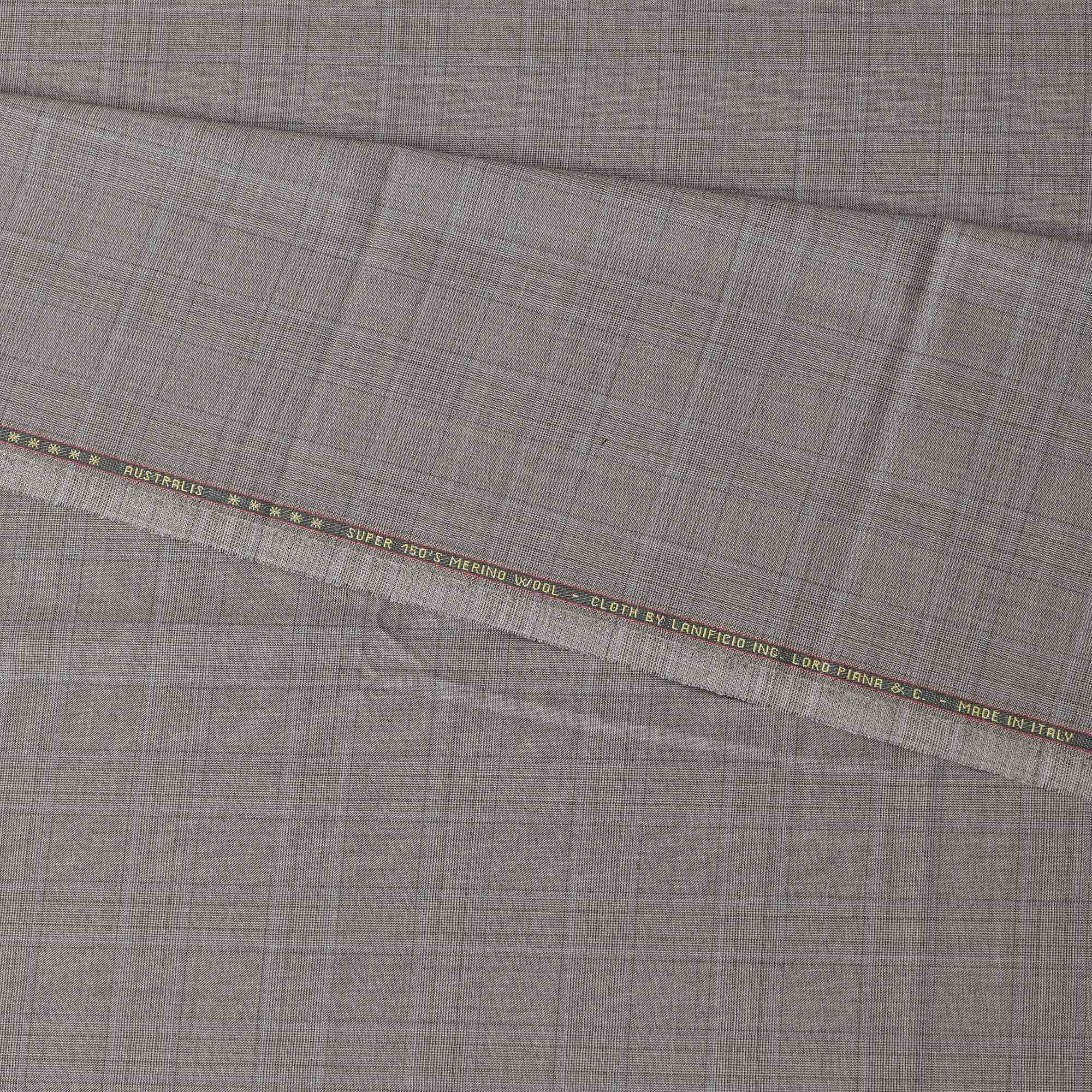 Light Brown Checkered Loro Piana Super 150’s Merino Wool Italian Suiting Fabric, Width 150 Cms, Length 3.75 Mtrs, Made in Italy-D26049