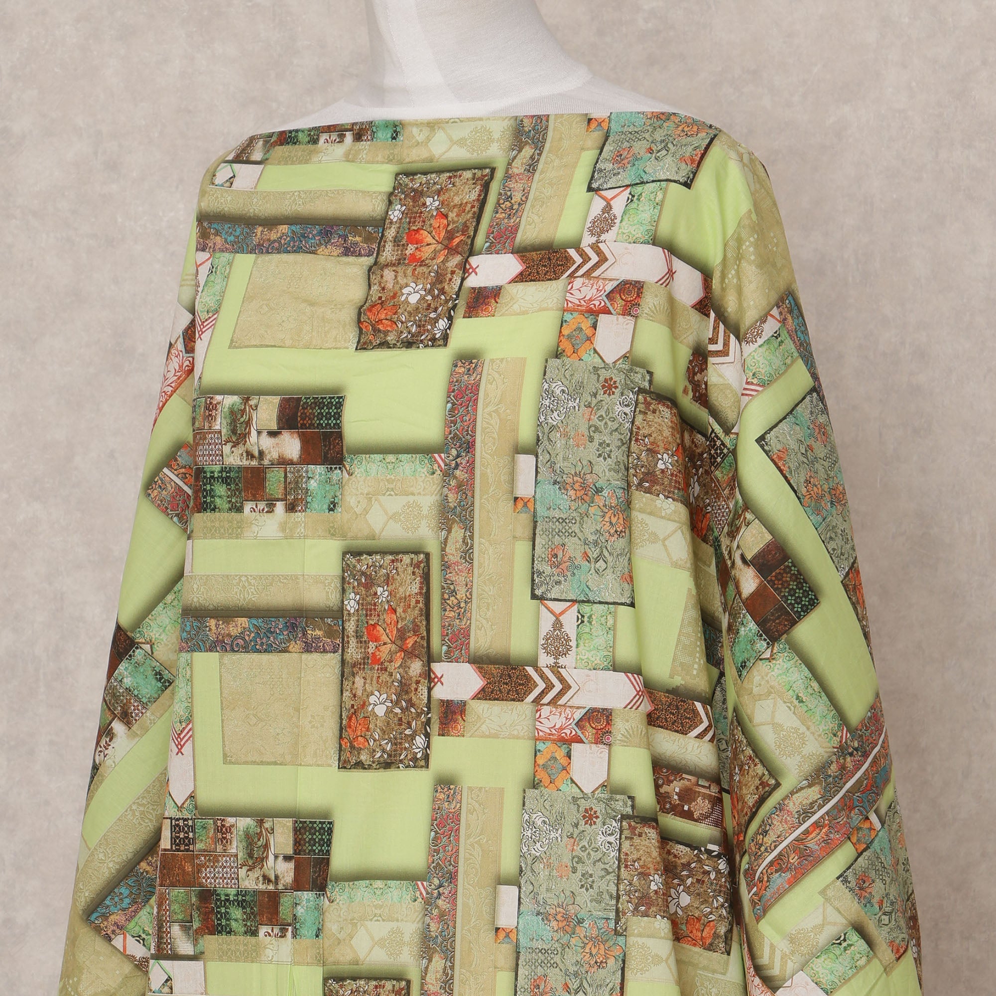 قماش ديراك صومالي قطني فوال، متعدد الألوان، بنقشة هندسية، أخضر فاتح، 3.5 متر، عرض 150 سم، صنع في الهند - D24595
