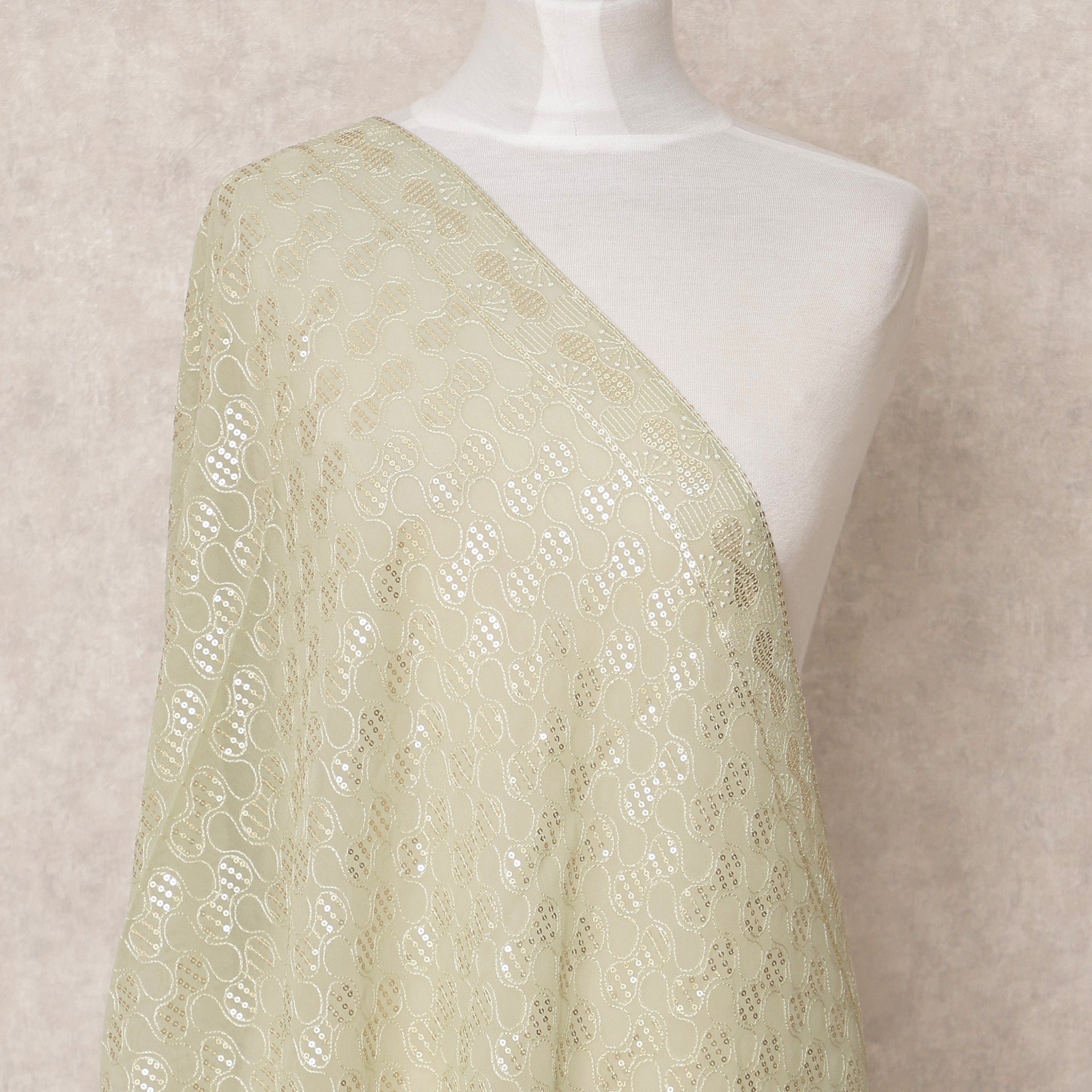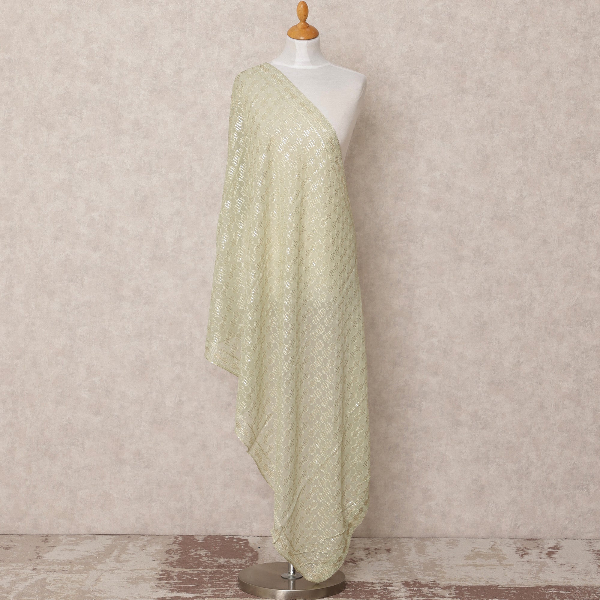 دوباتا جورجيت صناعي مطرز بالترتر ومتموج باللون الأخضر الفاتح، مقاس 210×90 سم، الهند - D24834