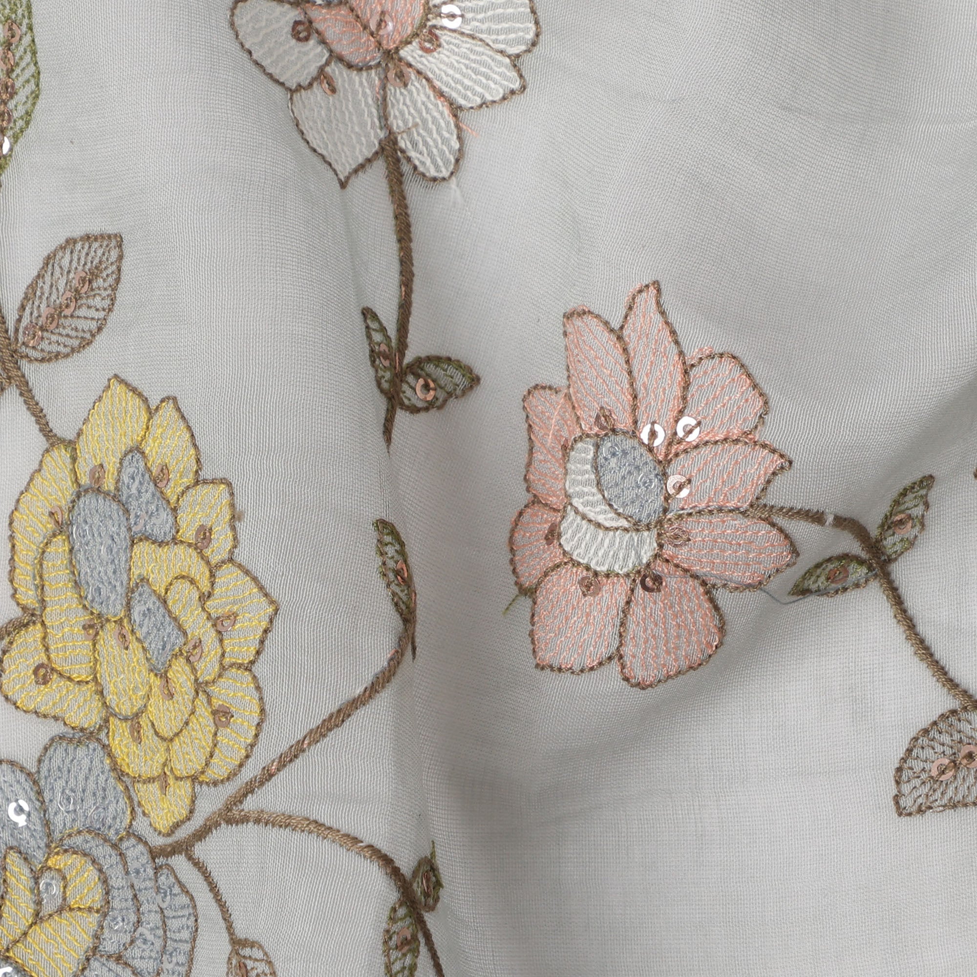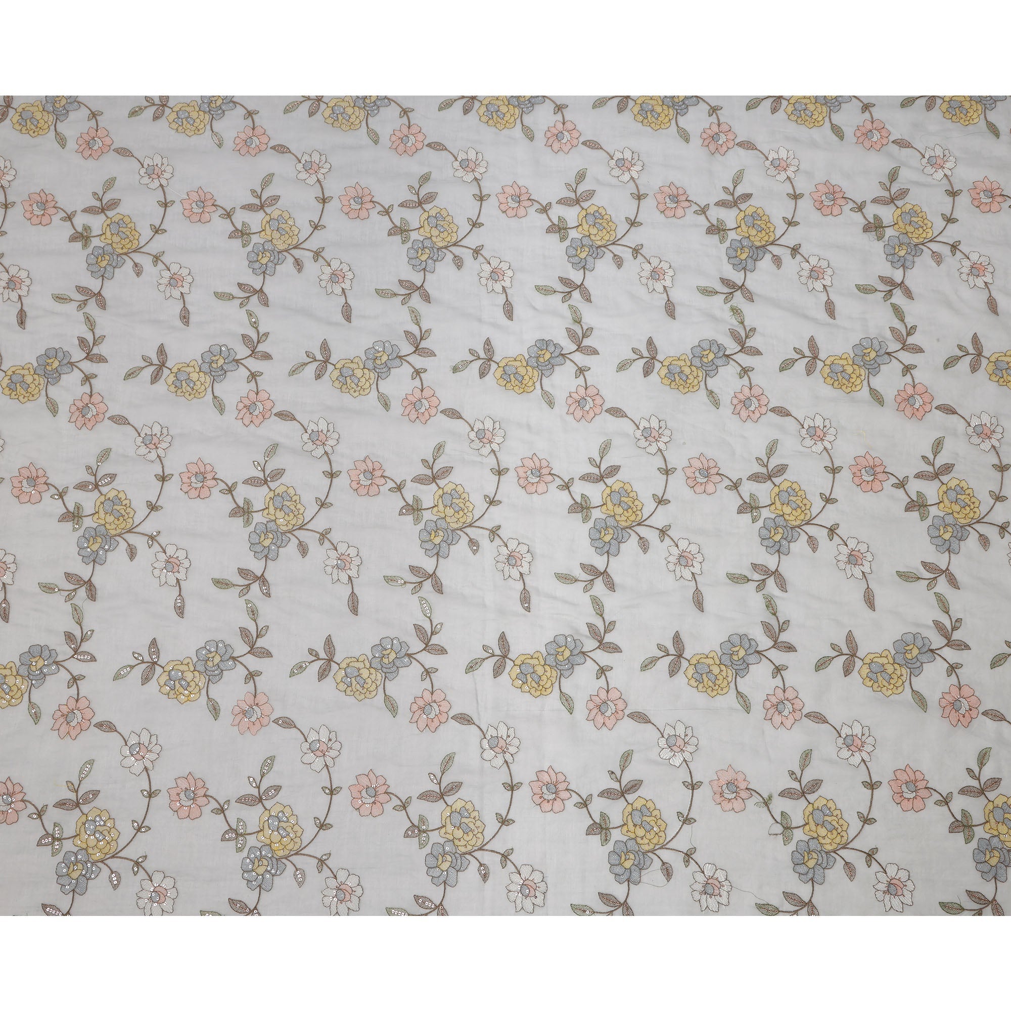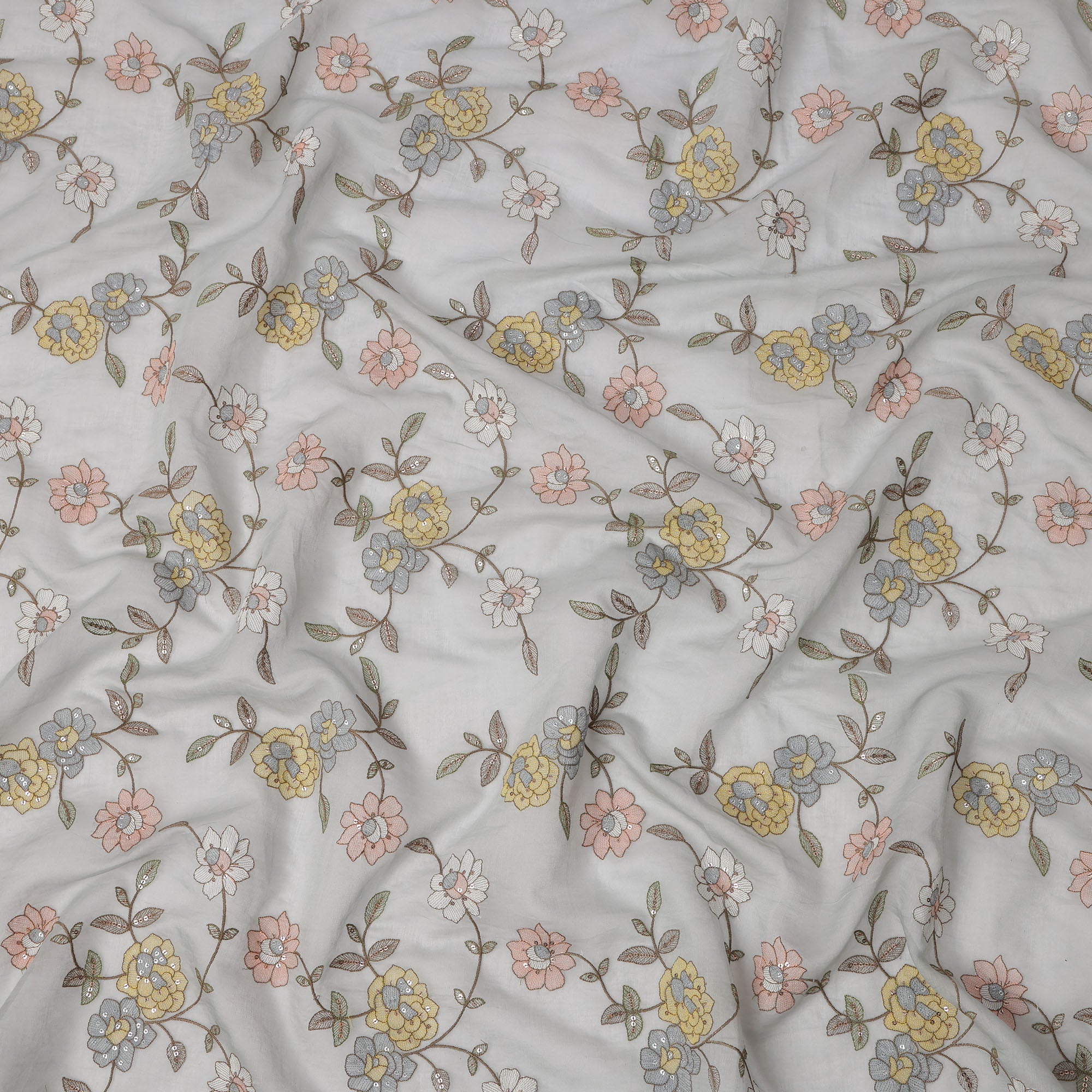 قماش قطني فيسكوز مطبوع عليه زهور رمادي فاتح، عرض 110 سم، الهند - D24822