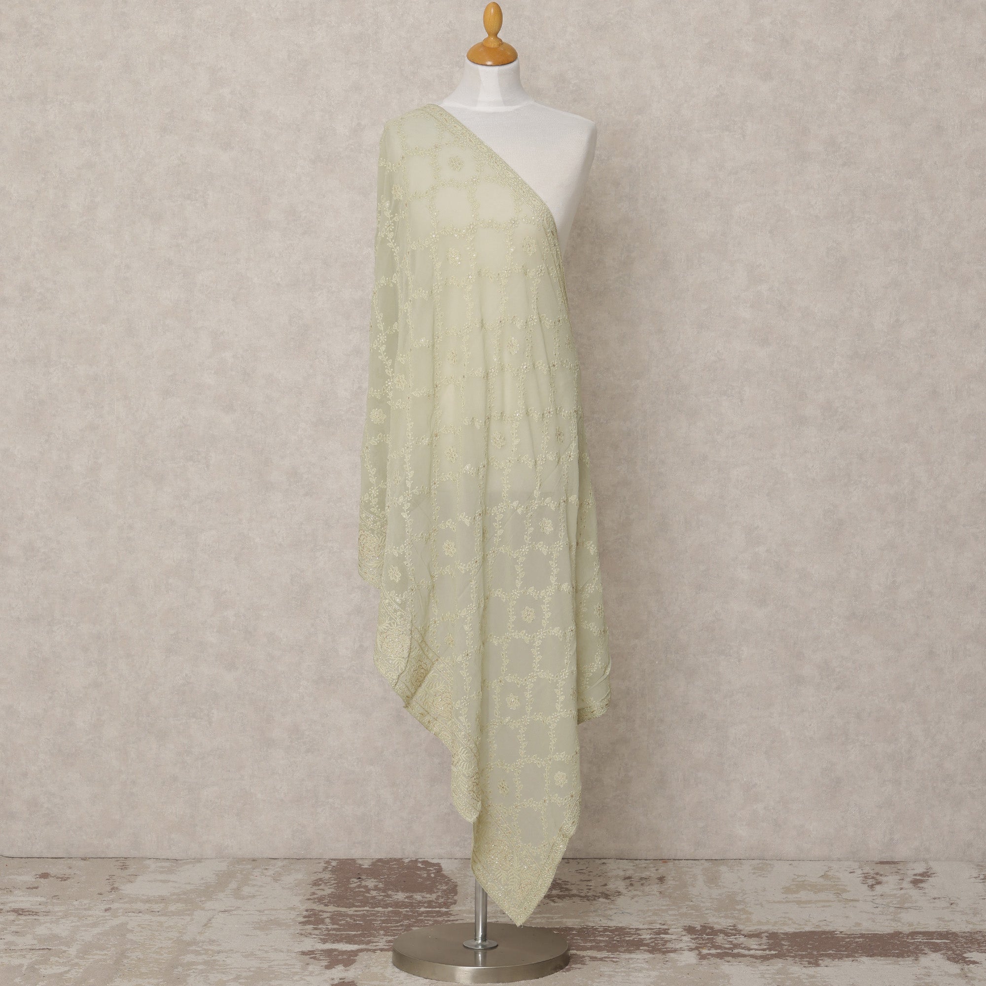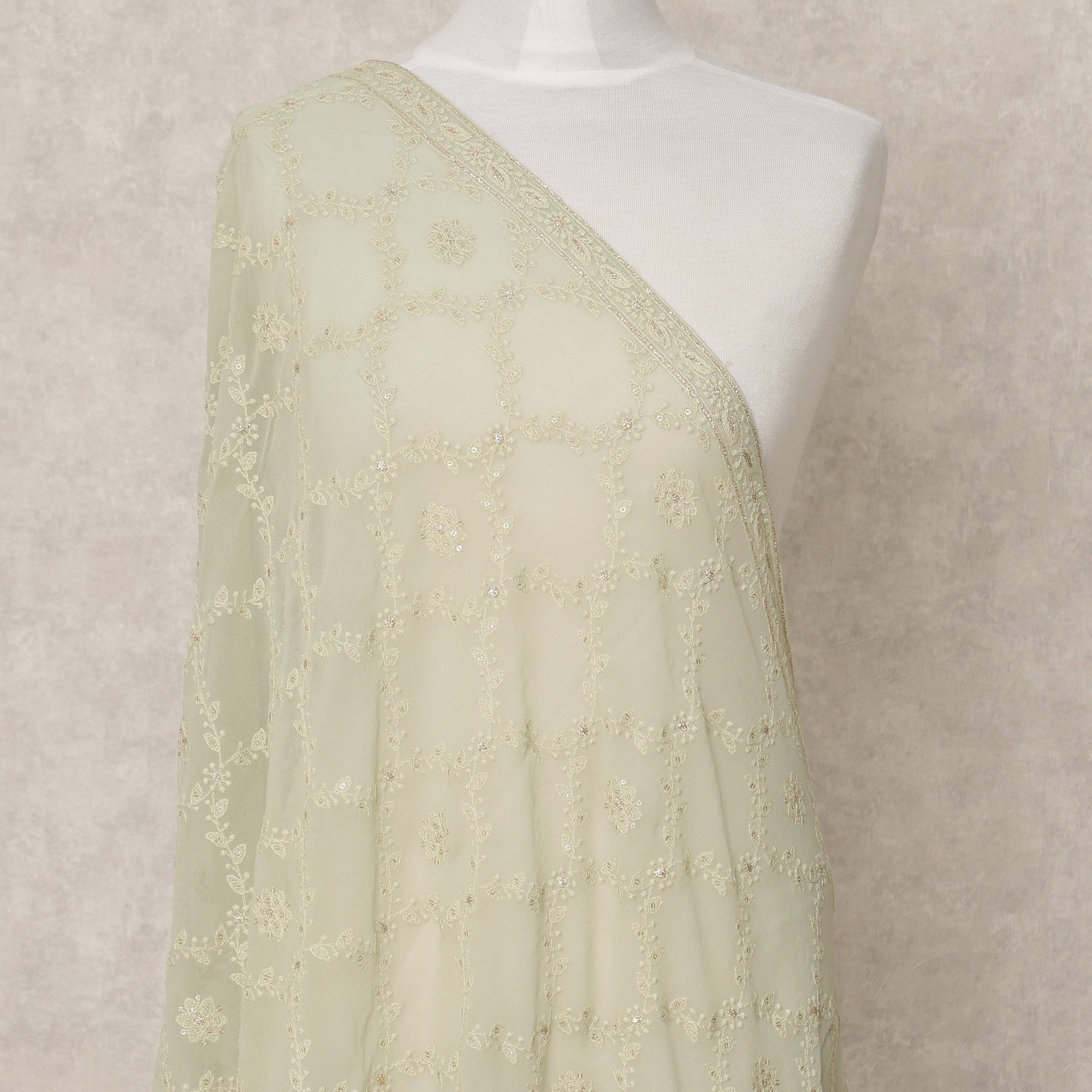 دوباتا جورجيت صناعي باللون الأخضر الليموني الفاتح مع تطريز، 210 × 80 سم، صنع في الهند - D24094