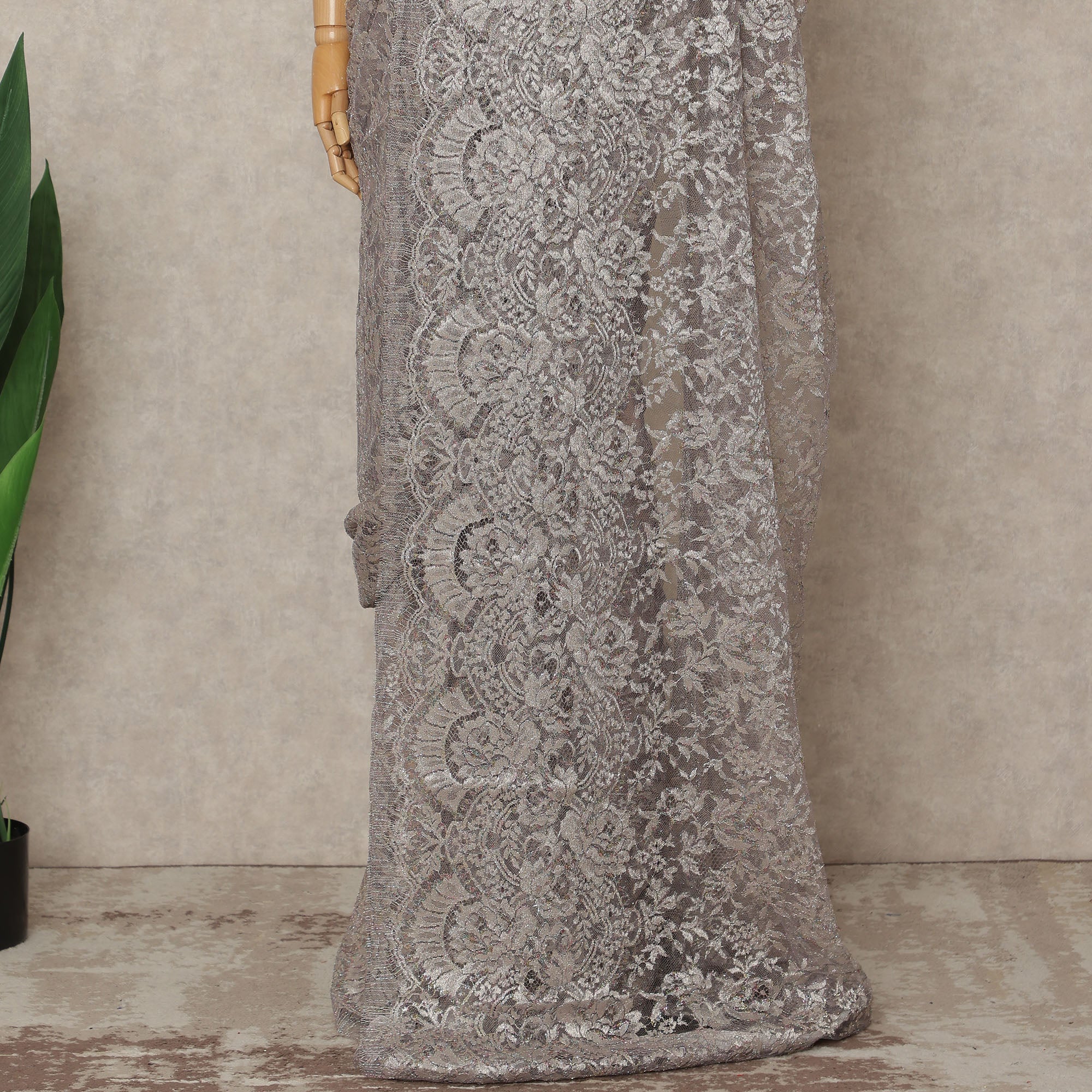 Immerse yourself in the opulence of this Light Pink Premium French Metallic Chantilly Lace Saree Fabric, a 5.5-meter couture masterpiece meticulously crafted in France and admired for its gleaming platinum-silver finish, intricate floral artistry, and elegant European craftsmanship; the rich metallic sheen illuminates the lace’s delicate motifs, creating a sophisticated play of texture and light that elevates any ensemble, making it perfect for bridal couture, evening wear, cocktail sarees, and grand festive occasions; the authentic French Chantilly weaving technique lends the fabric its signature finesse—feather-light, semi-transparent, and exquisitely detailed, offering a graceful drape that flatters every silhouette with effortless elegance; its 110 cm width ensures ample fabric for bespoke tailoring, allowing designers and fashion lovers to craft luxurious sarees and high-end statement pieces with ease; the Light Pink tone adds a touch of modern glamour and timeless sophistication, making this fabric an excellent choice for customers looking to shop online or buy online premium metallic lace; ideal for weddings, receptions, galas, and special celebrations where radiant refinement is essential, this lace fabric promises durability, softness, and couture-level brilliance; to maintain its shimmering beauty and delicate craftsmanship, opt for dry-clean-only care, store carefully to avoid snagging, and handle gently—blouse not included.