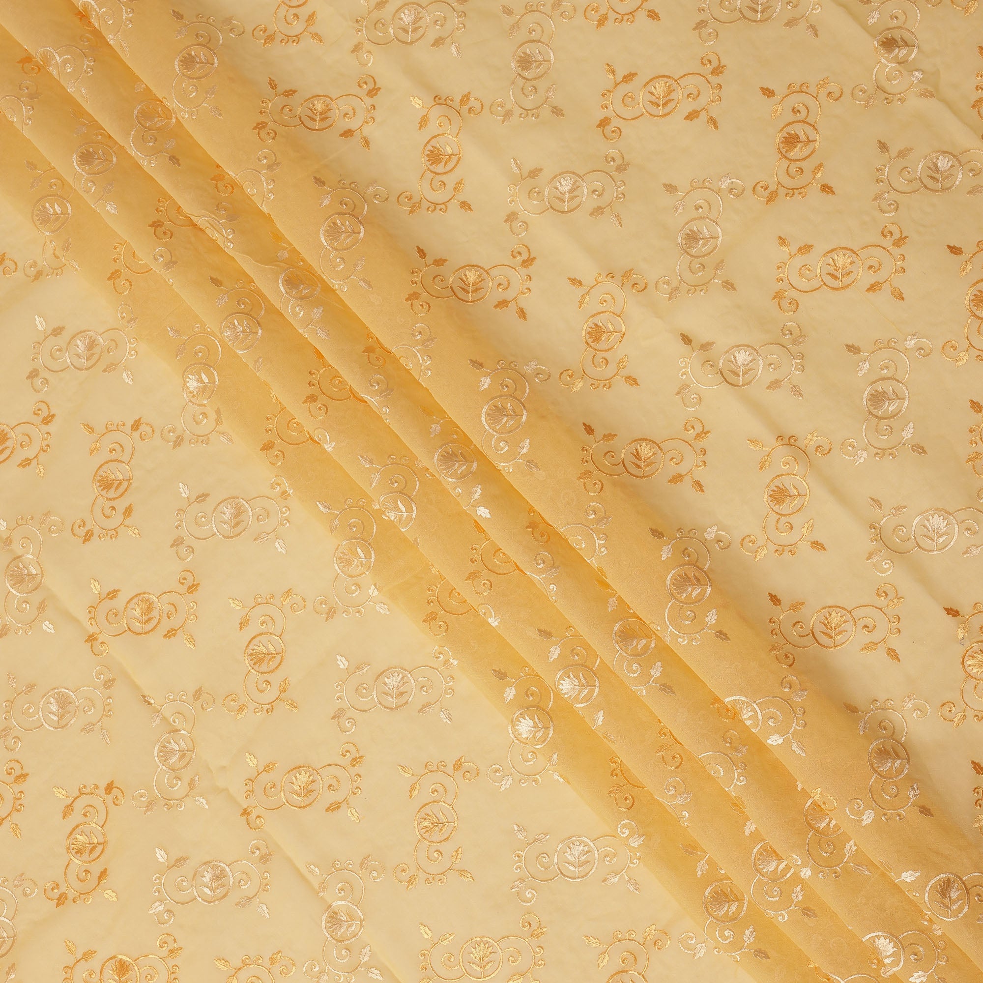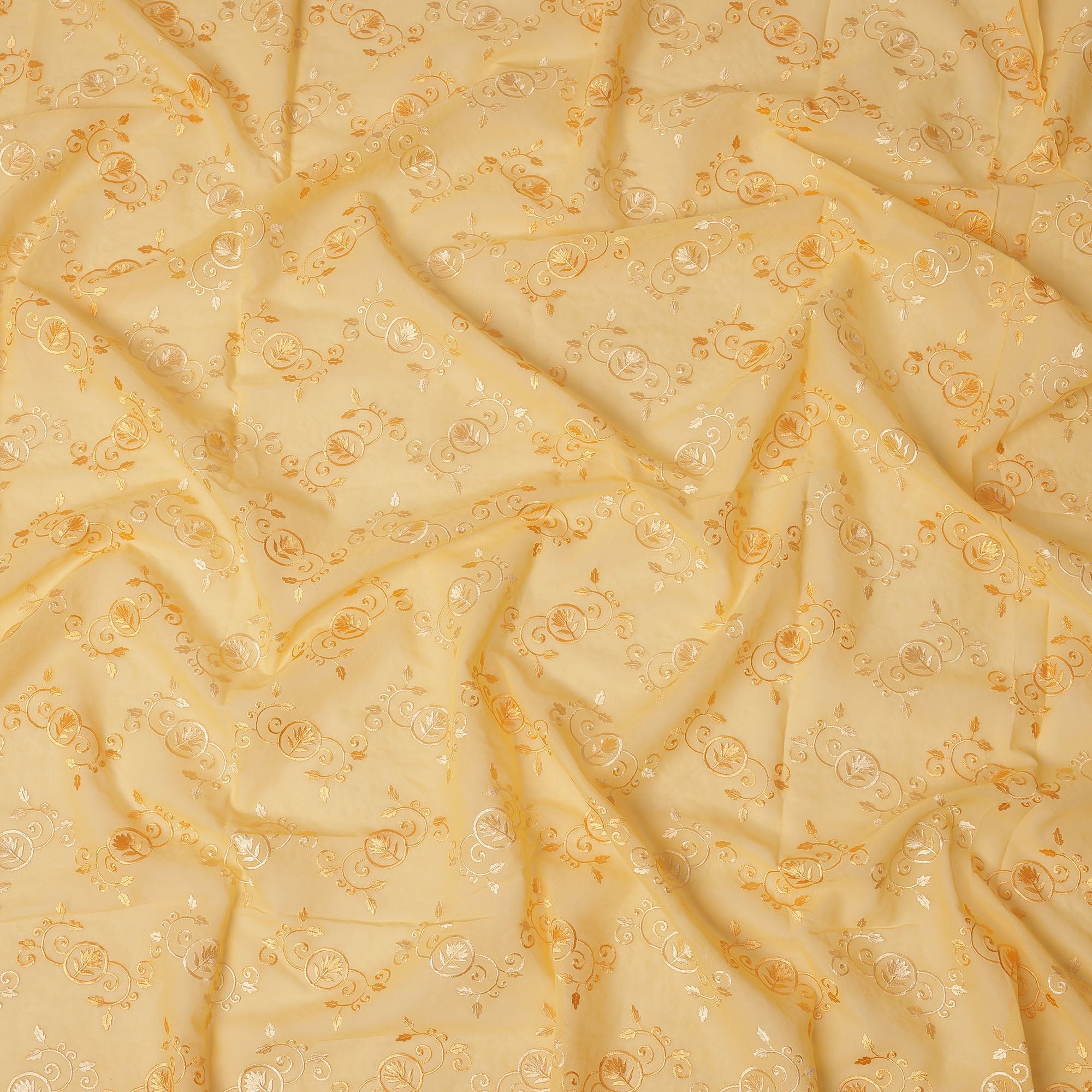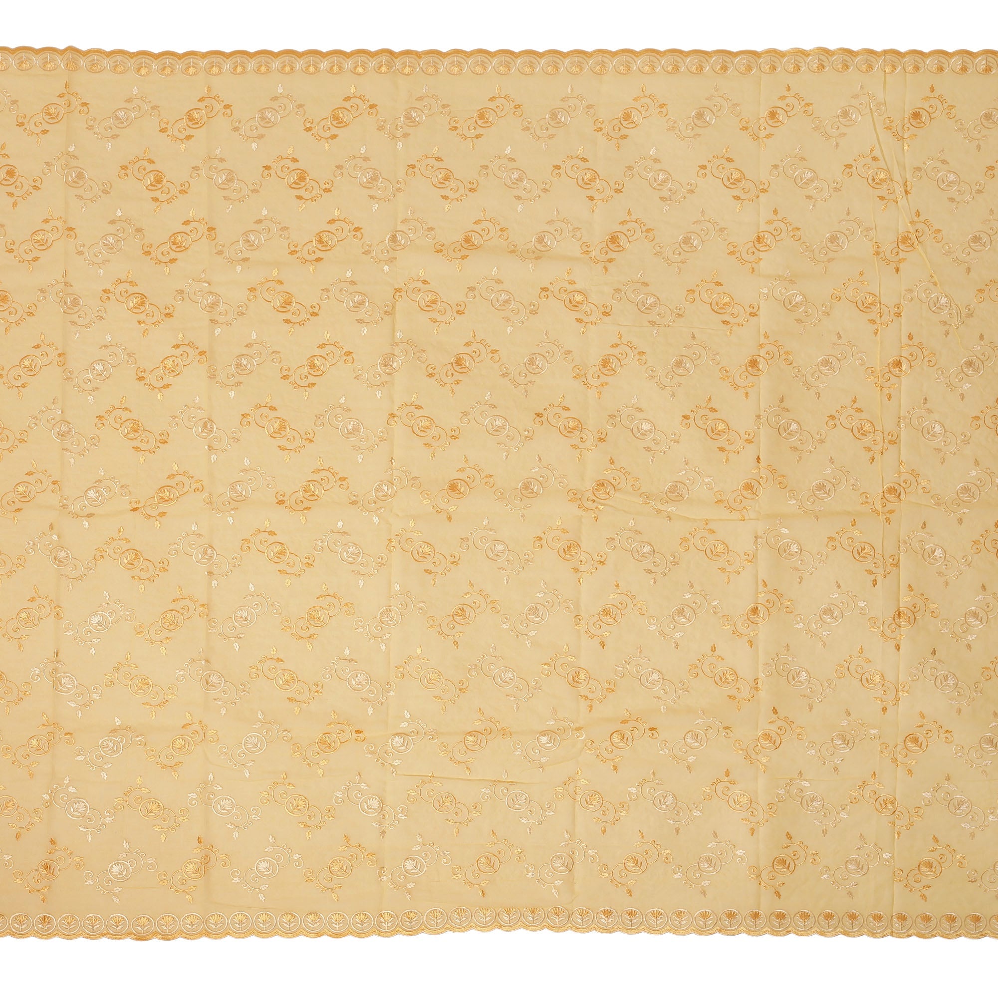 Light Yellow Traditional Sudanese Thobe Fabric with Golden & White Embroidery, Pure Cotton Voile, 4.5 Mtrs Length, 140 Cms Width, Made in India-D26383