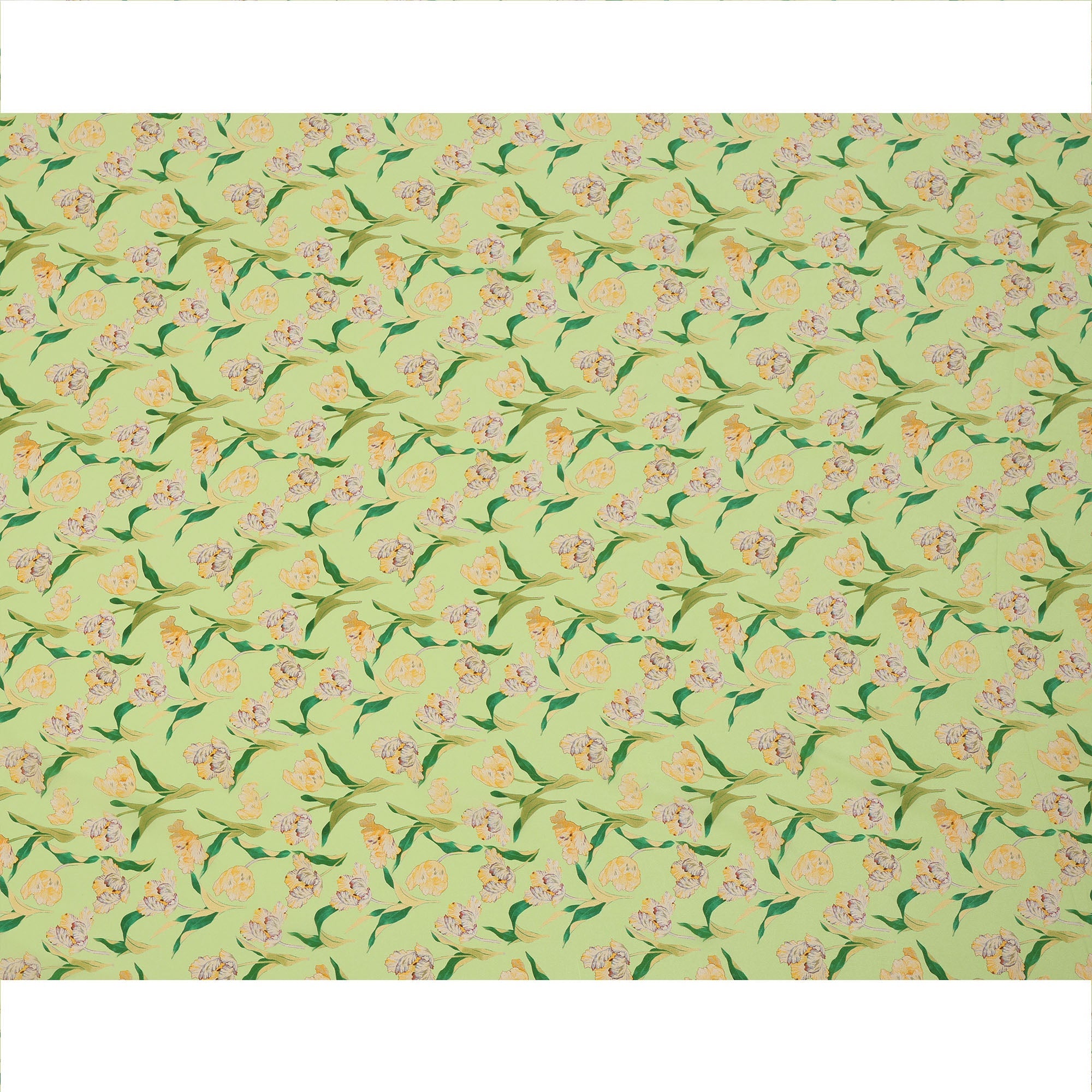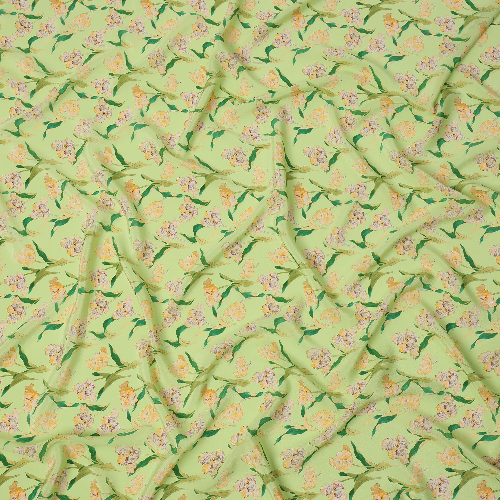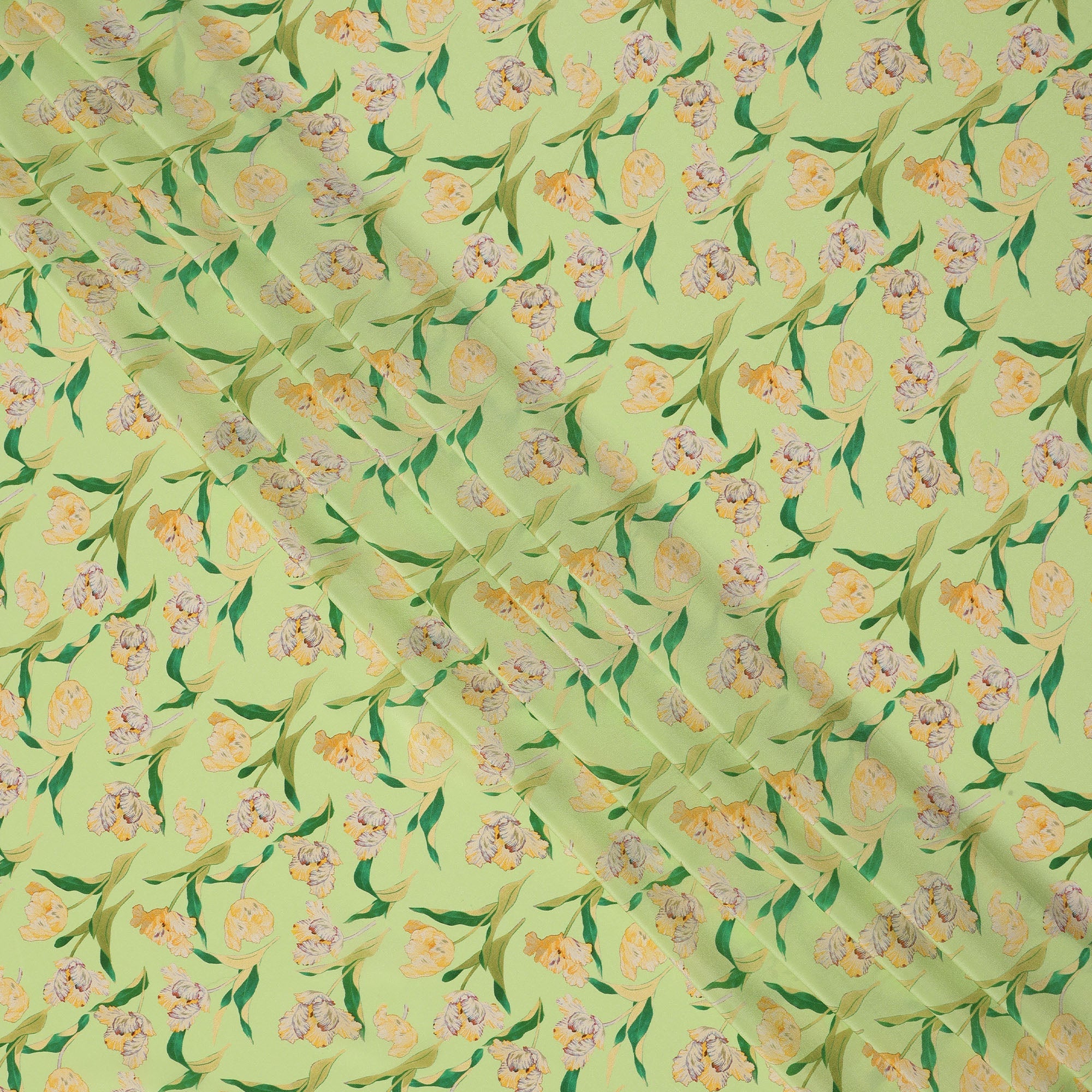 Premium lime green pure silk crepe fabric with floral print.