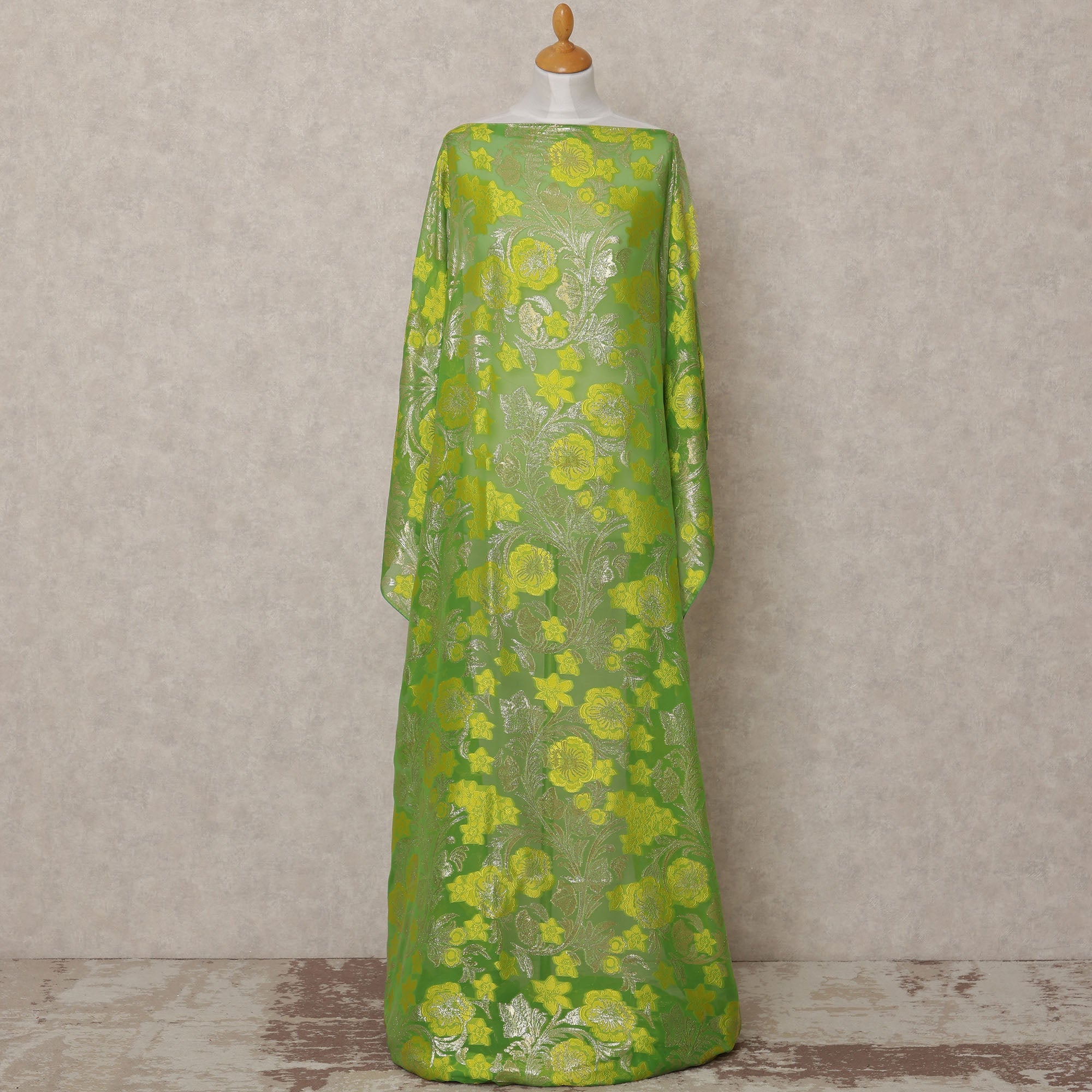 شيفون حرير صومالي فاخر باللون الأخضر الليموني مع لمسة نهائية من اللوريكس المعدني