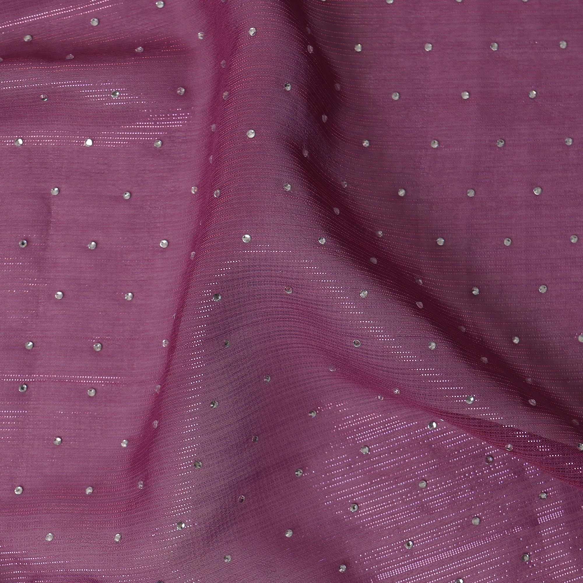 Crafted in a stunning Magenta Purple hue that radiates richness and elegance, this Traditional Sudanese Thobe made from premium synthetic chiffon beautifully captures the harmony of traditional artistry and contemporary sophistication. The fabric features a soft sheer texture enhanced with subtle linear shimmer detailing, creating a delicate glow that pairs beautifully with the scattered silver-tone stone work placed meticulously across the surface, adding brilliance without overpowering its refined charm. This 4.5-meter piece offers ample length for graceful Sudanese draping styles, while the 110 cm width ensures a fluid, flattering fall that moves effortlessly with every step. Made in India with exceptional craftsmanship, the thobe reflects high-quality finish, careful stone placement, and the breathable comfort of chiffon, making it ideal for festive gatherings, cultural ceremonies, and elegant occasions. Its vibrant Magenta Purple color stands out beautifully, symbolizing joy, celebration, and feminine grace, making it a versatile choice for women looking to buy online premium ethnic wear. Whether styled traditionally or paired with modern accessories, the thobe promises a timeless appeal, enhanced by easy handwash maintenance that keeps the fabric’s softness, color depth, and embellishment sparkle intact for long-lasting elegance. Shop online to experience the perfect blend of lightweight comfort, luxurious texture, and exquisite craftsmanship in this captivating Sudanese ensemble.