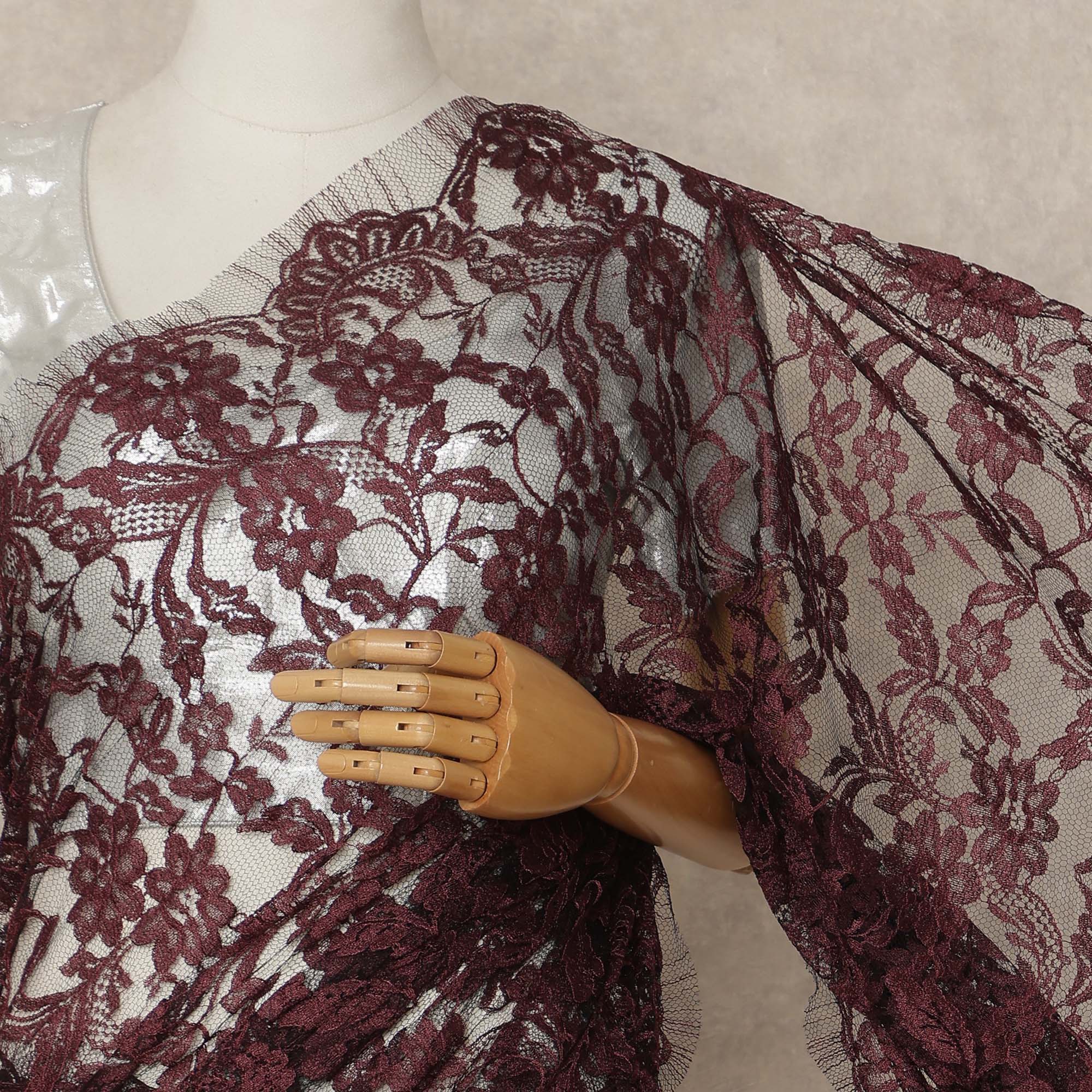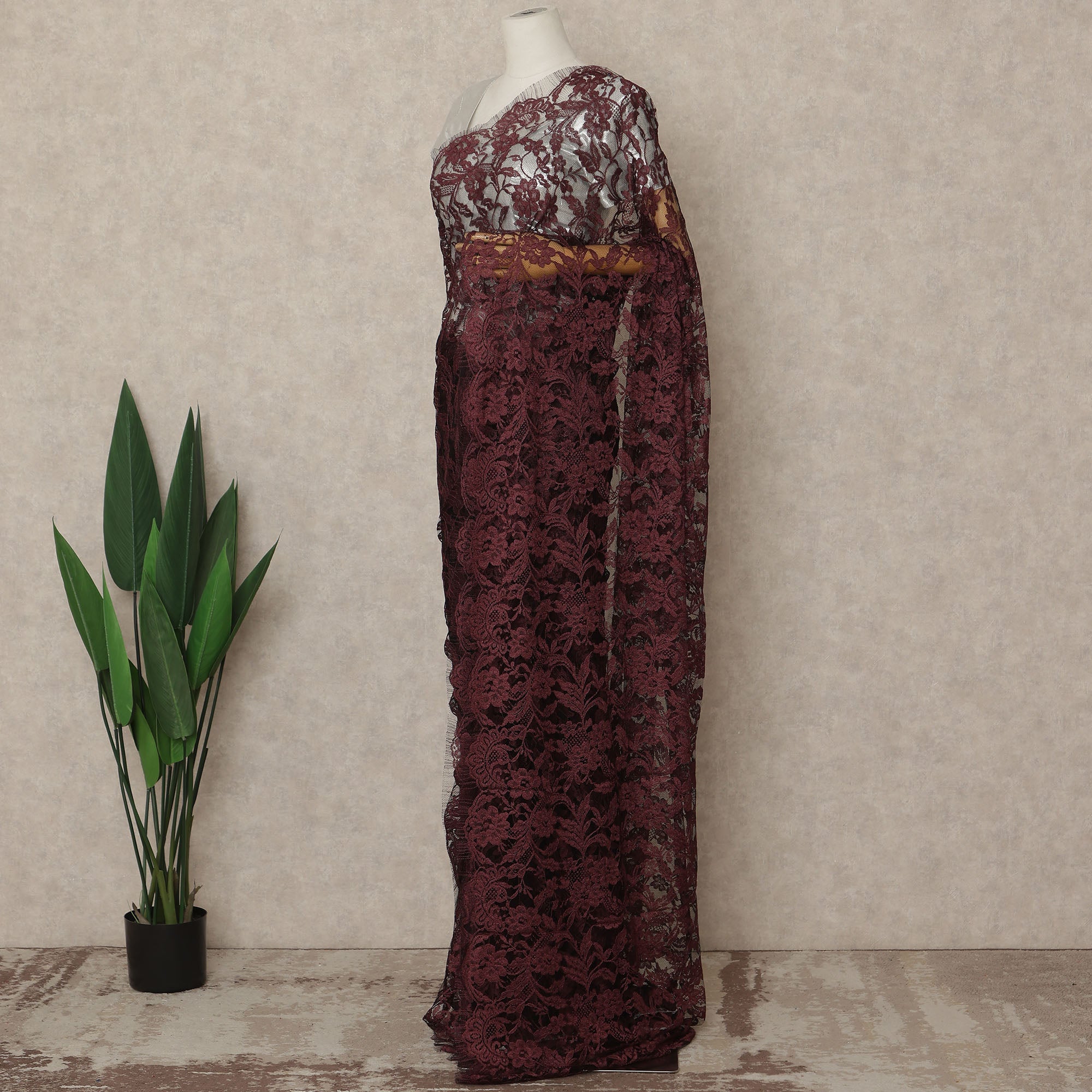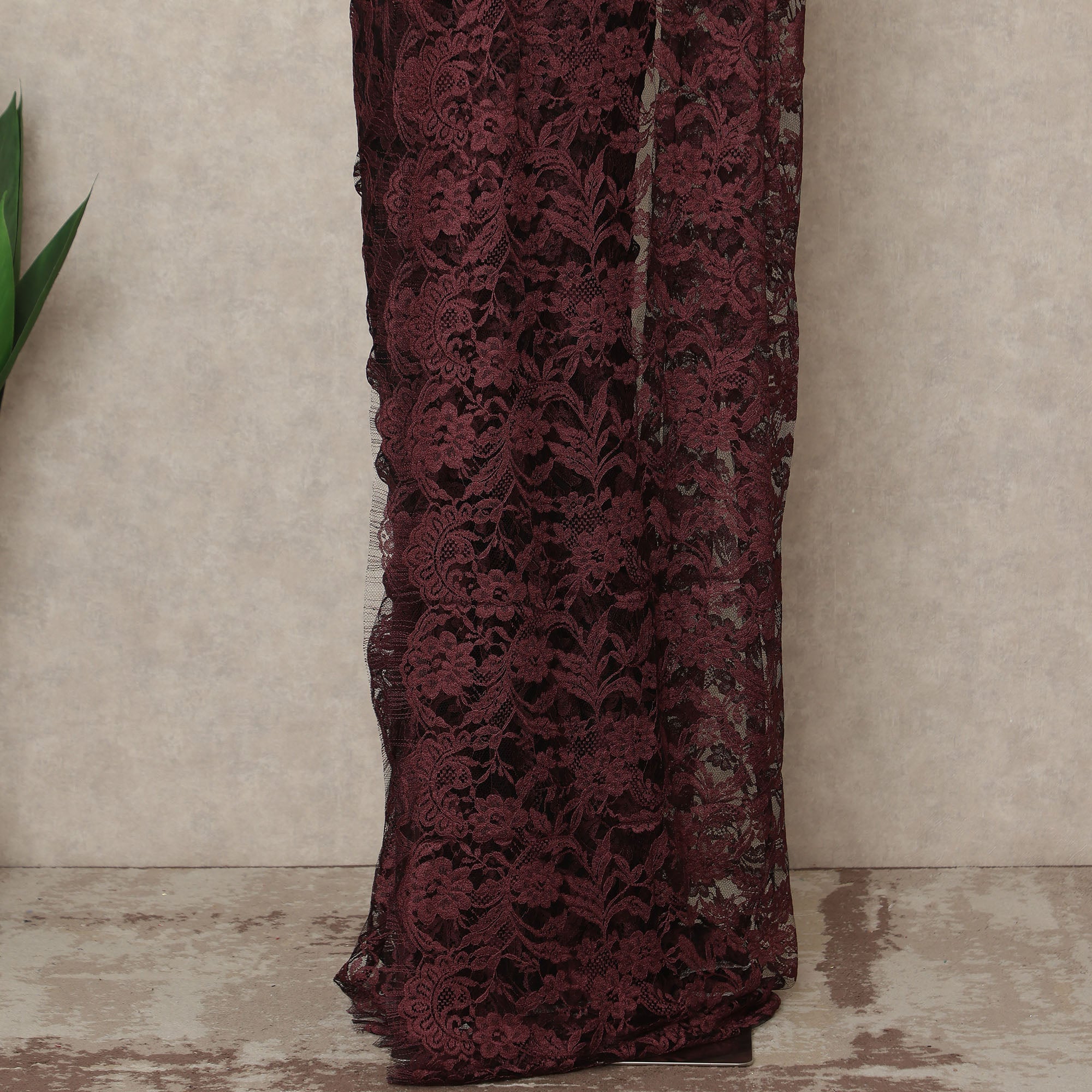 Maroon 2Tone Premium French Chantilly Saree Lace 5.5 Mtrs 110 Cms Width France-D27791