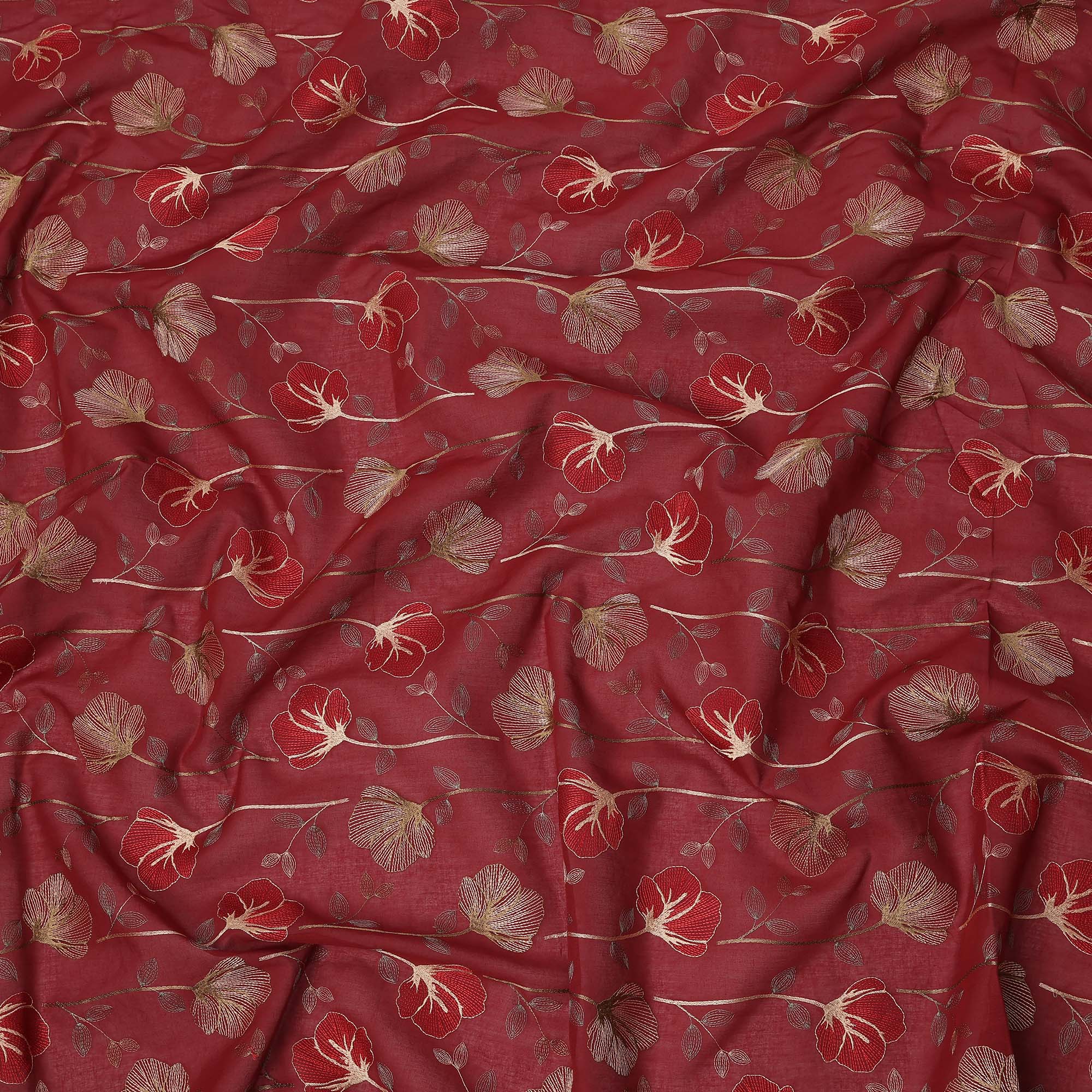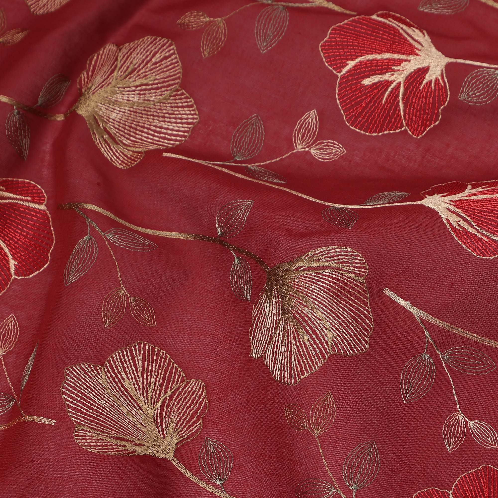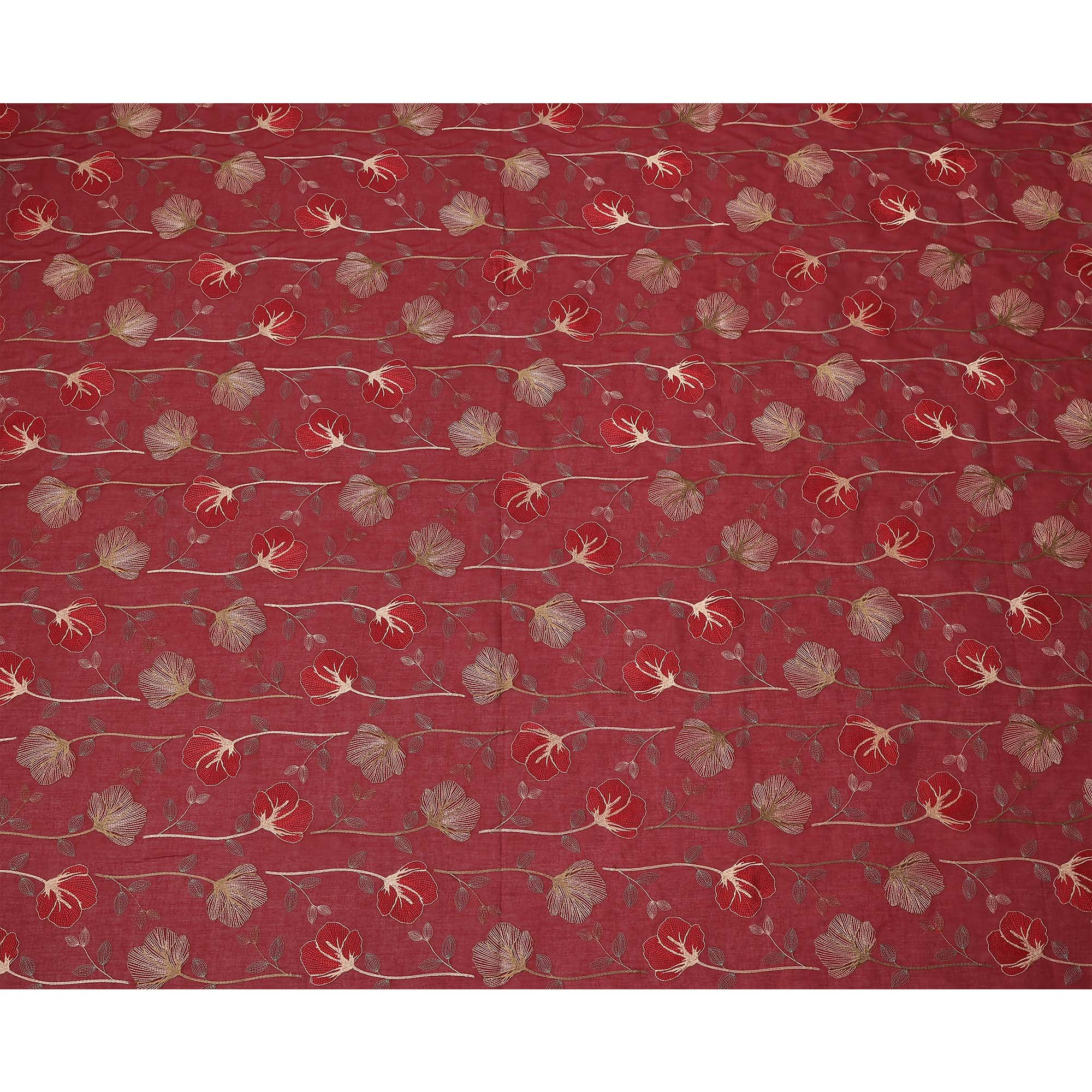قماش فوال قطني مطرز بنقشة زهور بلون العنابي مع خيوط متعددة الألوان، عرض 110 سم، الهند - D25324