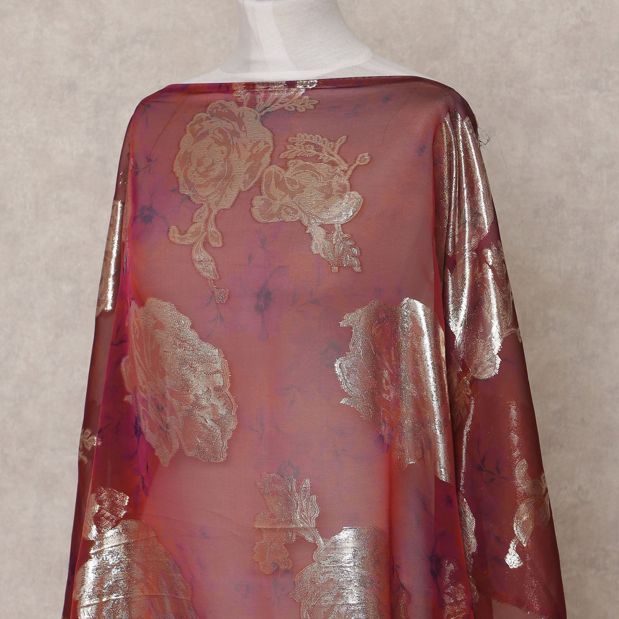 • قماش ديراك شيفون حريري صومالي تقليدي بلون العنابي مع لوركس معدني، 3.5 متر، عرض 140 سم، صنع في كوريا الجنوبية - D25062
