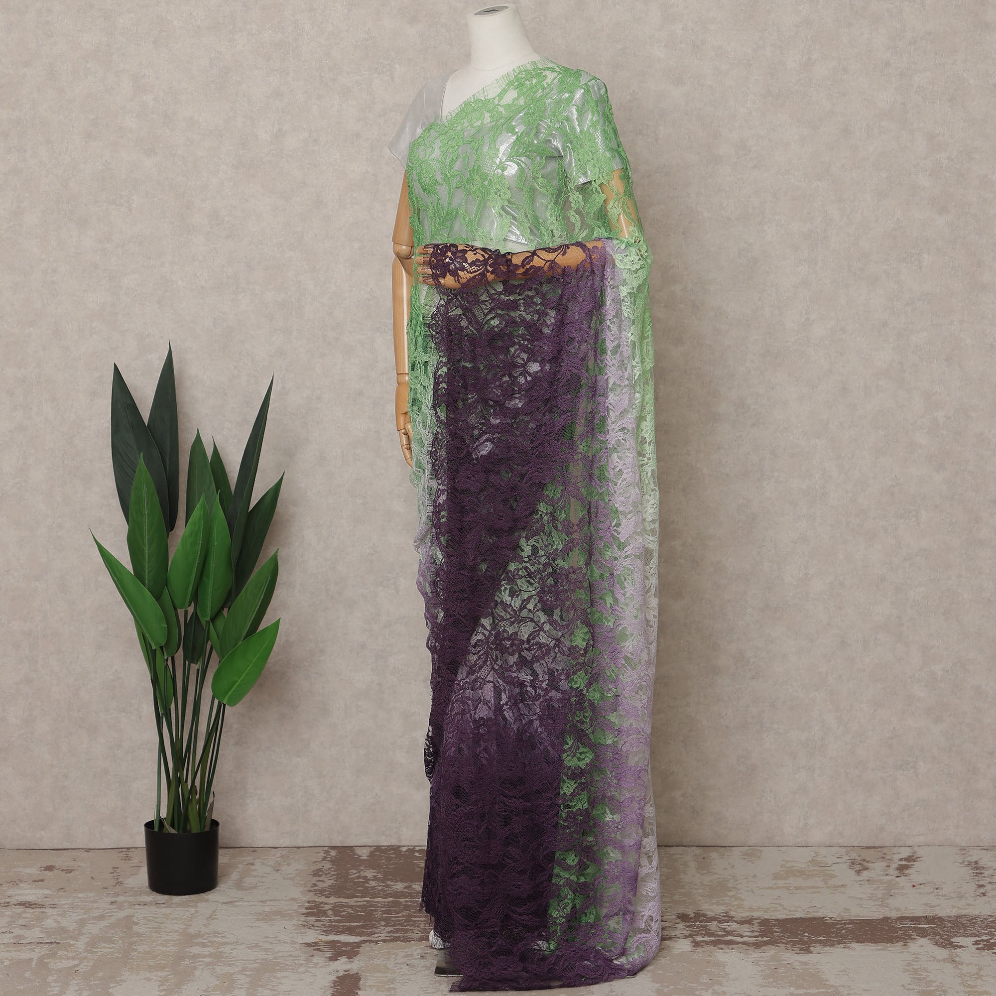 Mint Green and Purple Premium French Ombre Chantilly Lace Saree – 5.5 Meters Length, 110 Cms Width, Crafted in France-D26102
