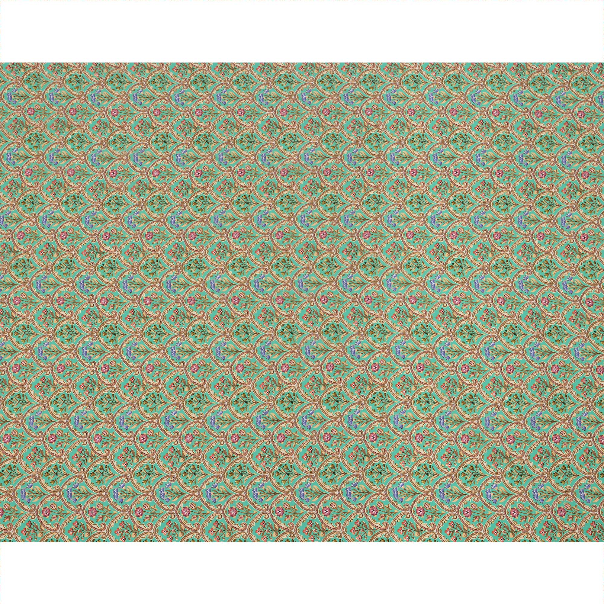 This elegant mint green pure silk crepe fabric features a refined ethnic print showcasing an intricate blend of paisley and floral motifs in shades of red, gold, lilac, and turquoise. The luxurious silk base enhances the vivid detailing, creating a visually rich and culturally inspired textile. Crafted from 100% pure silk, the crepe weave lends the fabric a soft texture, subtle grain, and elegant drape that flow beautifully with movement. The mint green background adds a fresh, sophisticated touch, making it perfect for both traditional and contemporary designs. Ideal for dresses, blouses, scarves, and high-end couture, this fabric combines timeless artistry with modern style sensibility. Woven in India with exceptional craftsmanship, it embodies the finesse of heritage silk weaving while offering a lightweight, breathable, and durable finish. Its lustrous sheen and intricate print make it a versatile choice for fashion pieces that demand elegance and grace. Professional dry cleaning is recommended to preserve its beauty and quality.