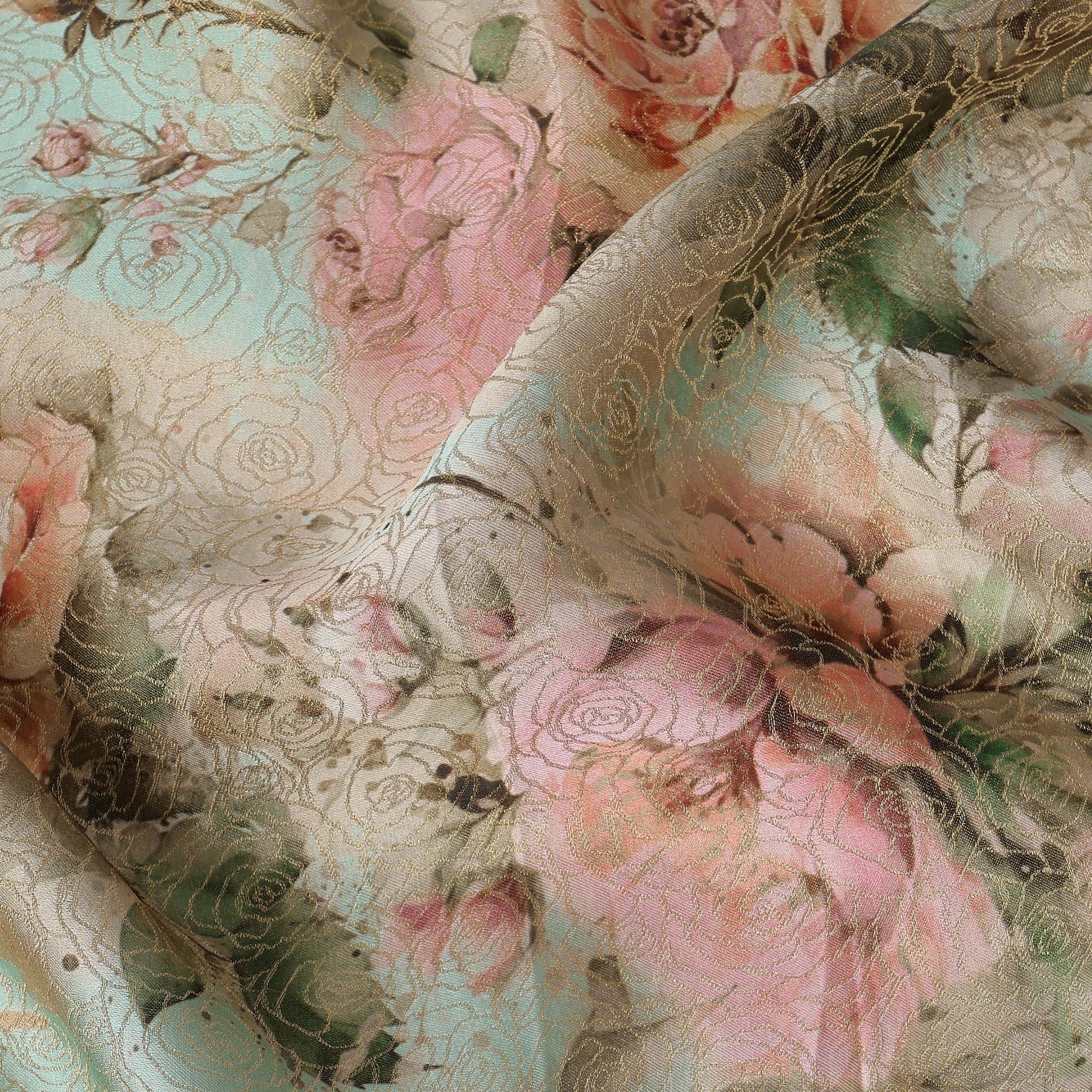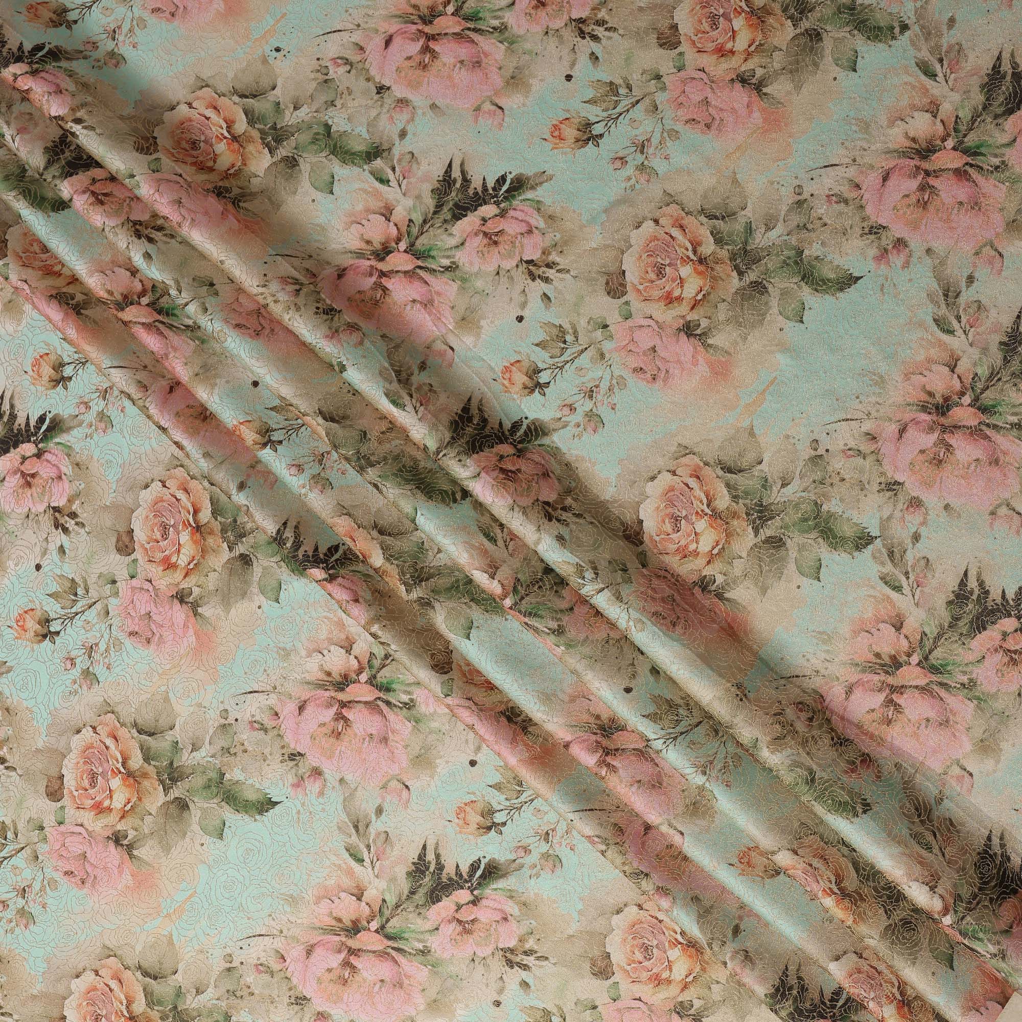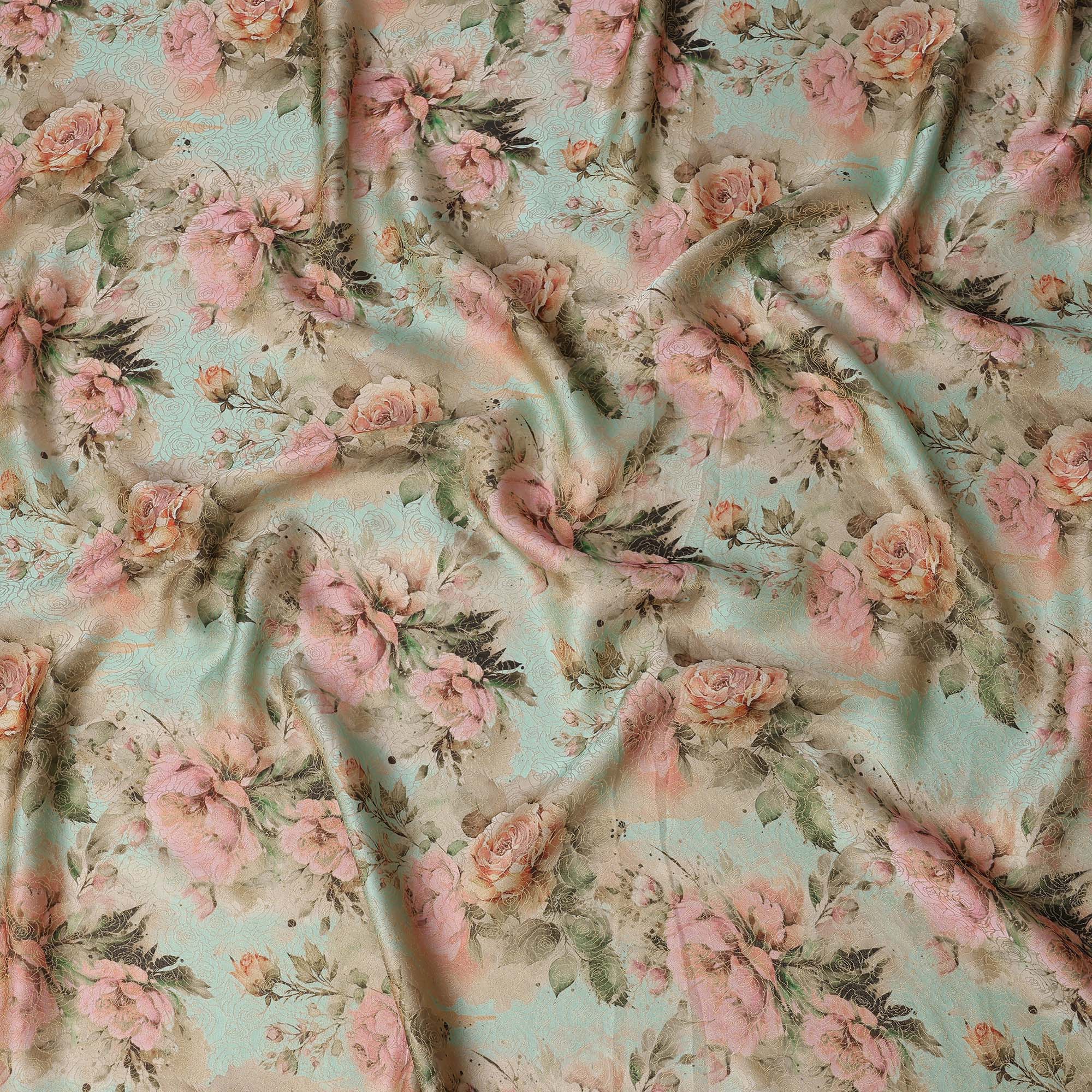 • أُوكَازيُون -10% Mint Green Floral Digital Print Viscose Modal Satin Fabric 110 Cms Width India-D27723