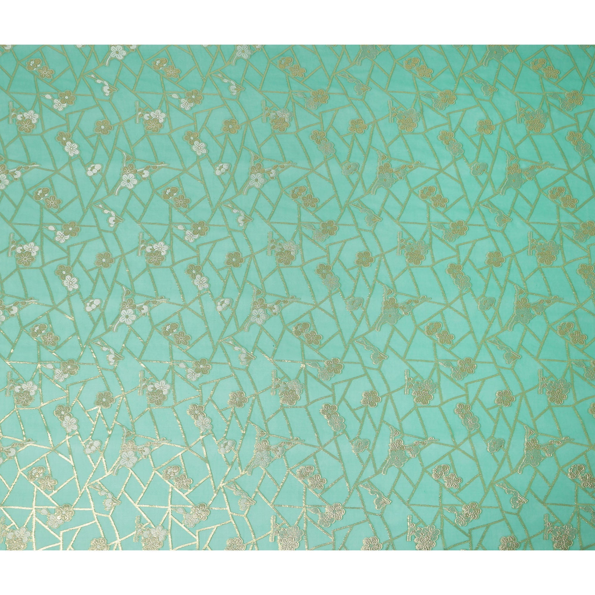 • أُوكَازيُون -10% Mint Green Gold Floral Geometric Metallic Lurex Silk Chiffon Fabric 110 Cms Wide, Made in South Korea-D27542