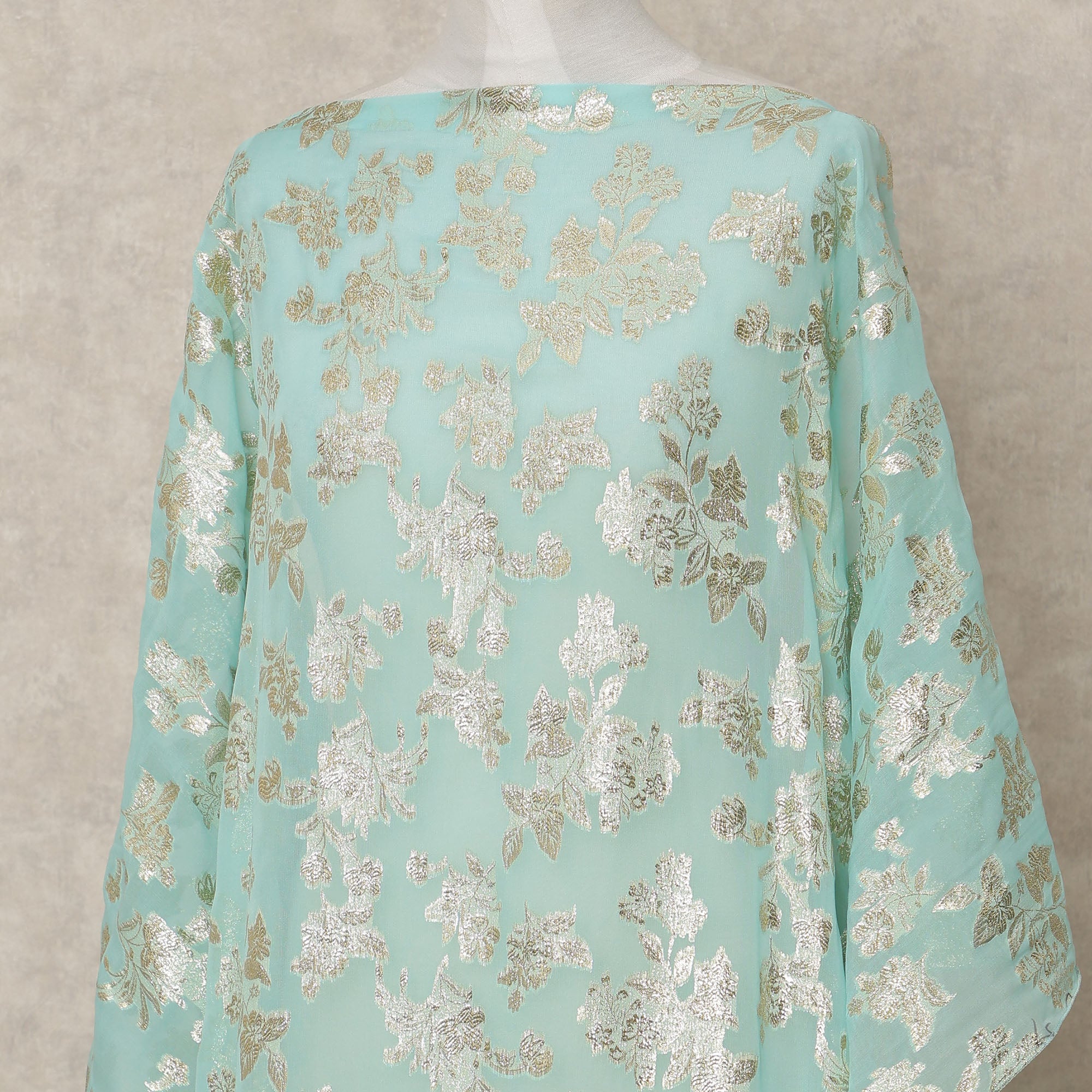 Beautiful mint green hue with shimmering metallic gold floral weave