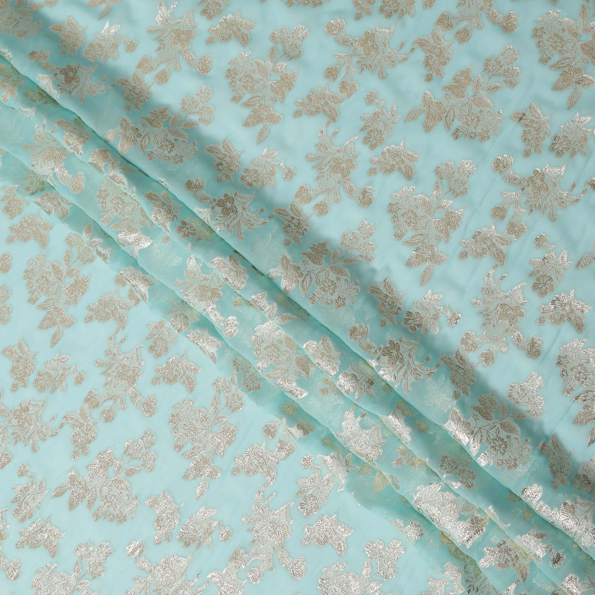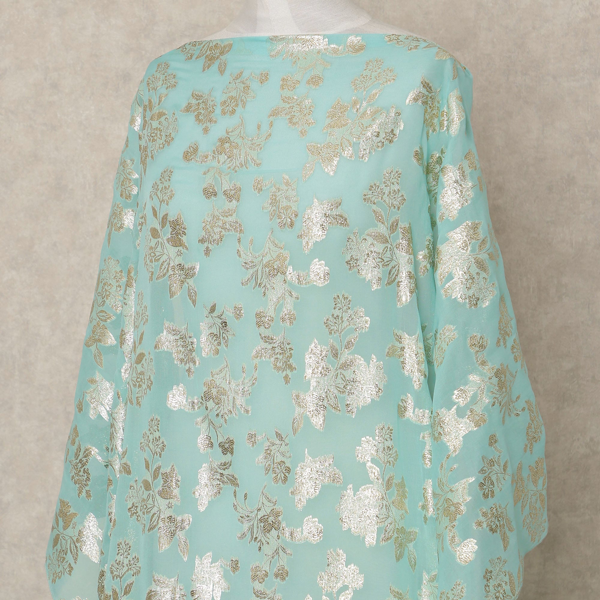 Mint Green Traditional Somali Silk Chiffon Dirac Fabric with Metallic Lurex, 3.5 Mtrs Piece, Width 140 Cms, Made in South Korea-D26499