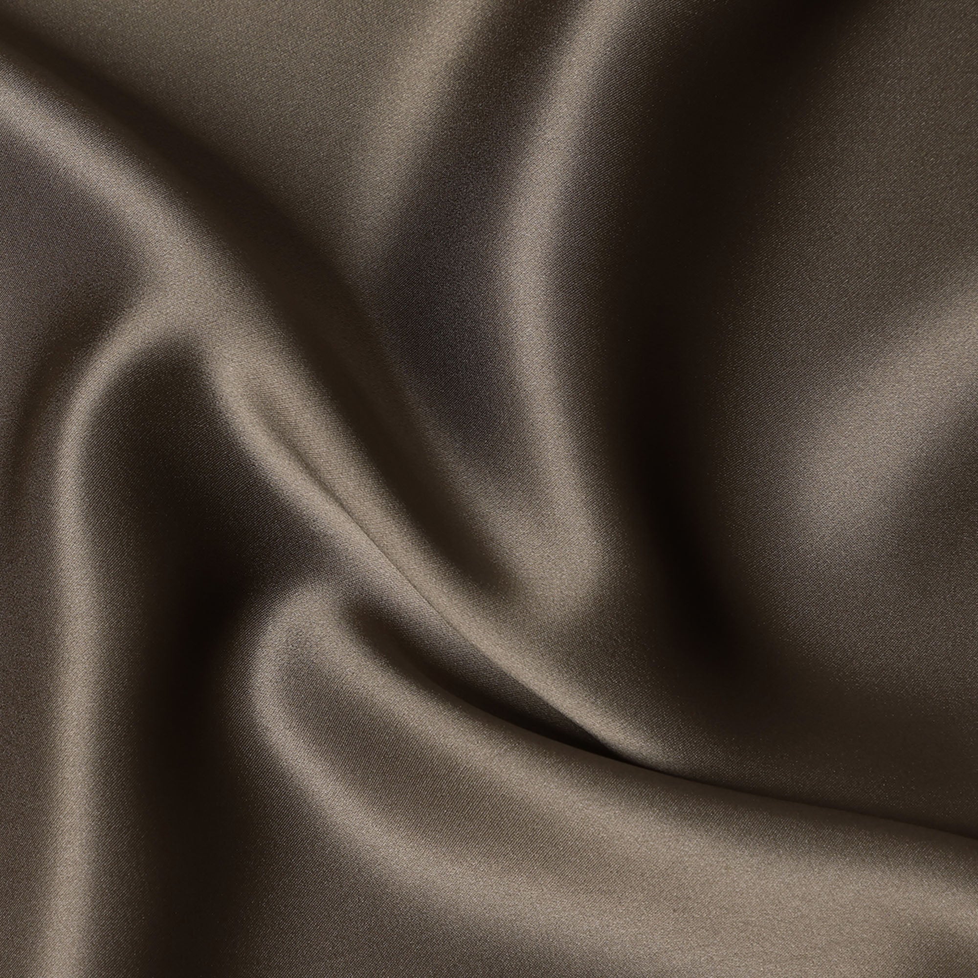 Mocha brown pure silk satin fabric with an elegant, glossy finish and soft texture