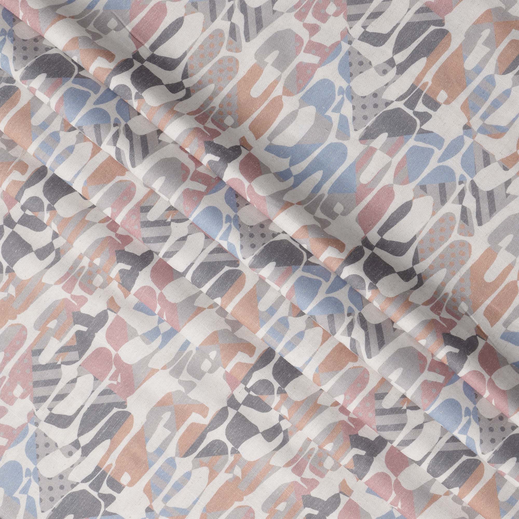 انغمس في تصميماتك بأناقة هذا القماش الكتاني الممزوج بطبعة تجريدية متعددة الألوان، والمصنوع بتوازن مثالي بين الأسلوب الفني والراحة اليومية. يتميز بتصميم عصري مستوحى من التمويه بدرجات اللون الخوخي الناعم والأزرق الباهت والأرجواني الفاتح والرمادي الفحمي على قاعدة بيضاء كريمية، ويجسد هذا القماش جوهر فن النسيج الحديث. يوفر عرضه البالغ 140 سم مساحة واسعة للخياطة متعددة الاستخدامات، سواء كنت تصنع ملابس عصرية أو ديكورًا منزليًا أنيقًا. منسوج من الكتان الممزوج عالي الجودة، يوفر القماش تهوية جيدة وملمسًا ناعمًا وملمسًا رقيقًا، مما يجعله مثاليًا لكل من الهيكل والستائر. مصمم ومصنوع في الهند، يجمع بين الحرفية التراثية والجماليات المعاصرة. سهل الصيانة وذو مظهر جذاب، إنه مثالي للقطع المميزة التي لا تتنازل عن الراحة. تسوق عبر الإنترنت الآن واحصل على قماش يتحدث عن الأناقة والتنوع.