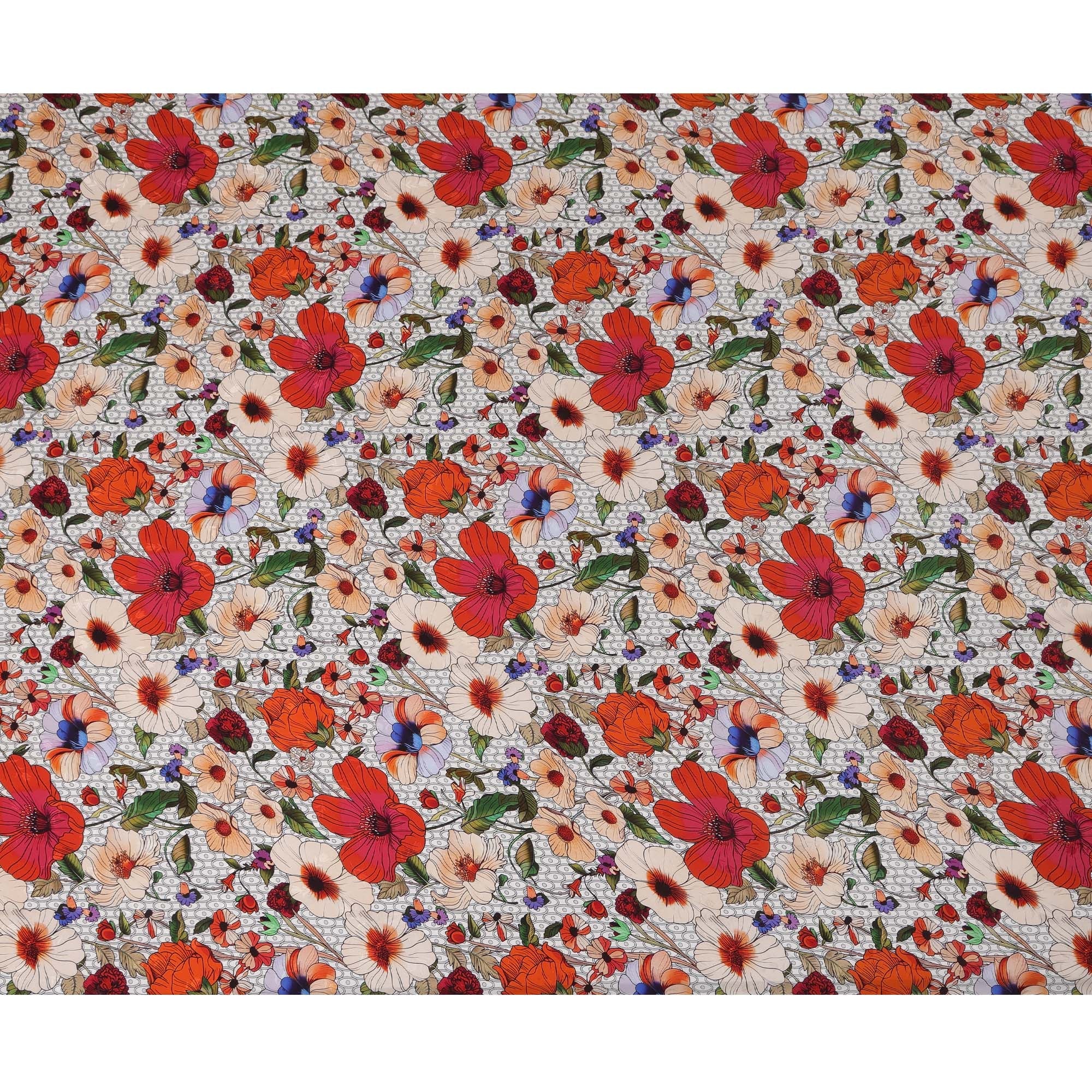 طباعة زهور متعددة الألوان بألوان زاهية من الأحمر والعاجي والخوخي واللافندر والأخضر