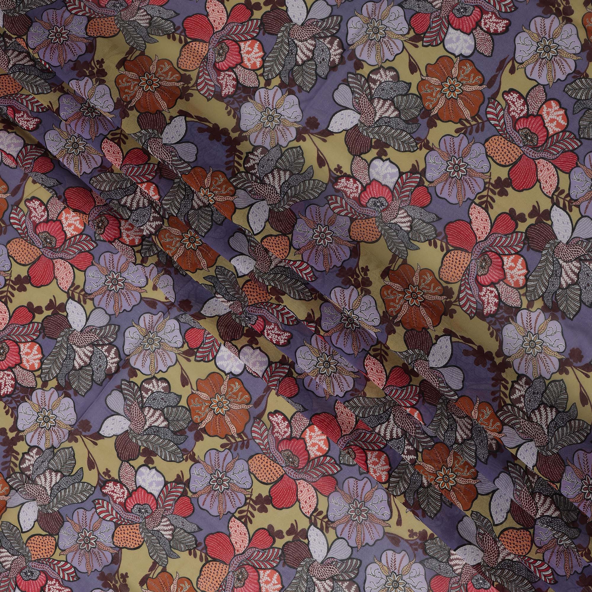Multicolor Floral Printed Somali Cotton Voile Dirac Fabric, 3.5 Mtrs Piece, 140 cm Width, Made in India-D26663
