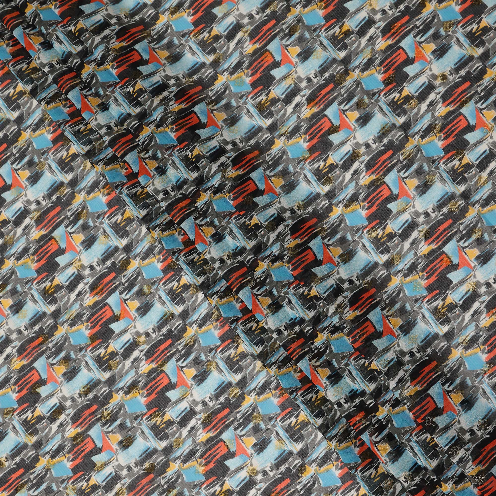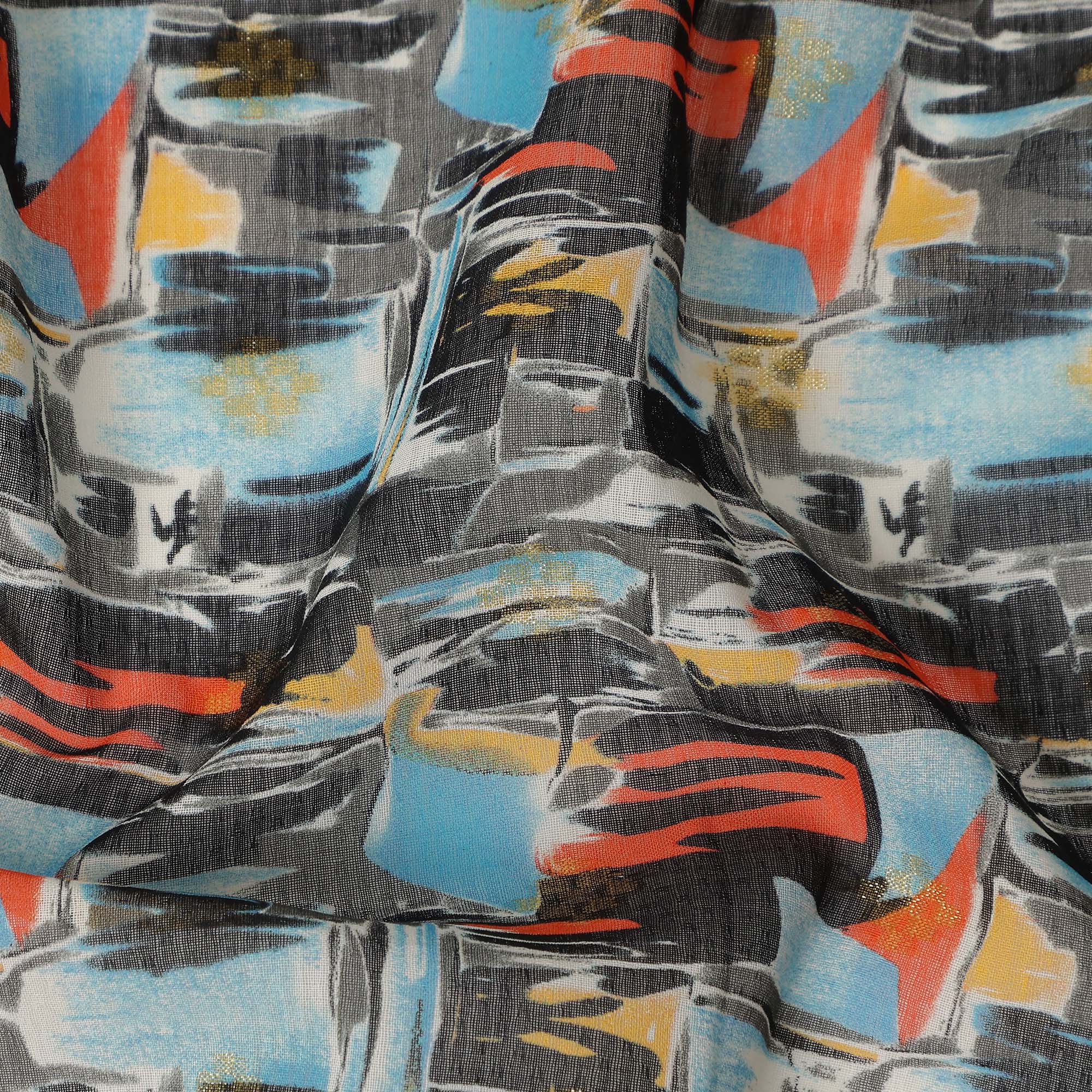 Multicolor Grey Traditional Sudanese Thobe Fabric Pure Cotton Voile 4.5 Meters Piece Width 140 Cms Soft Breathable Ethnic Wear Material with Artistic Abstract Prints Made in India-D27594