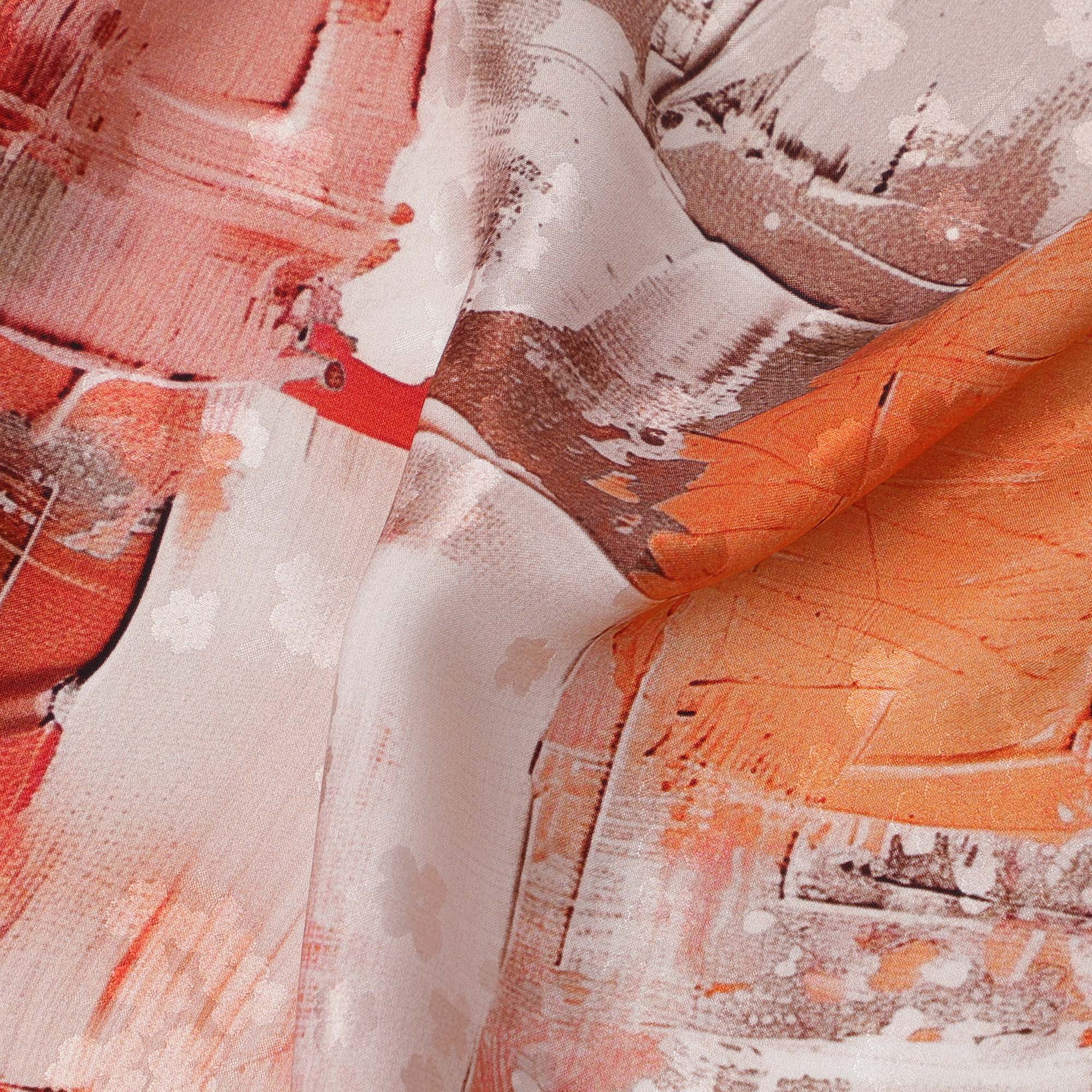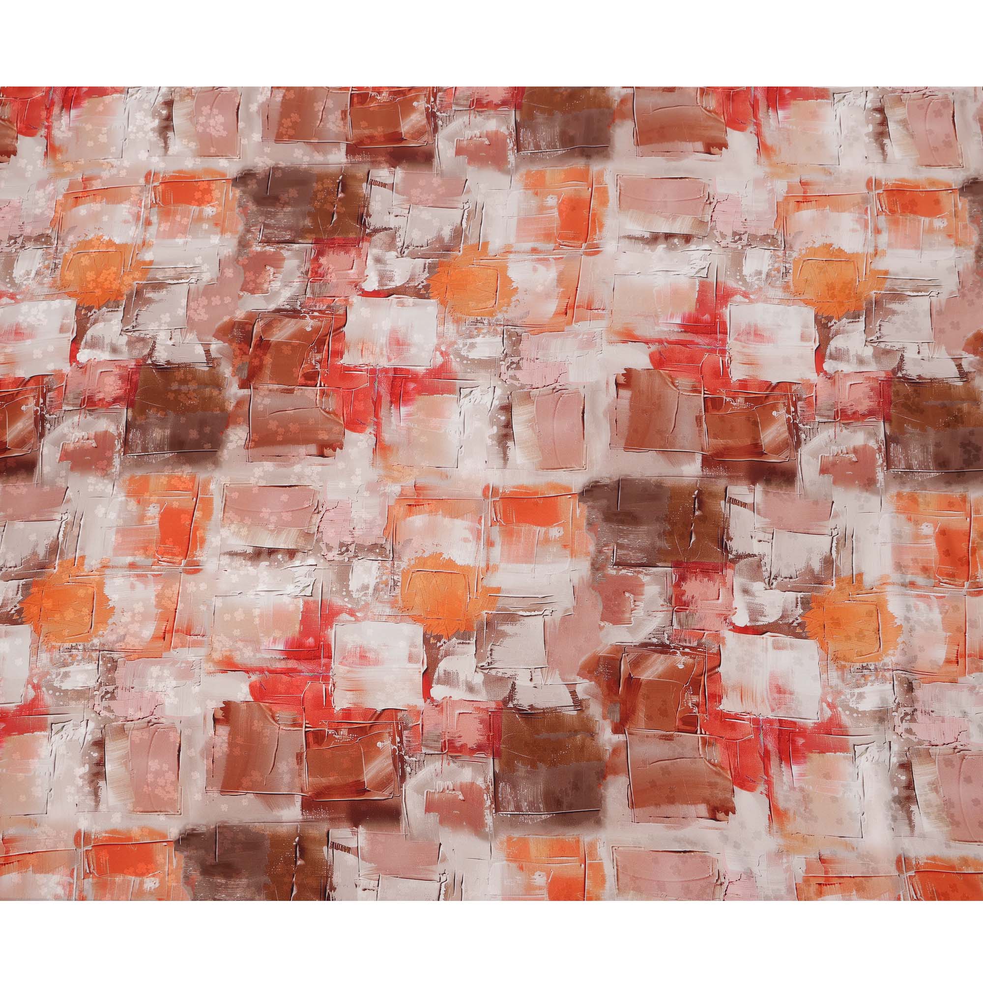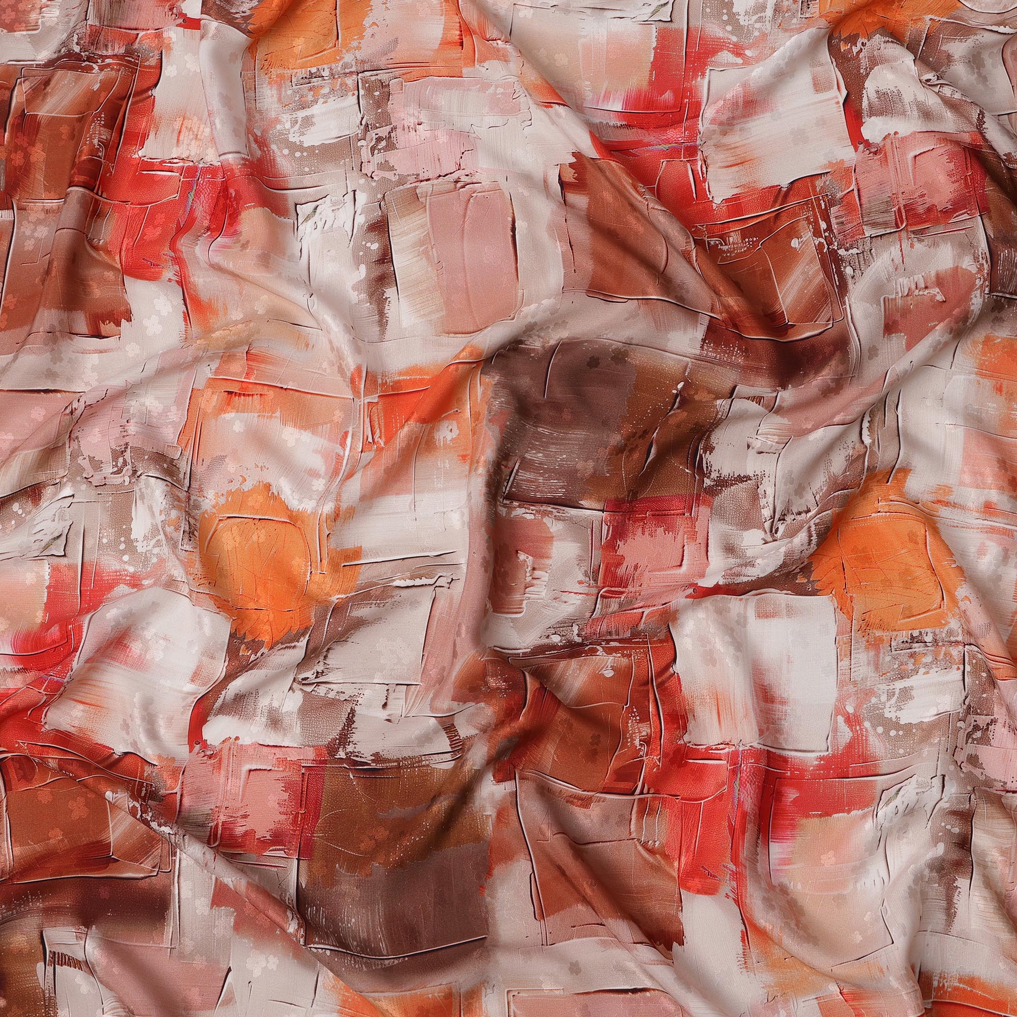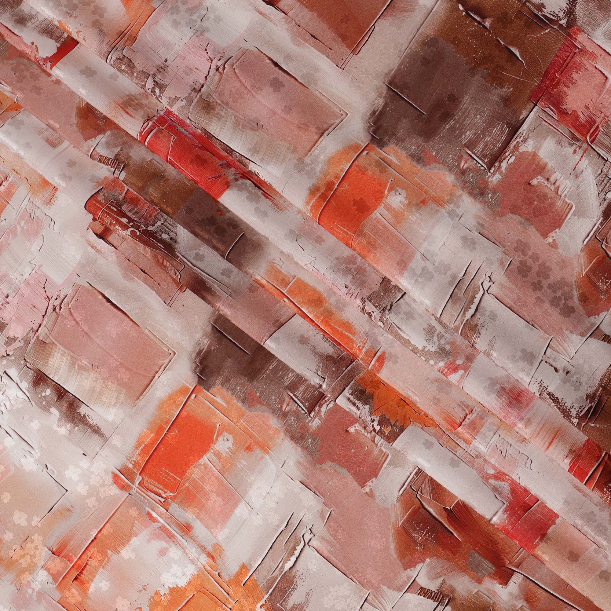 قماش ساتان حريري إيطالي فاخر بطبعة تجريدية متعددة الألوان، من الصدأ والبرتقالي والبيج، عرض 140 سم، صنع في إيطاليا - D22978