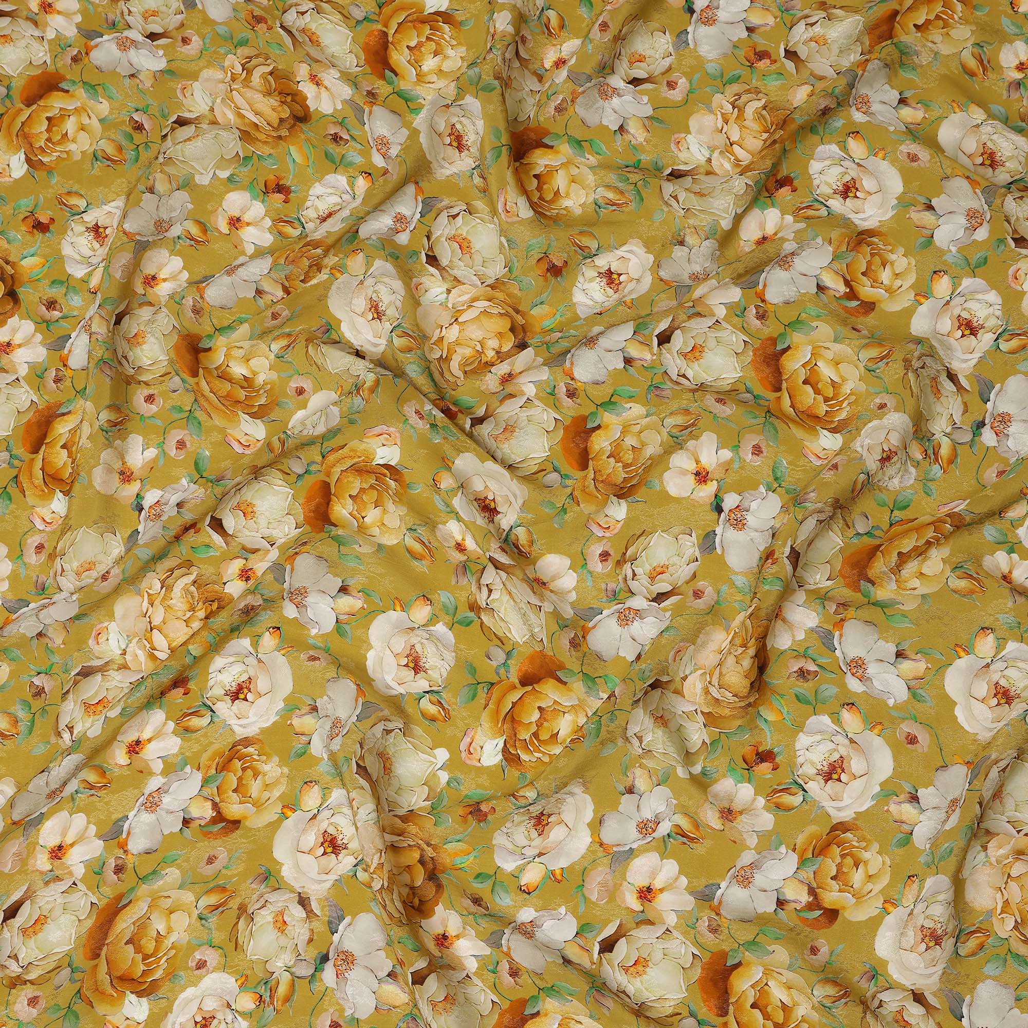 Mustard Yellow Floral Printed Viscose Fabric Soft Lightweight Flowing Dress Material for Apparel Sewing Craft Fashion Use 110 Cms Width India Origin-D27315