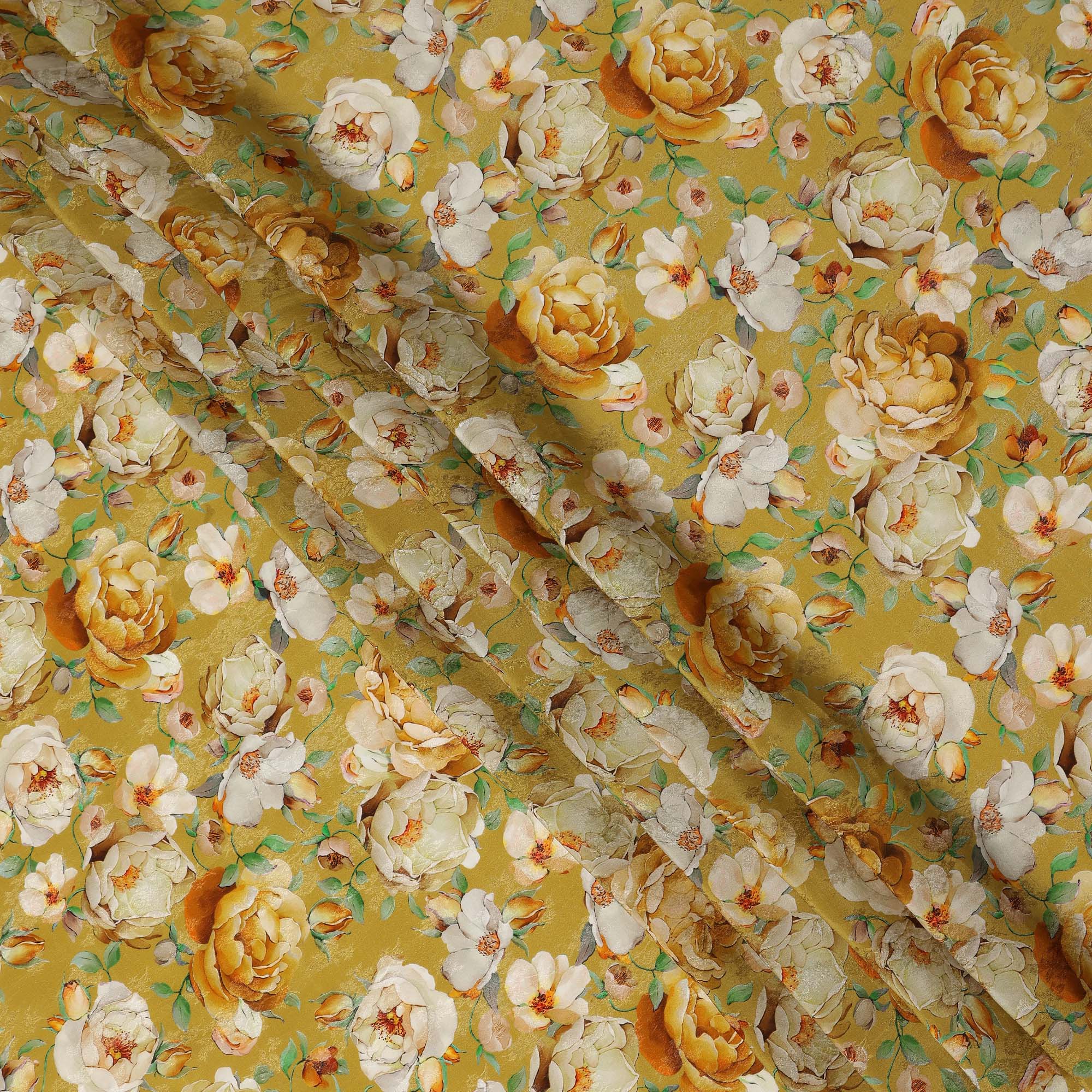• Mustard Yellow Floral Printed Viscose Fabric Soft Lightweight Flowing Dress Material for Apparel Sewing Craft Fashion Use 110 Cms Width India Origin-D27315