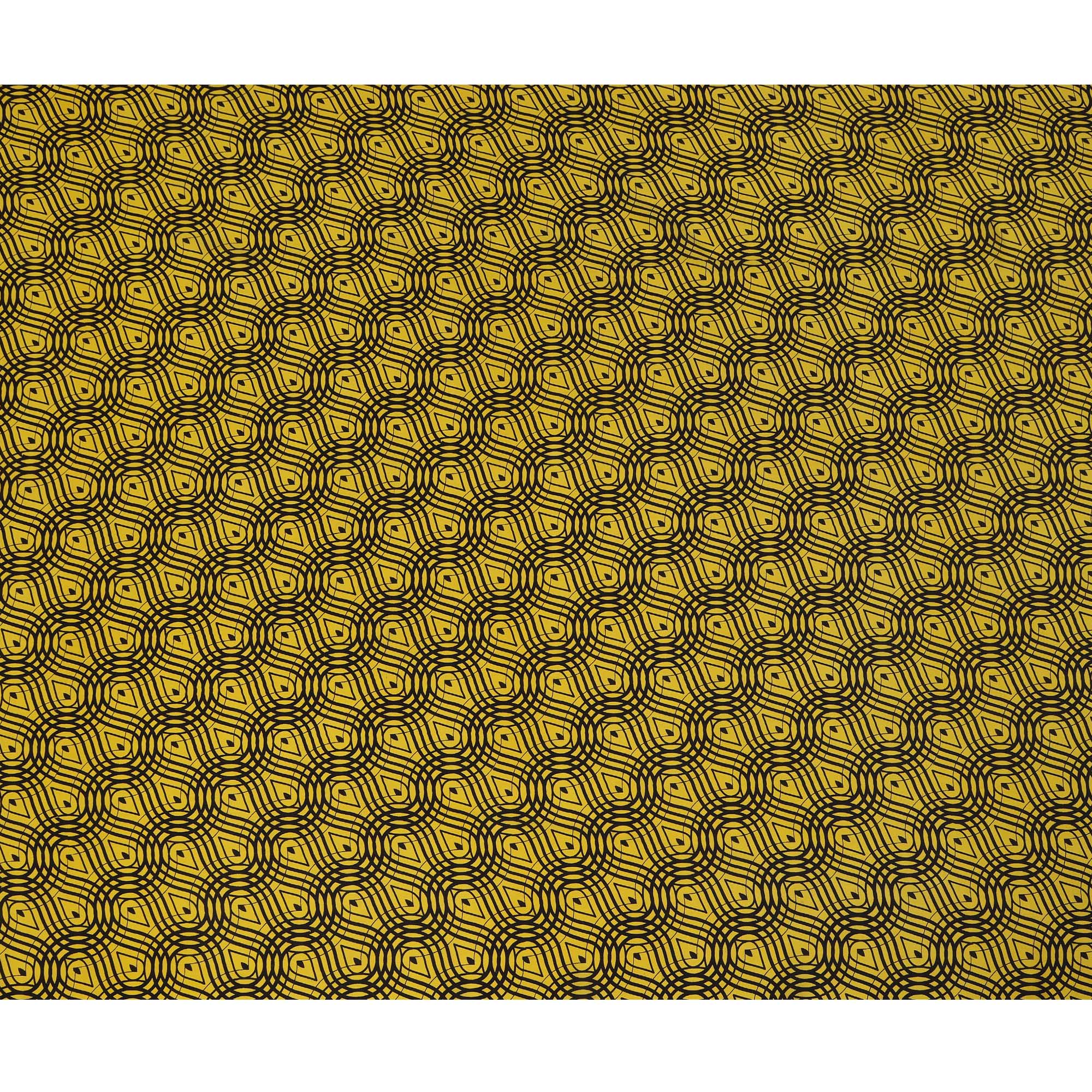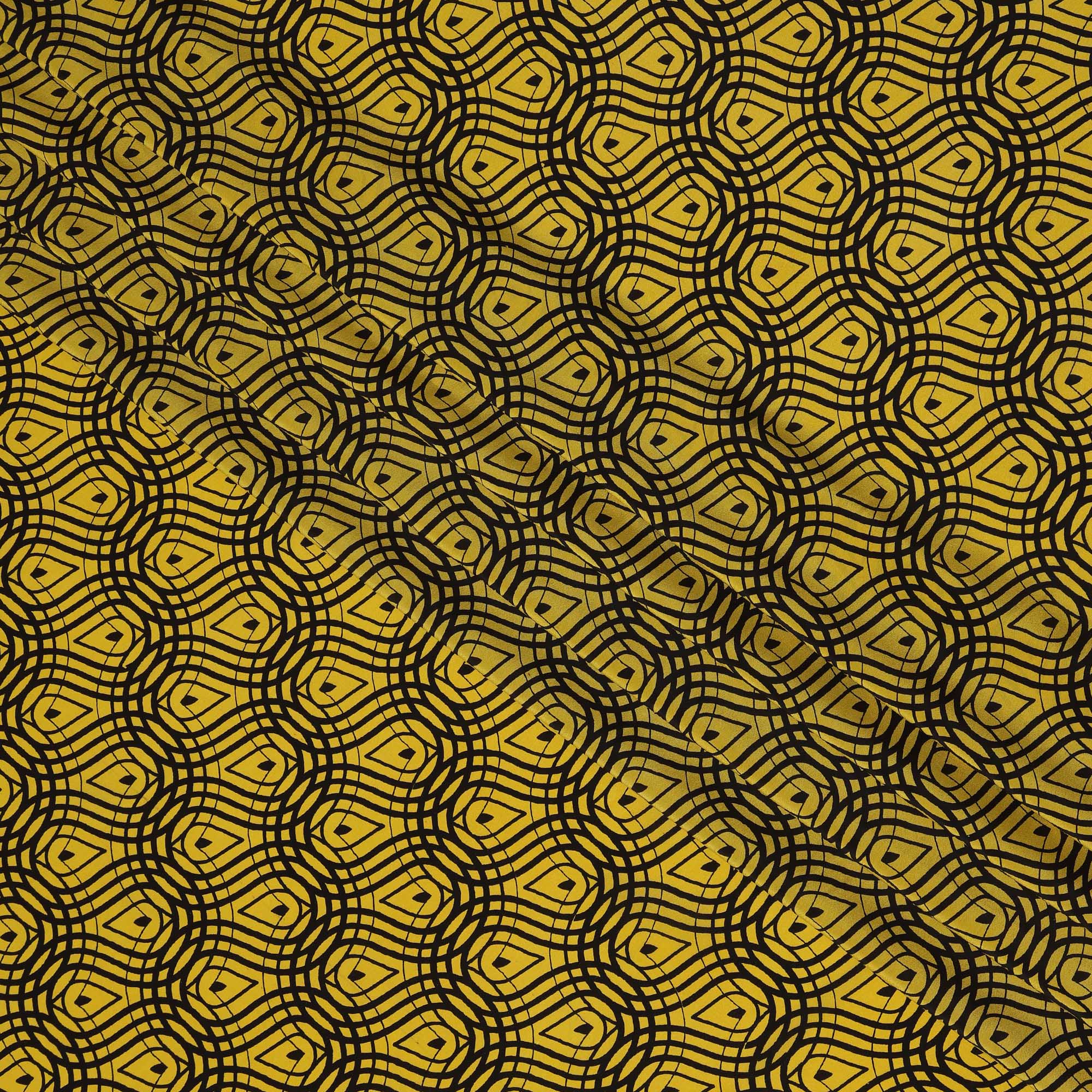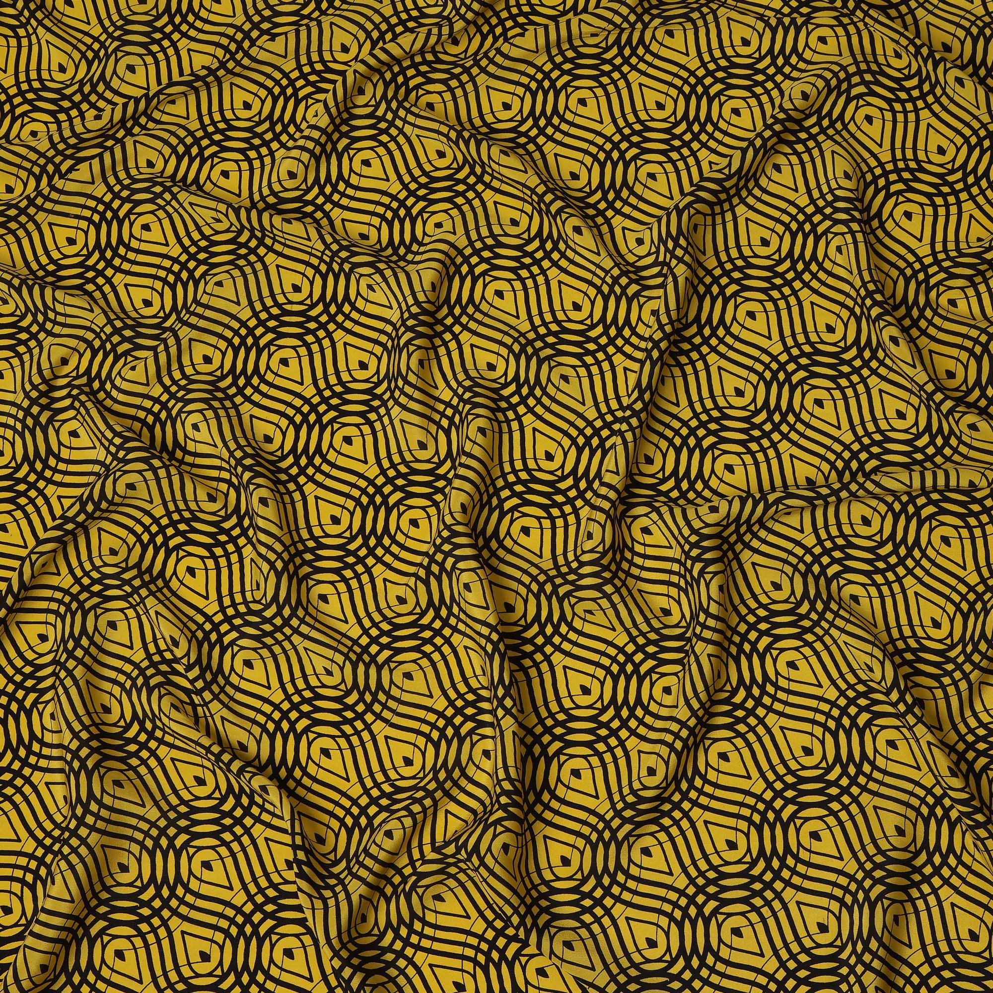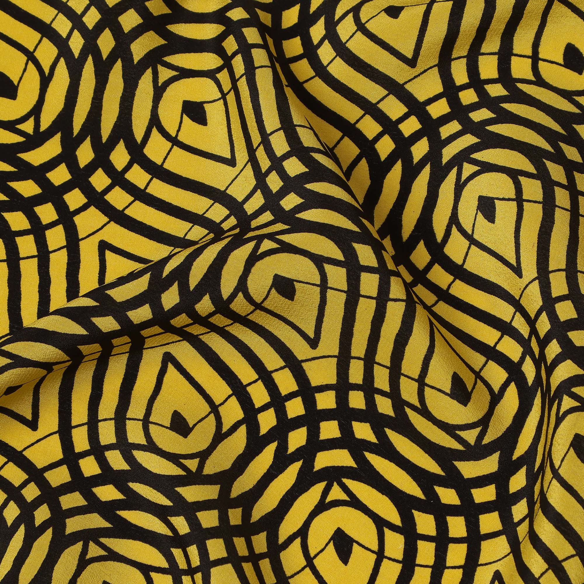 قماش كريب حريري خالص بطبعة متاهة هندسية باللون الأصفر الخردلي، عرض 110 سم، صنع في الهند - D23173
