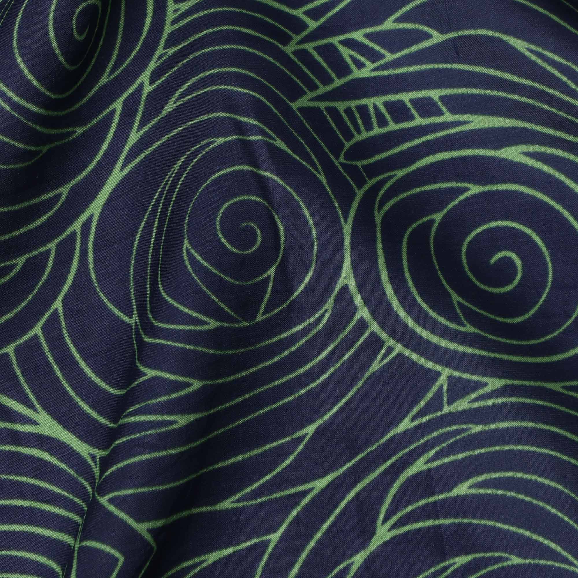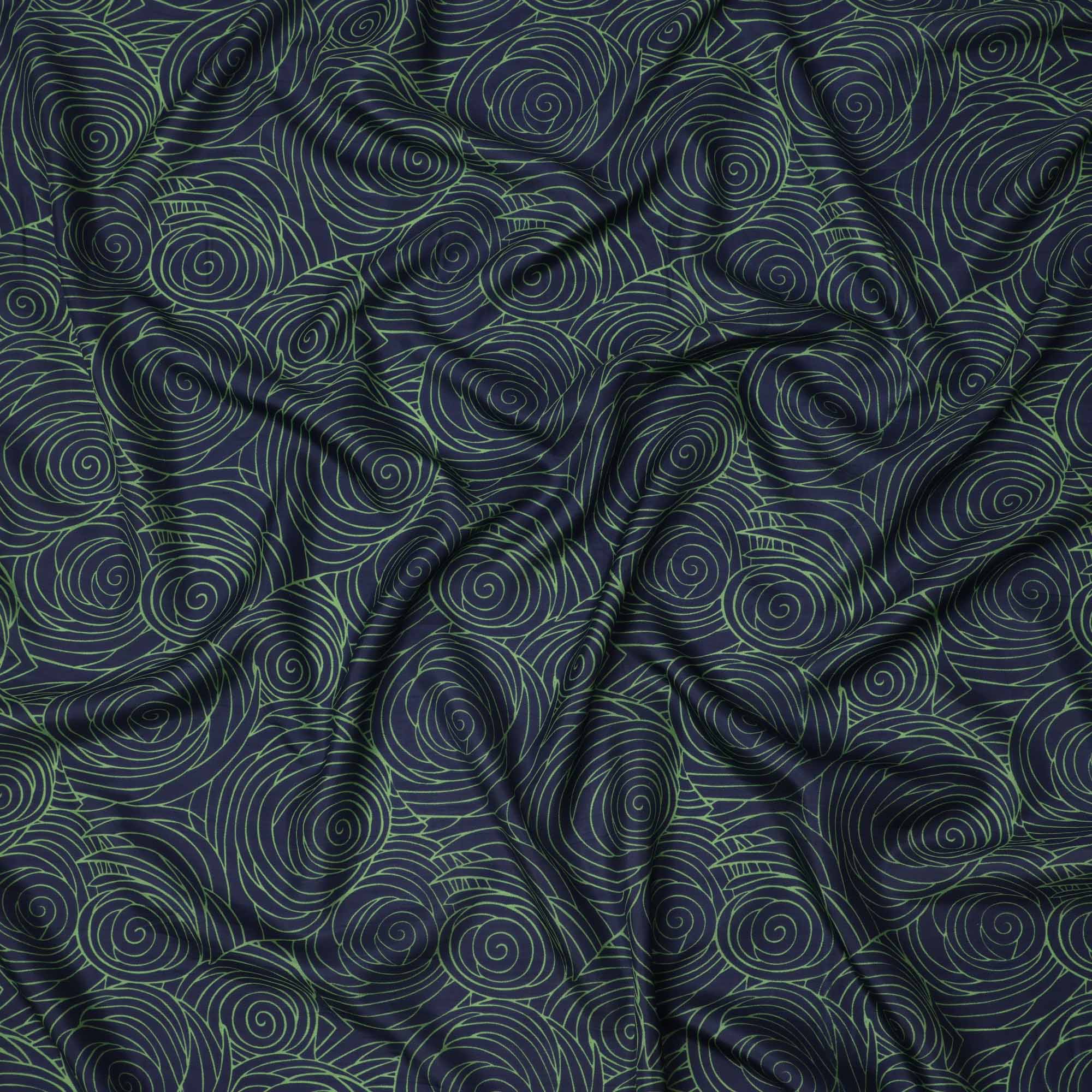 قماش كريب فيسكوز بطباعة خطوط حلزونية تجريدية باللونين الأزرق الداكن والأخضر، عرض 110 سم، صنع في الهند - D23595