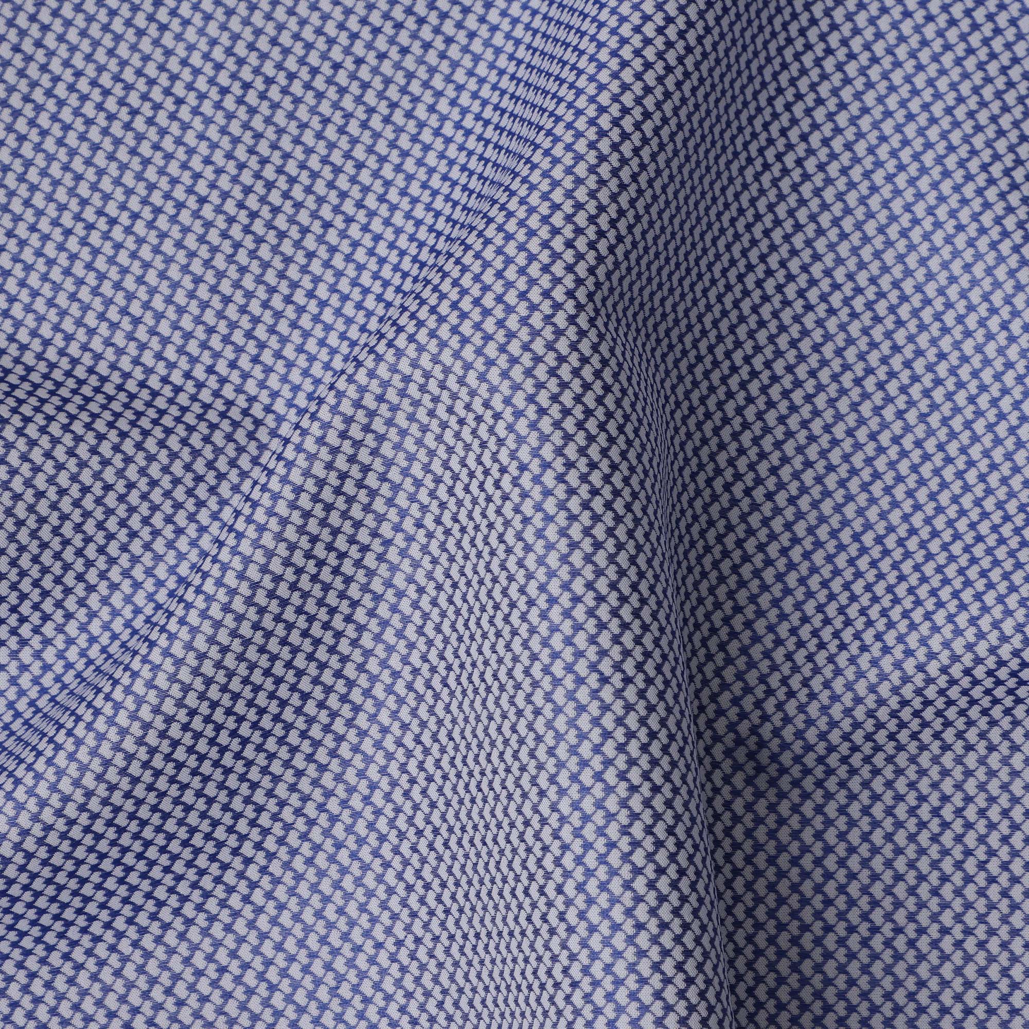 قماش قمصان قطني هندسي دقيق باللونين الأزرق الداكن والأبيض، أنيق ومميز بصريًا، يضفي لمسة أنيقة وعصرية على القمصان الكلاسيكية، مصنوع... اقرأ أكثر اقرأ أكثر