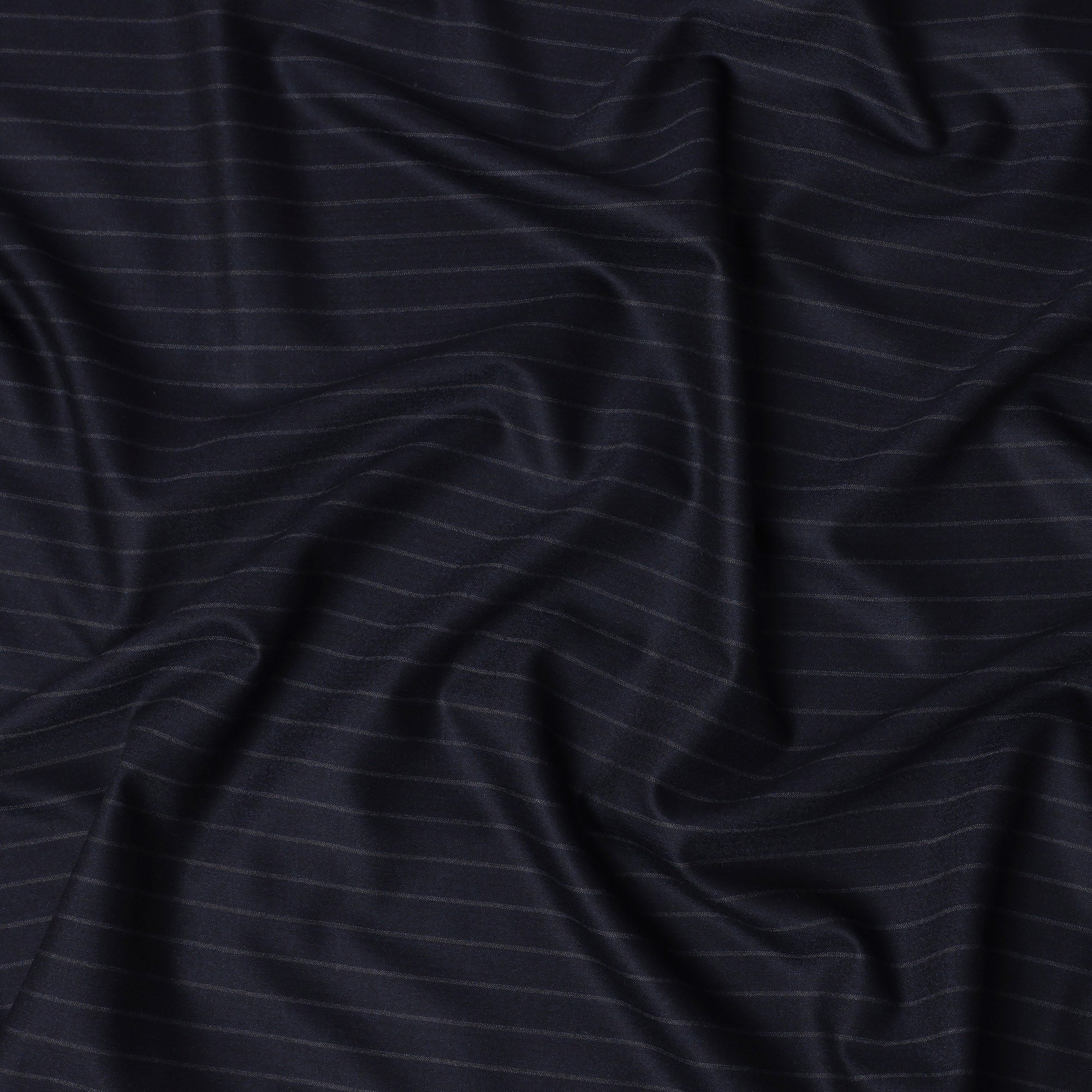 Navy Blue Pinstripe Super 140’s wool fabric offering timeless professional elegance