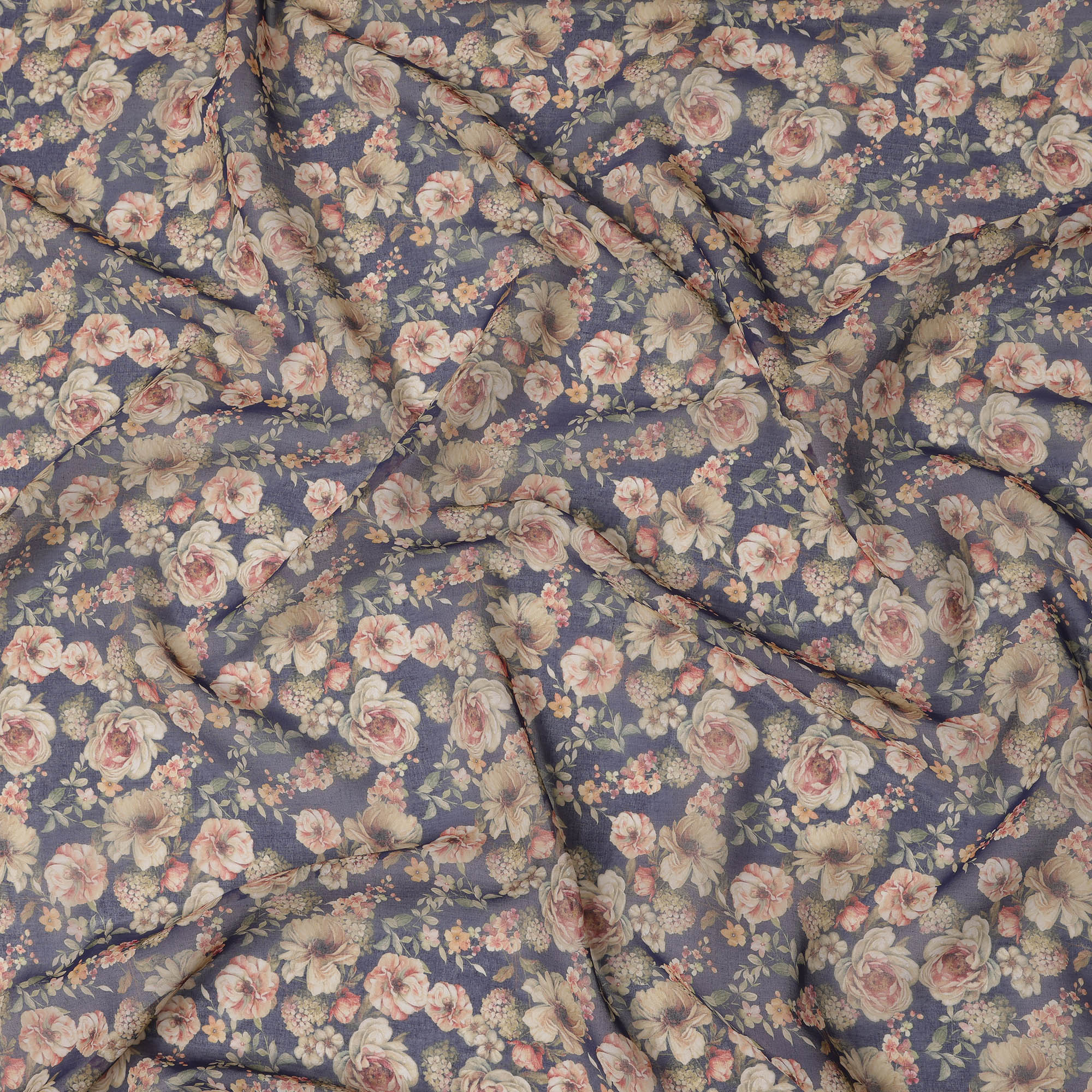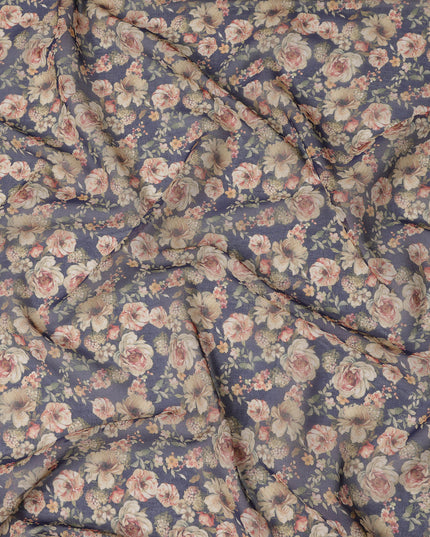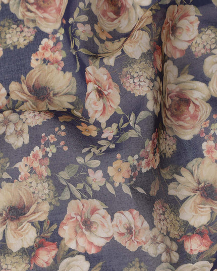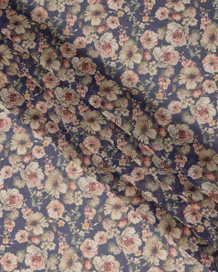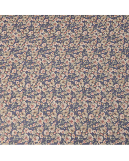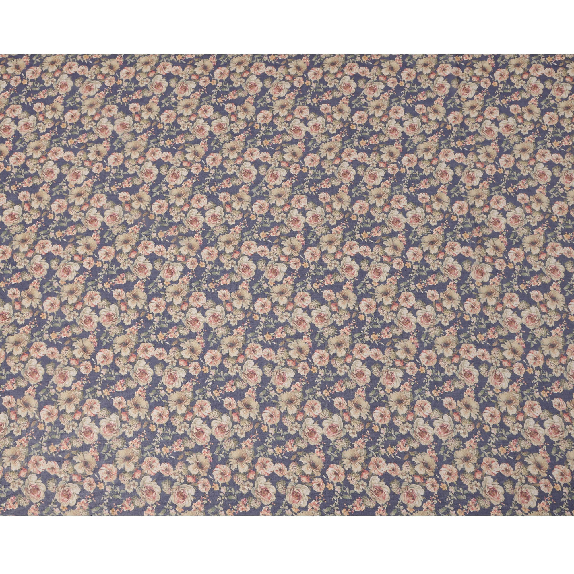قماش قطني فوال بطبعة باقة زهور عتيقة باللون الأزرق الداكن، عرض 140 سم، الهند - D23049